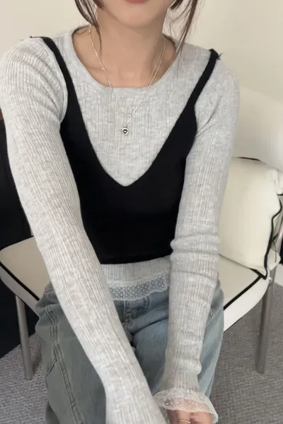 【NG小瑕疵優惠】初春元氣疊穿 上衣+背心SET