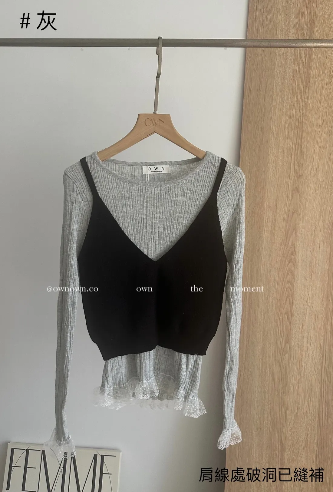 NG處說明:肩線處破洞已縫補,正常穿著不影響整體視覺(實拍如圖)