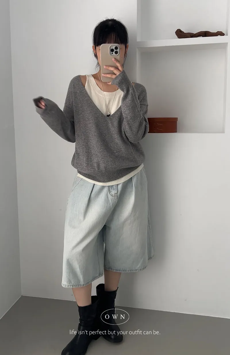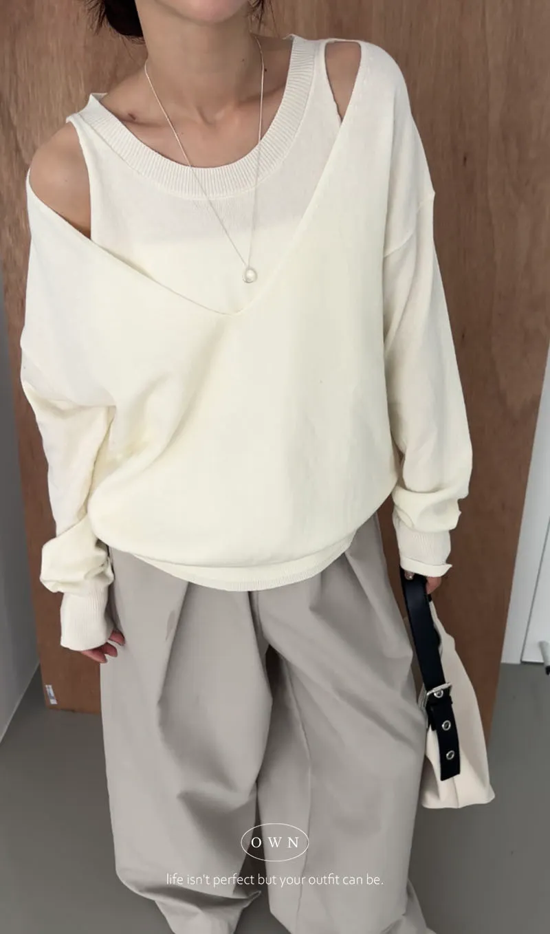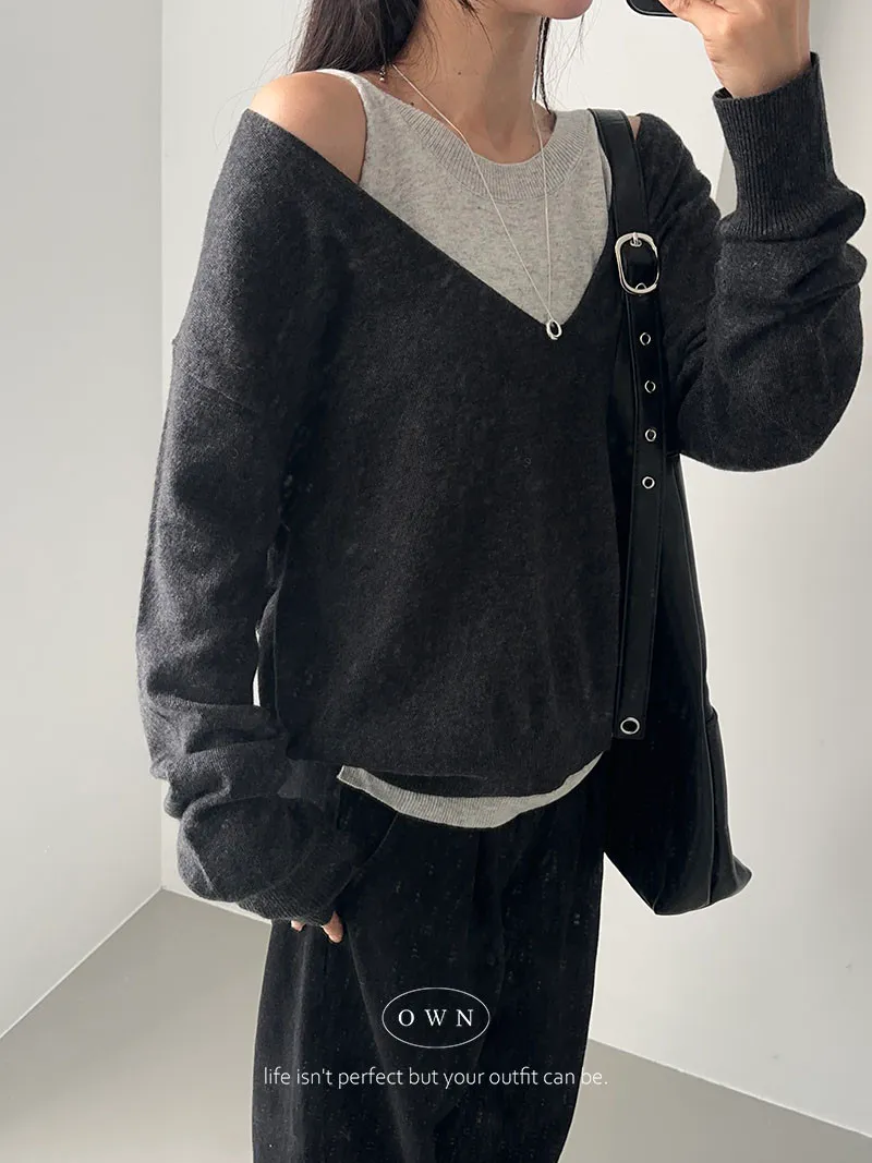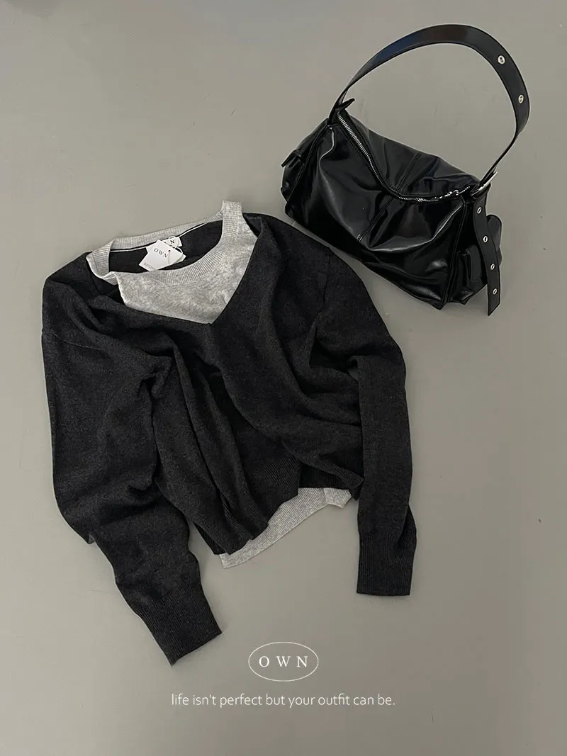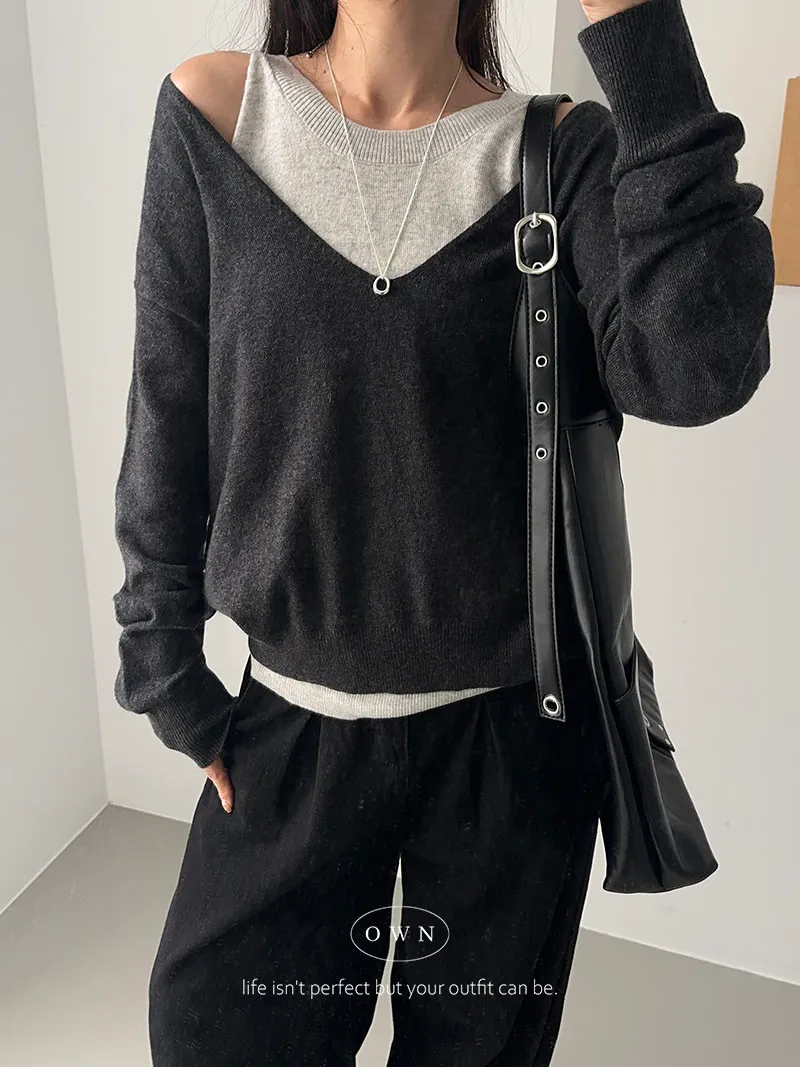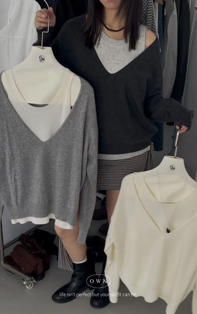極簡舒服 假兩件挖肩針織上衣 3colors