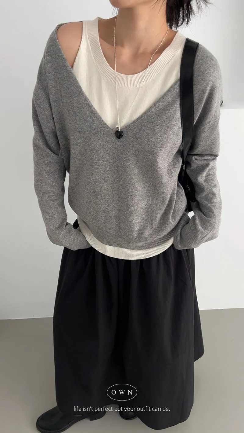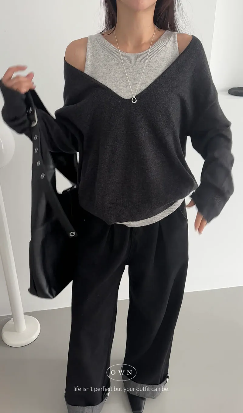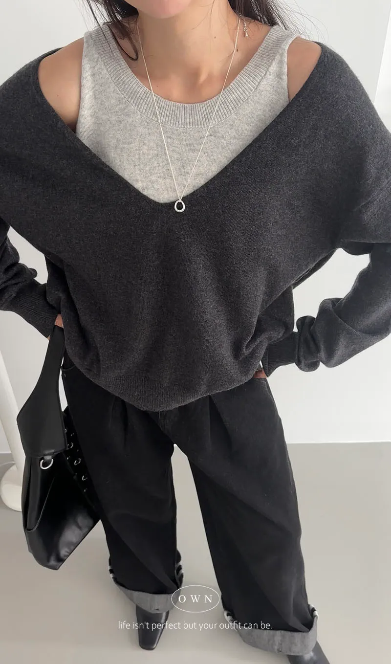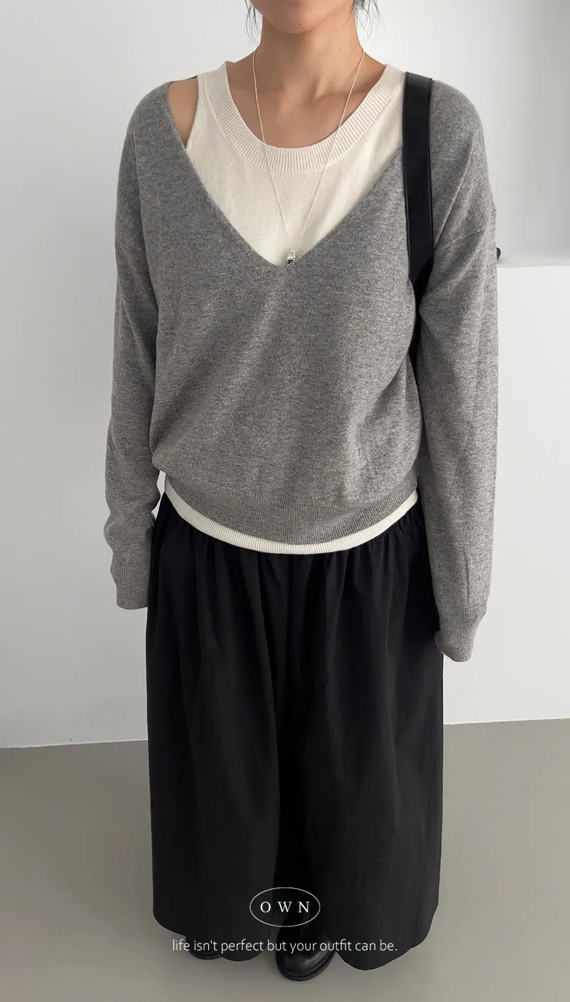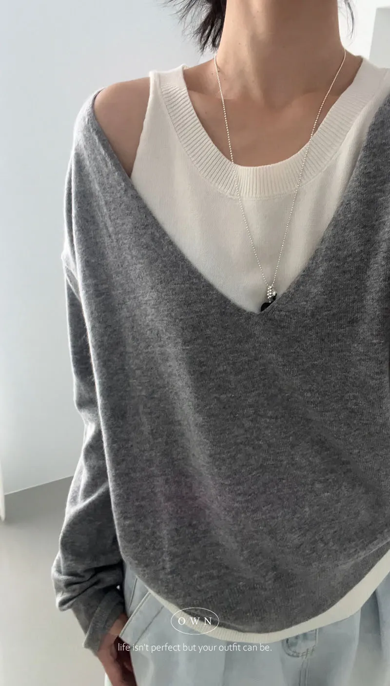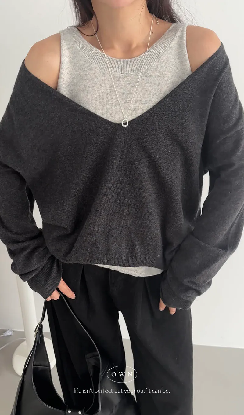 極簡舒服 假兩件挖肩針織上衣 3colors