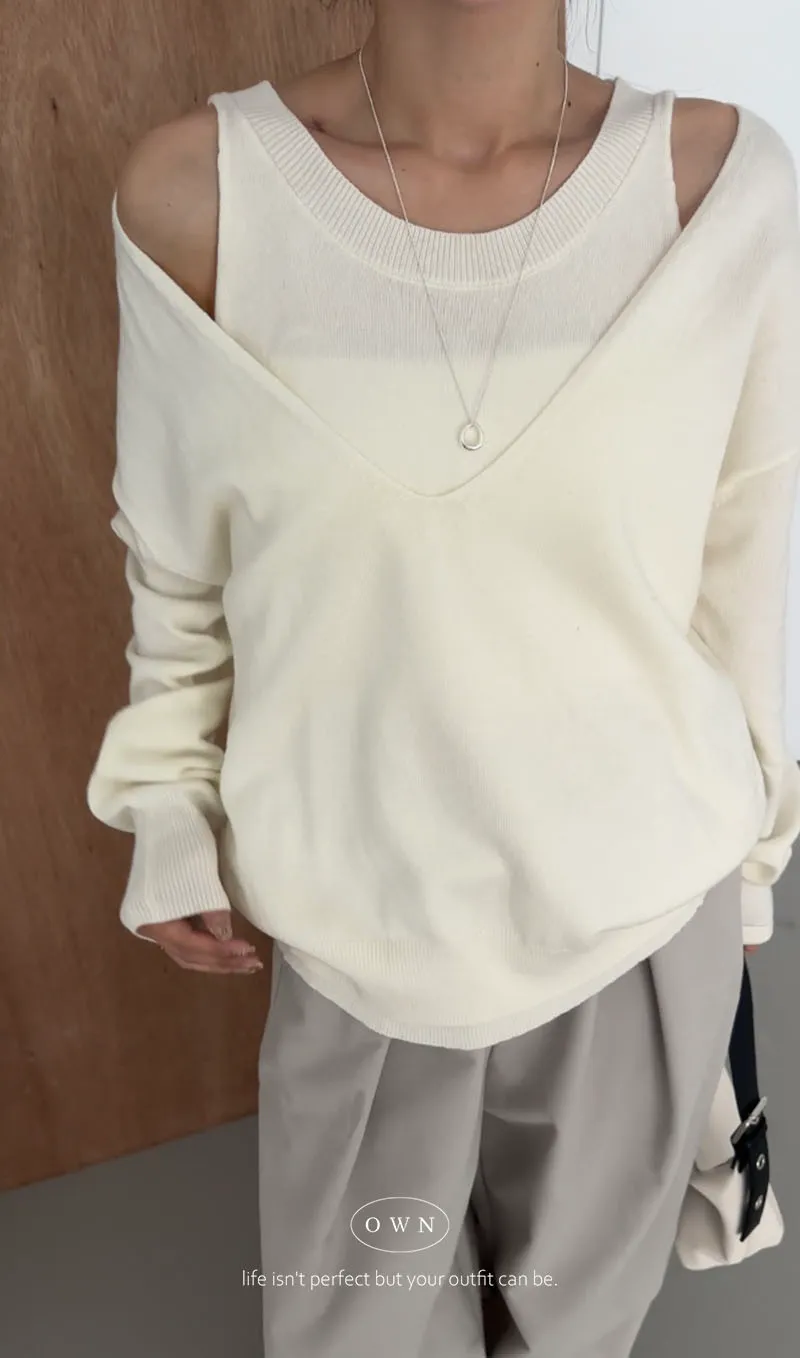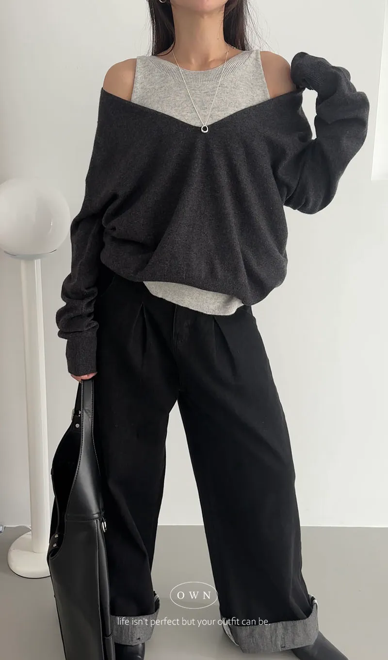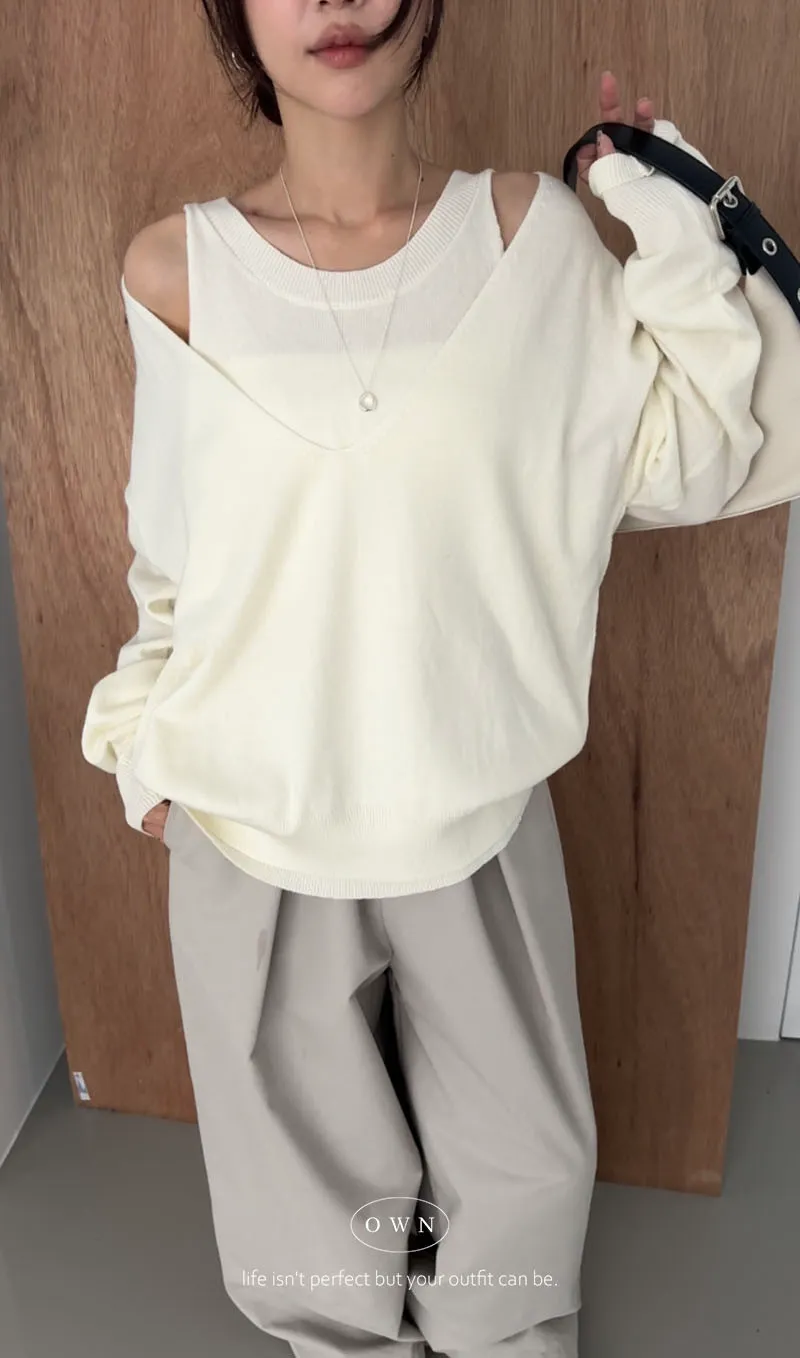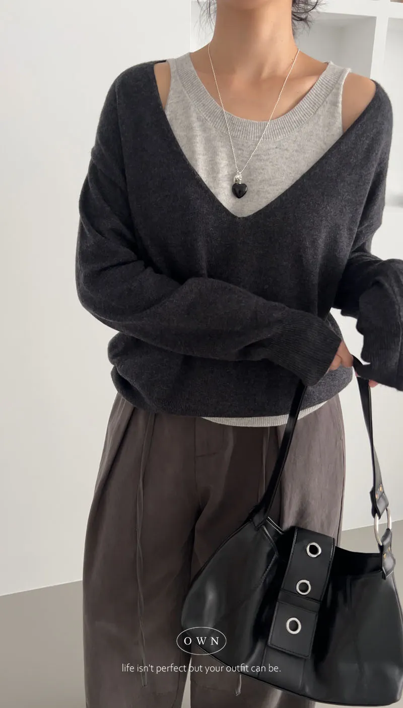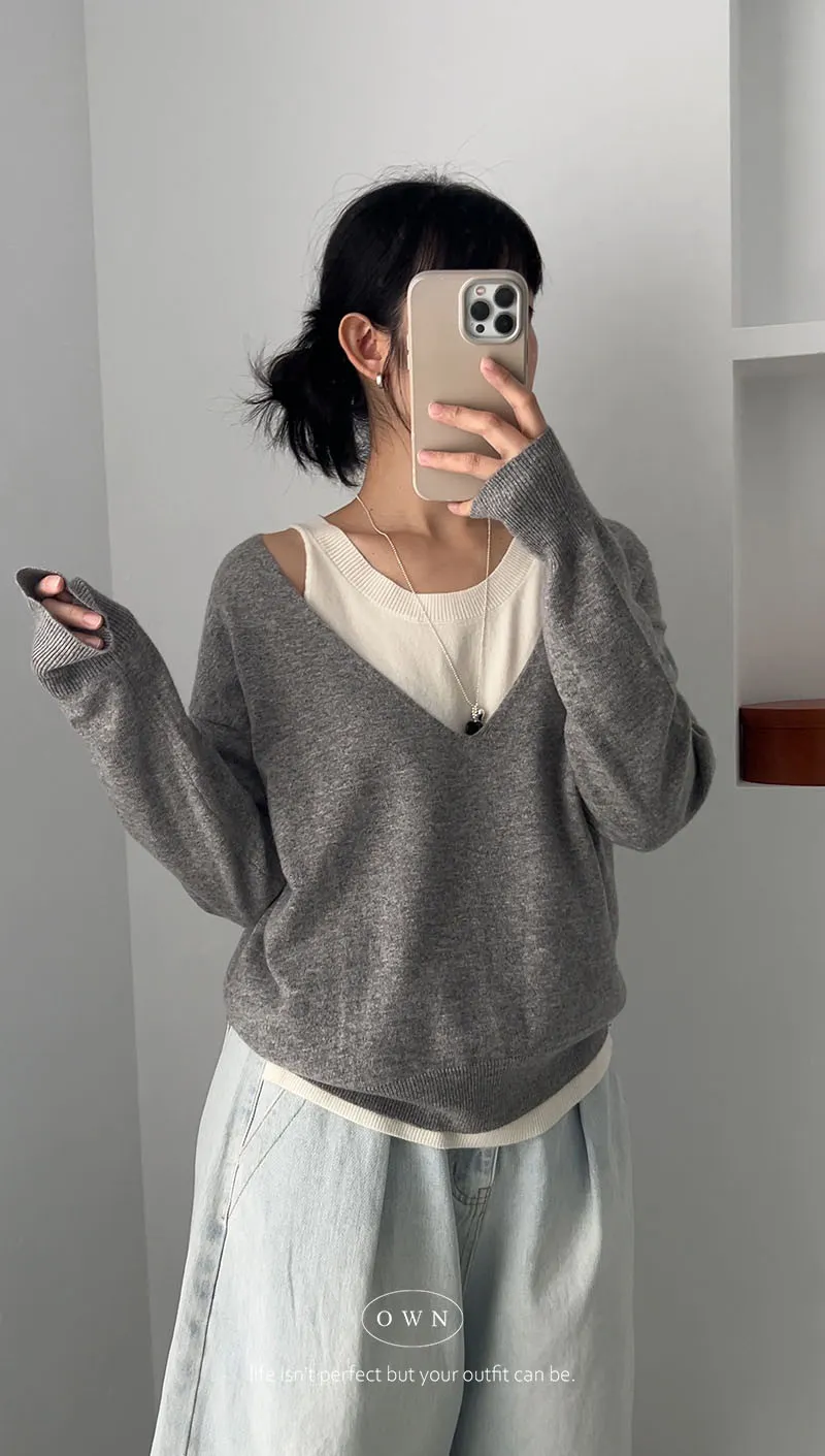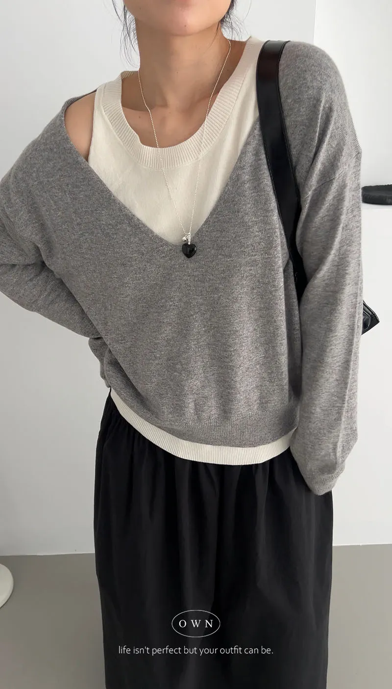 極簡舒服 假兩件挖肩針織上衣 3colors