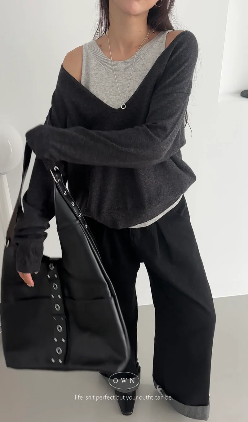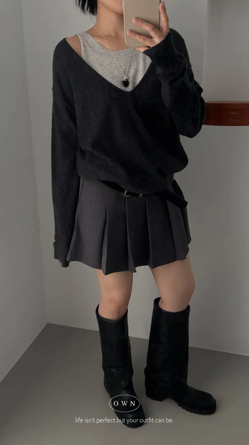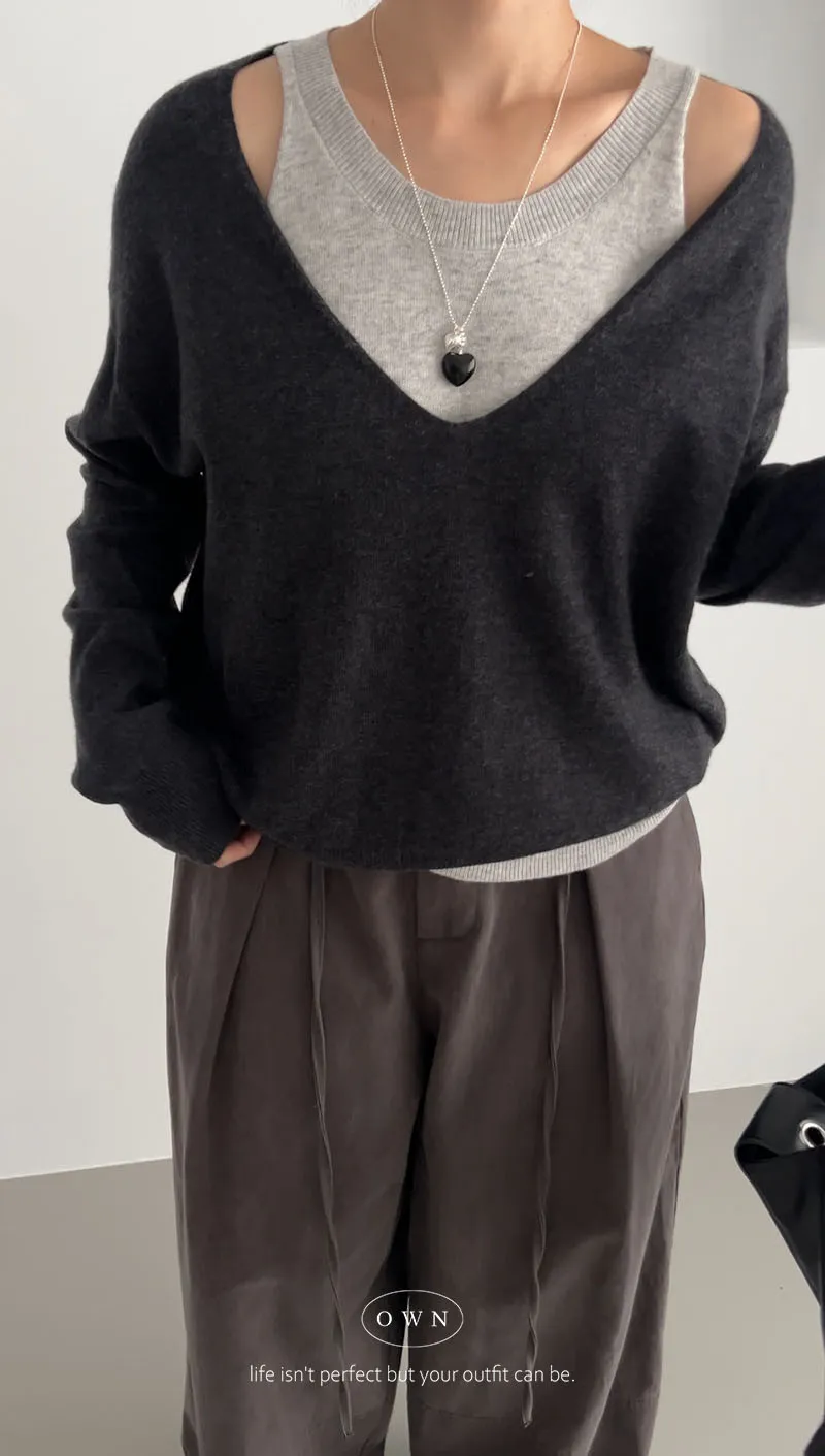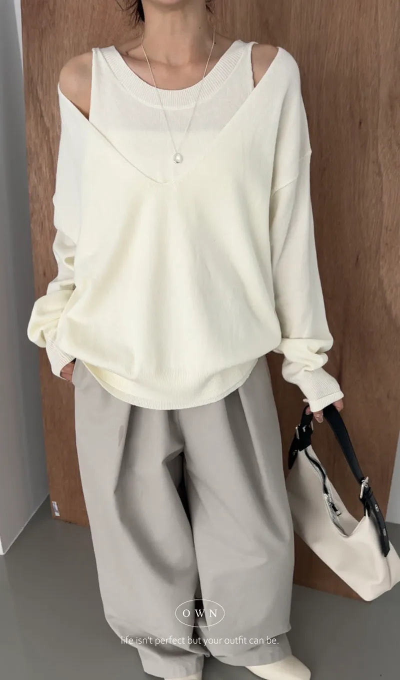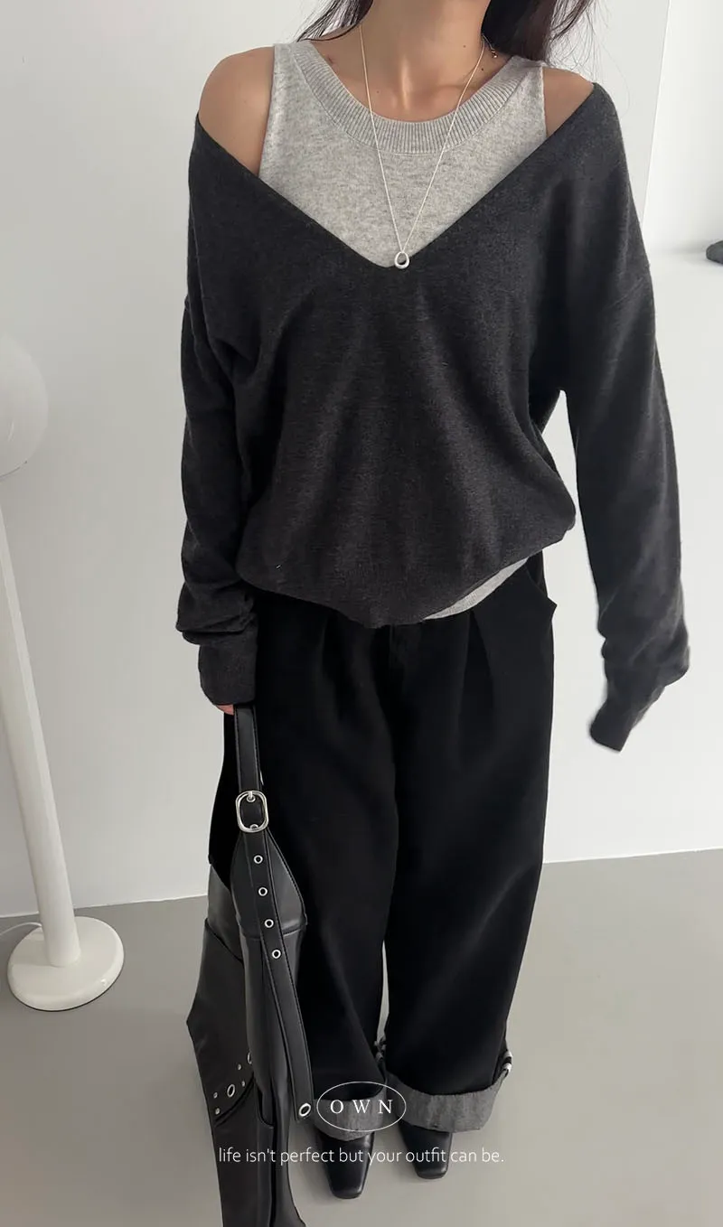 極簡舒服 假兩件挖肩針織上衣 3colors