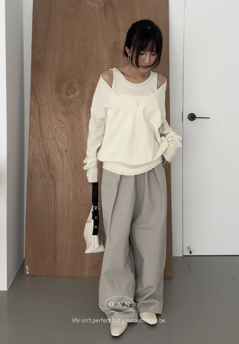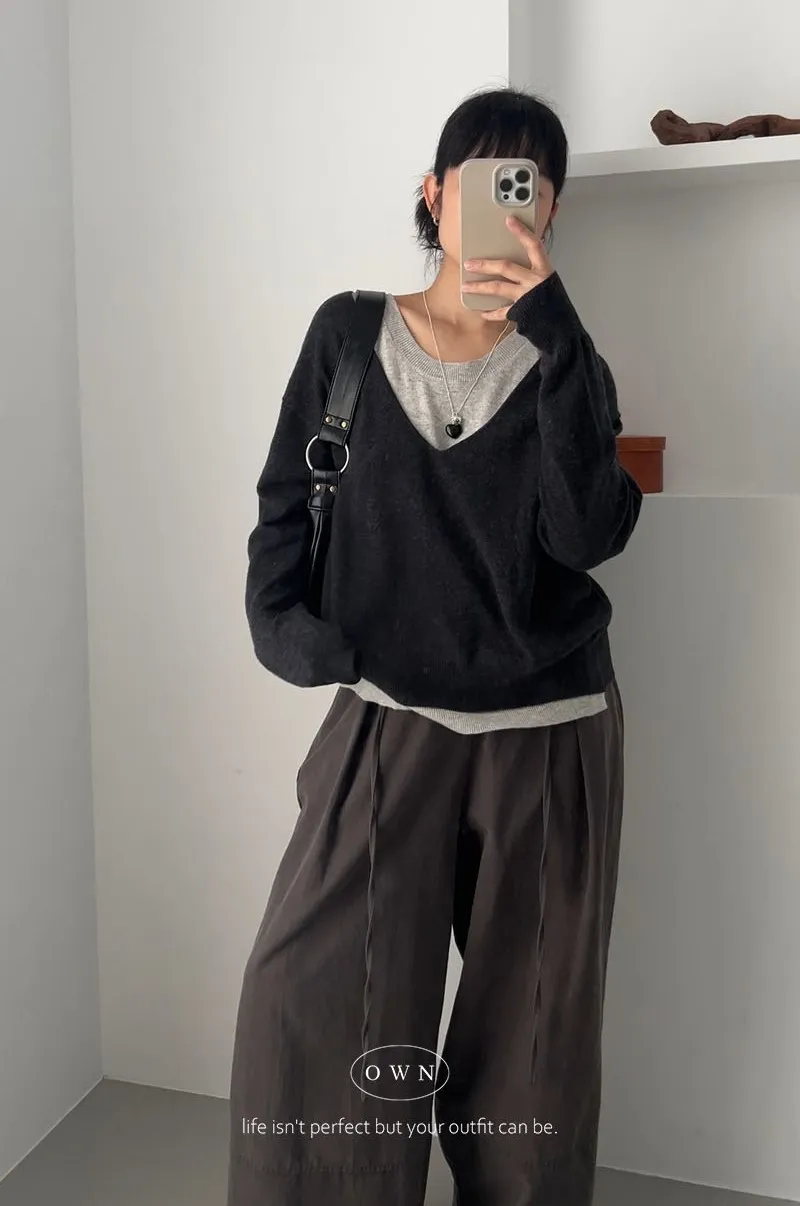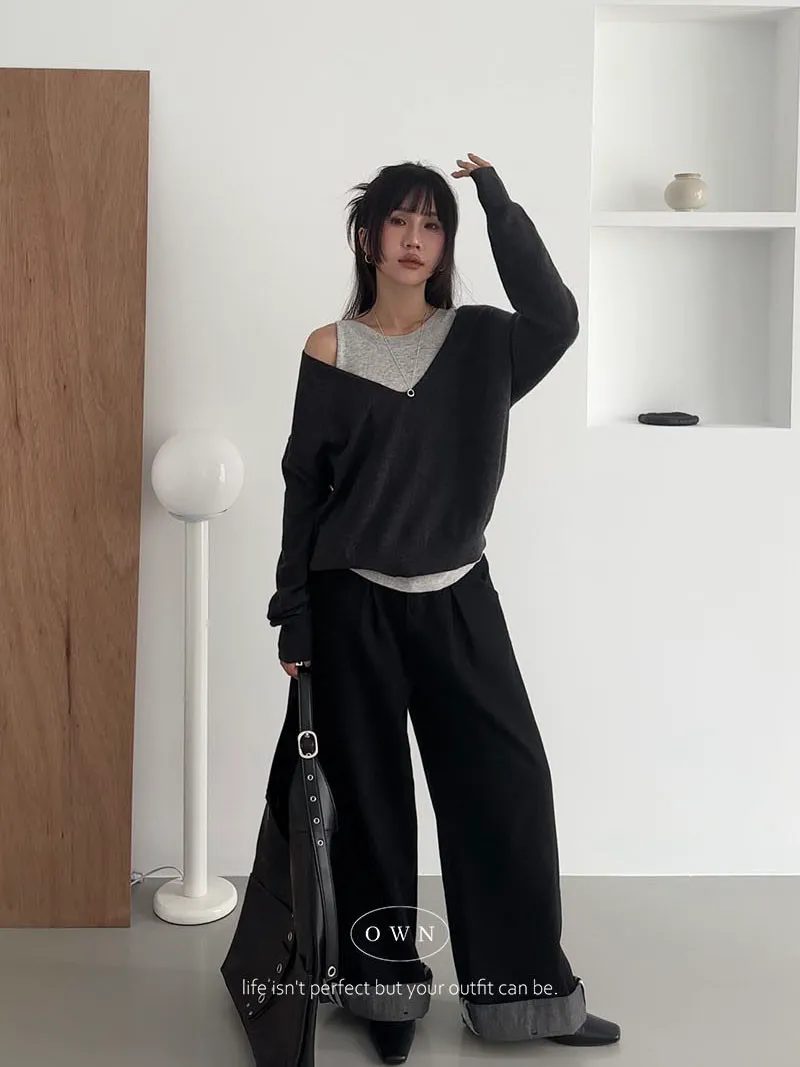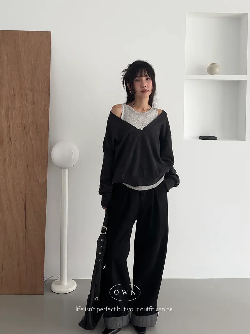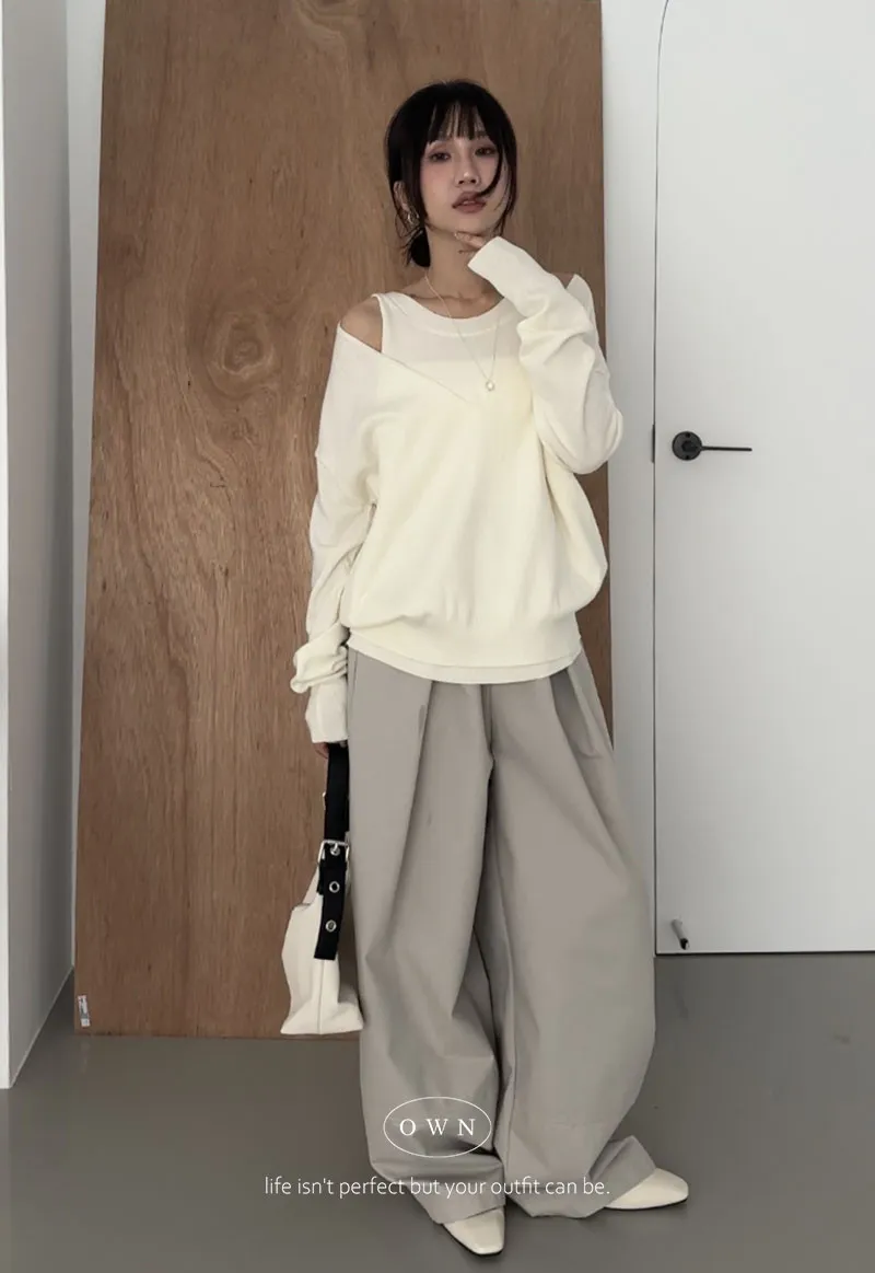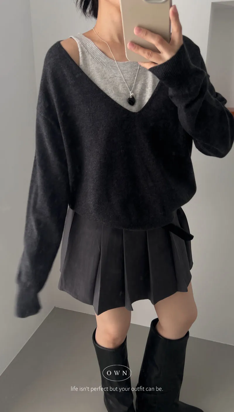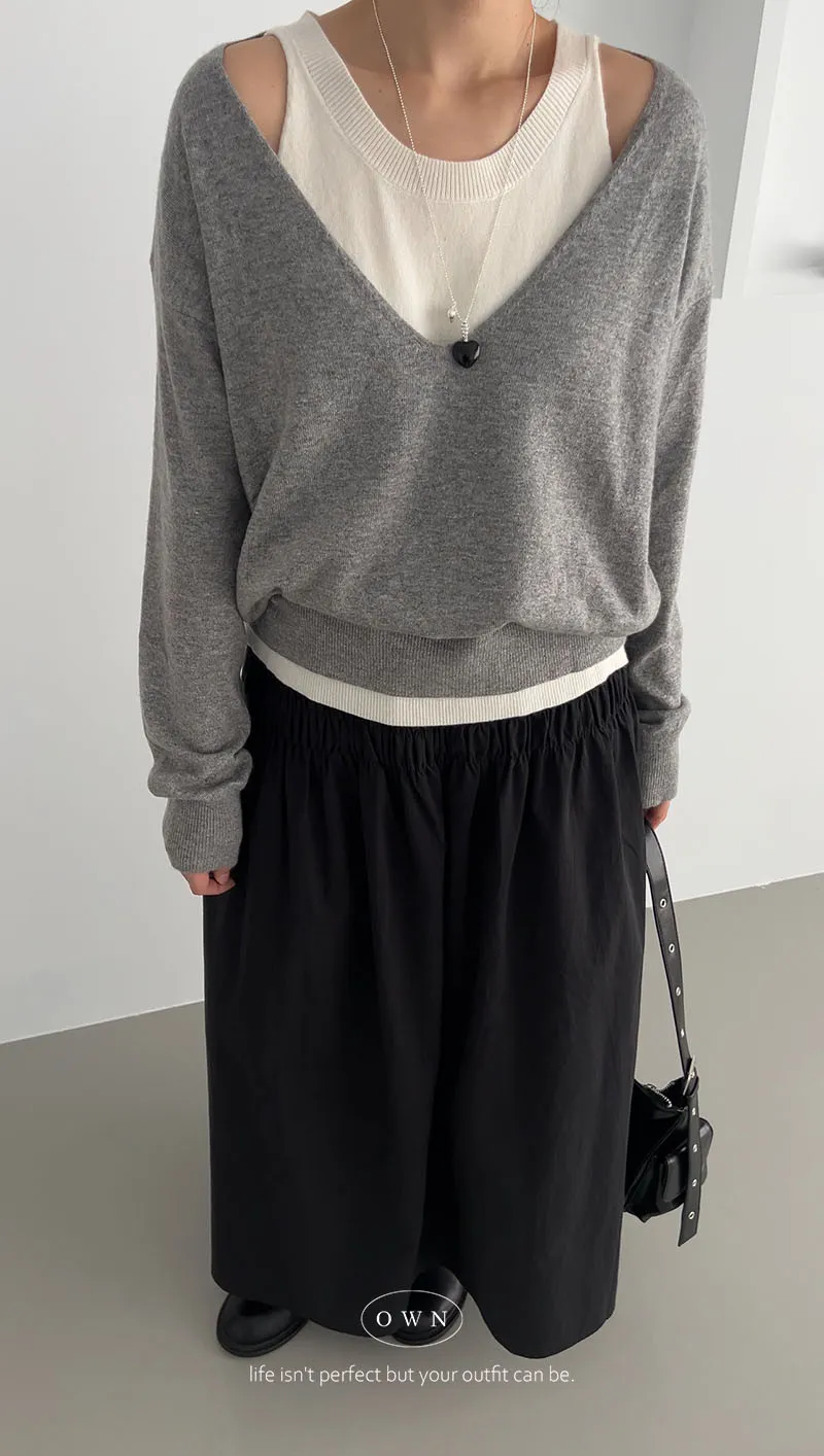 極簡舒服 假兩件挖肩針織上衣 3colors