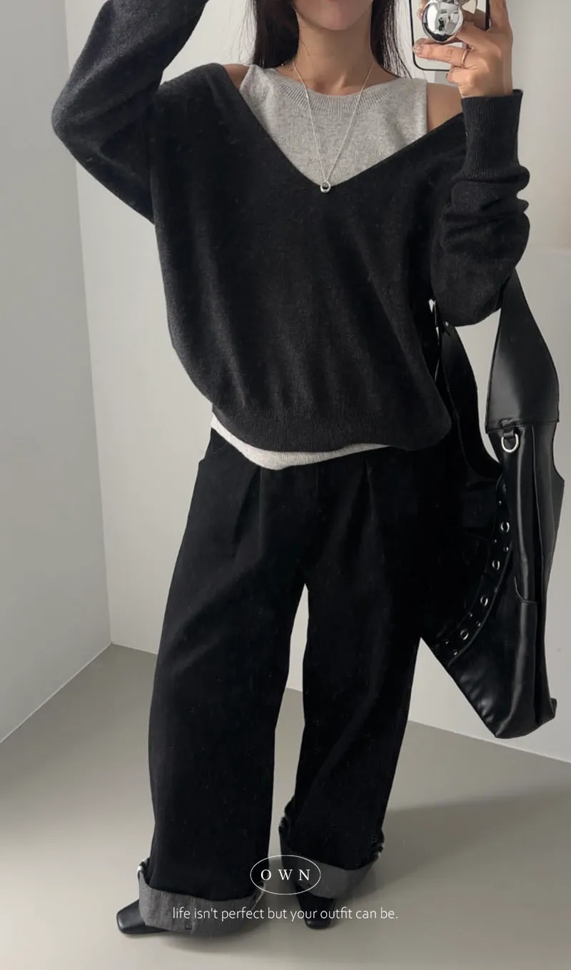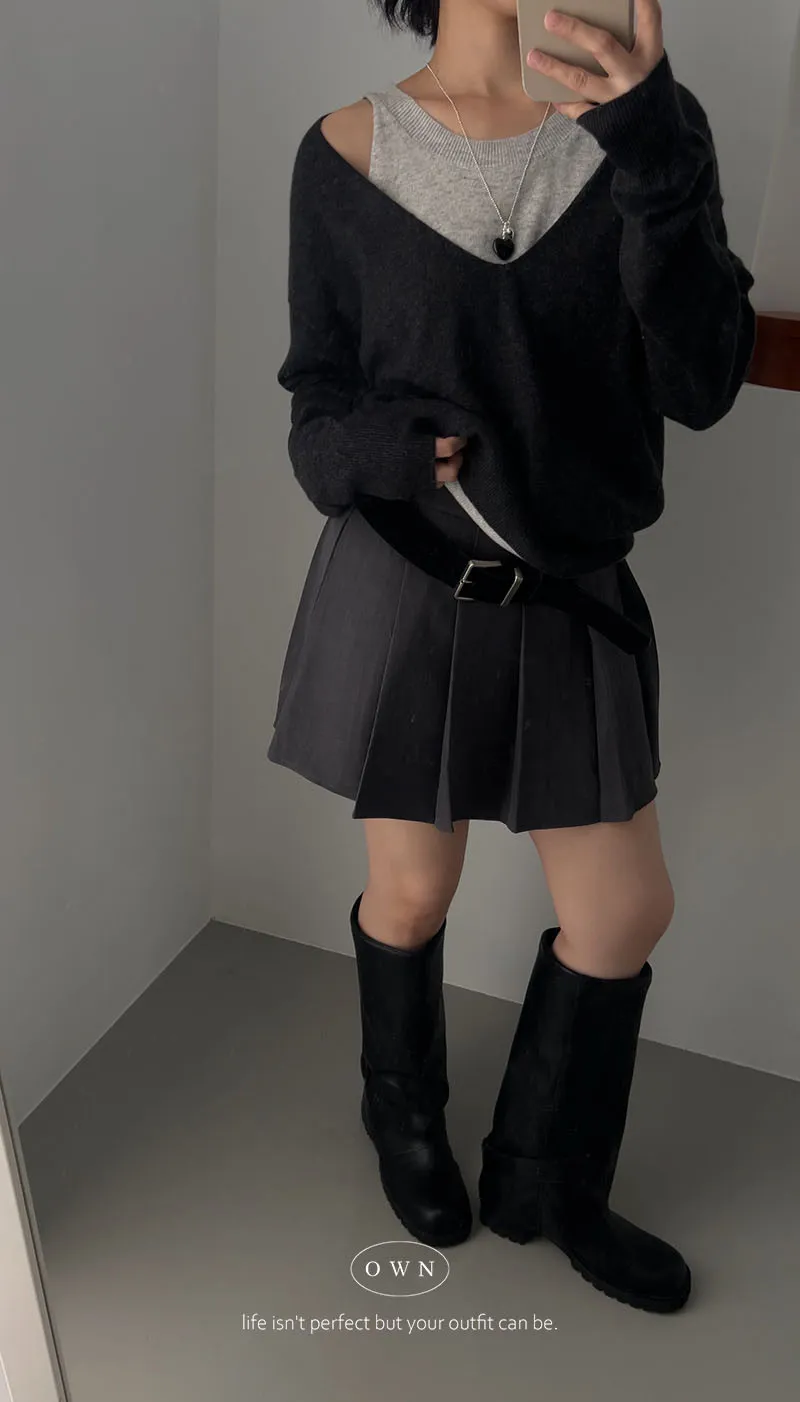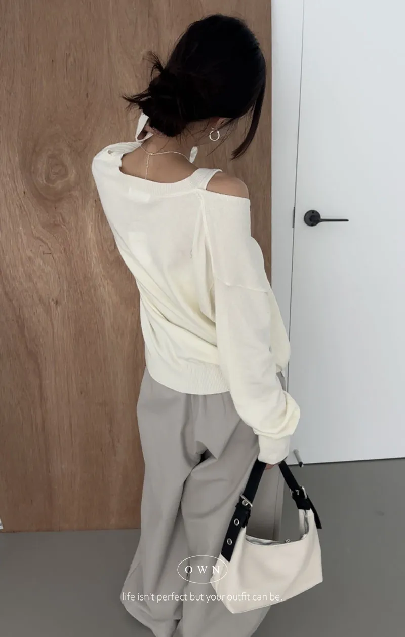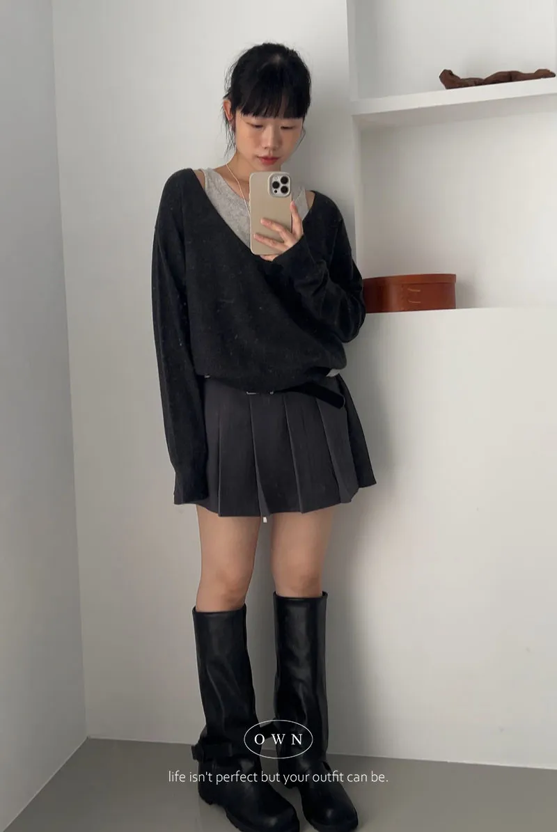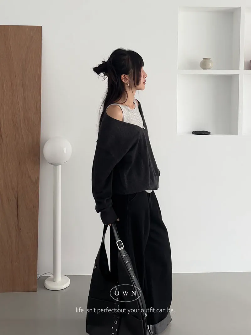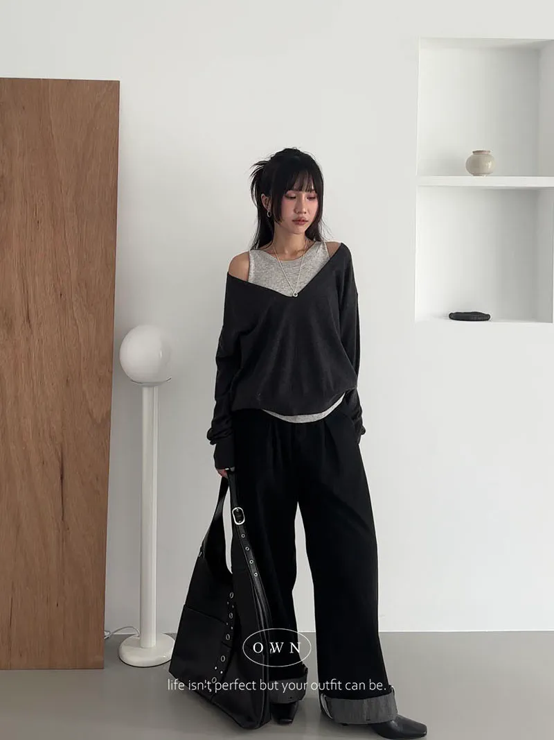 極簡舒服 假兩件挖肩針織上衣 3colors