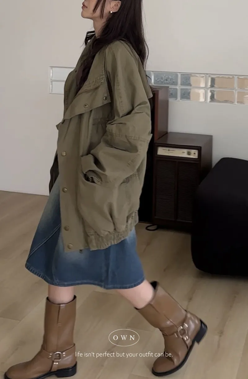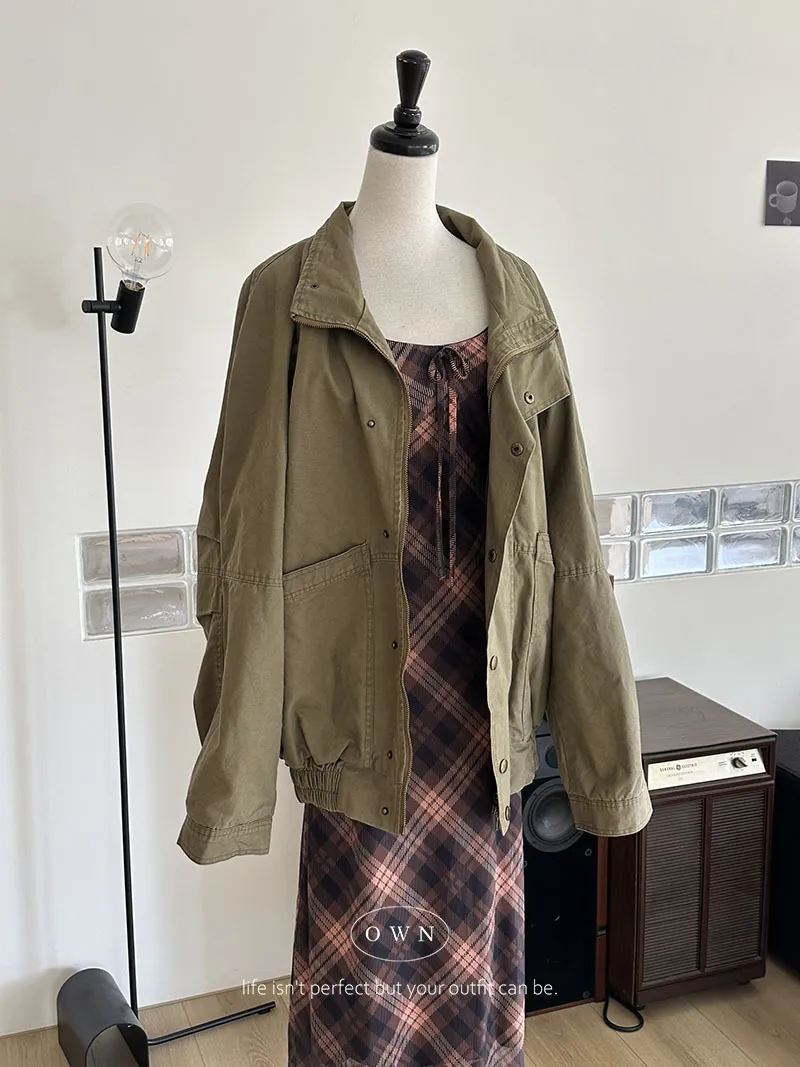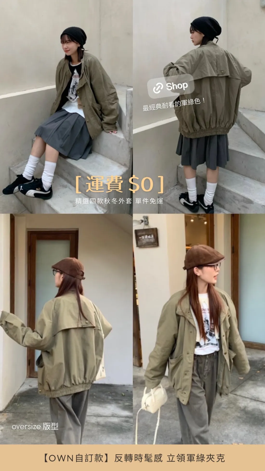 【OWN自訂款】反轉時髦感 立領軍綠夾克