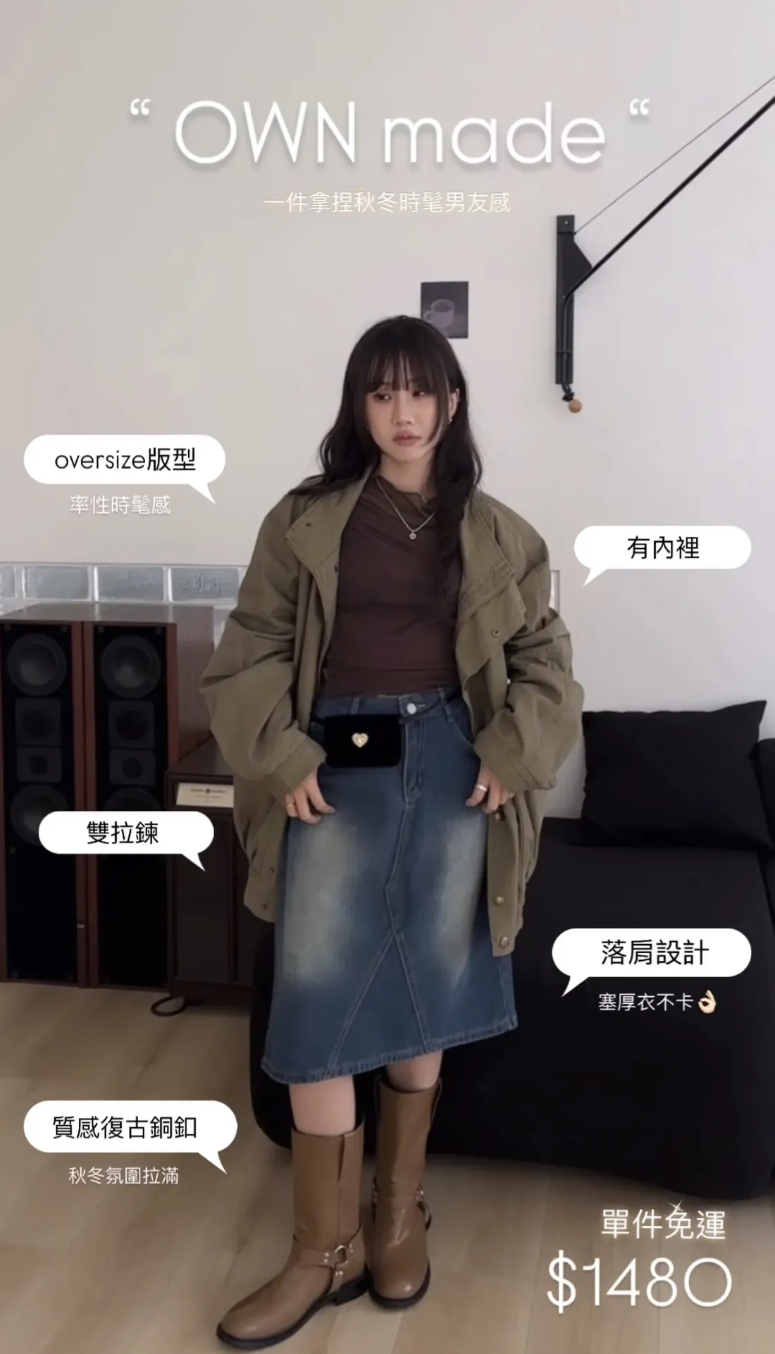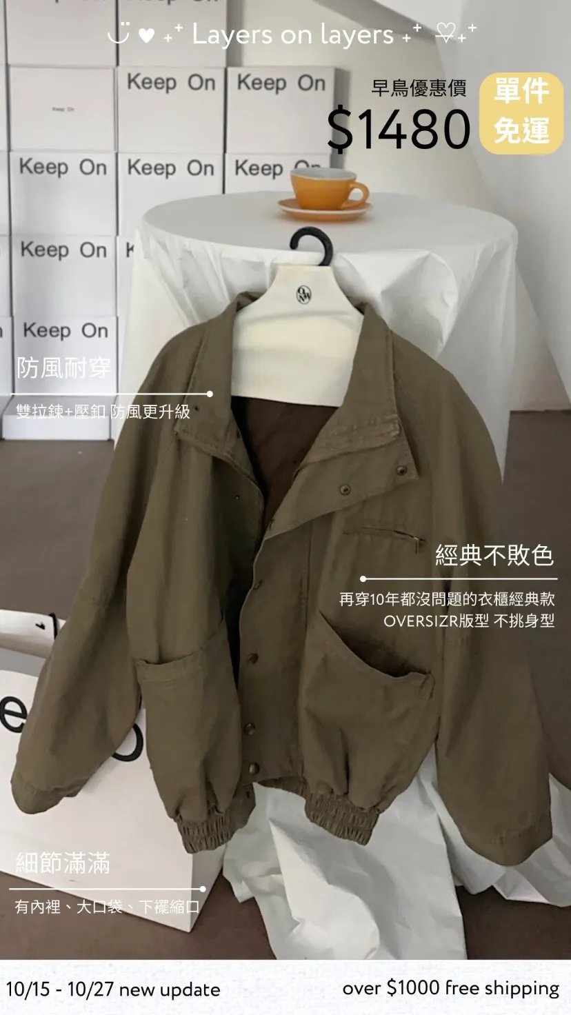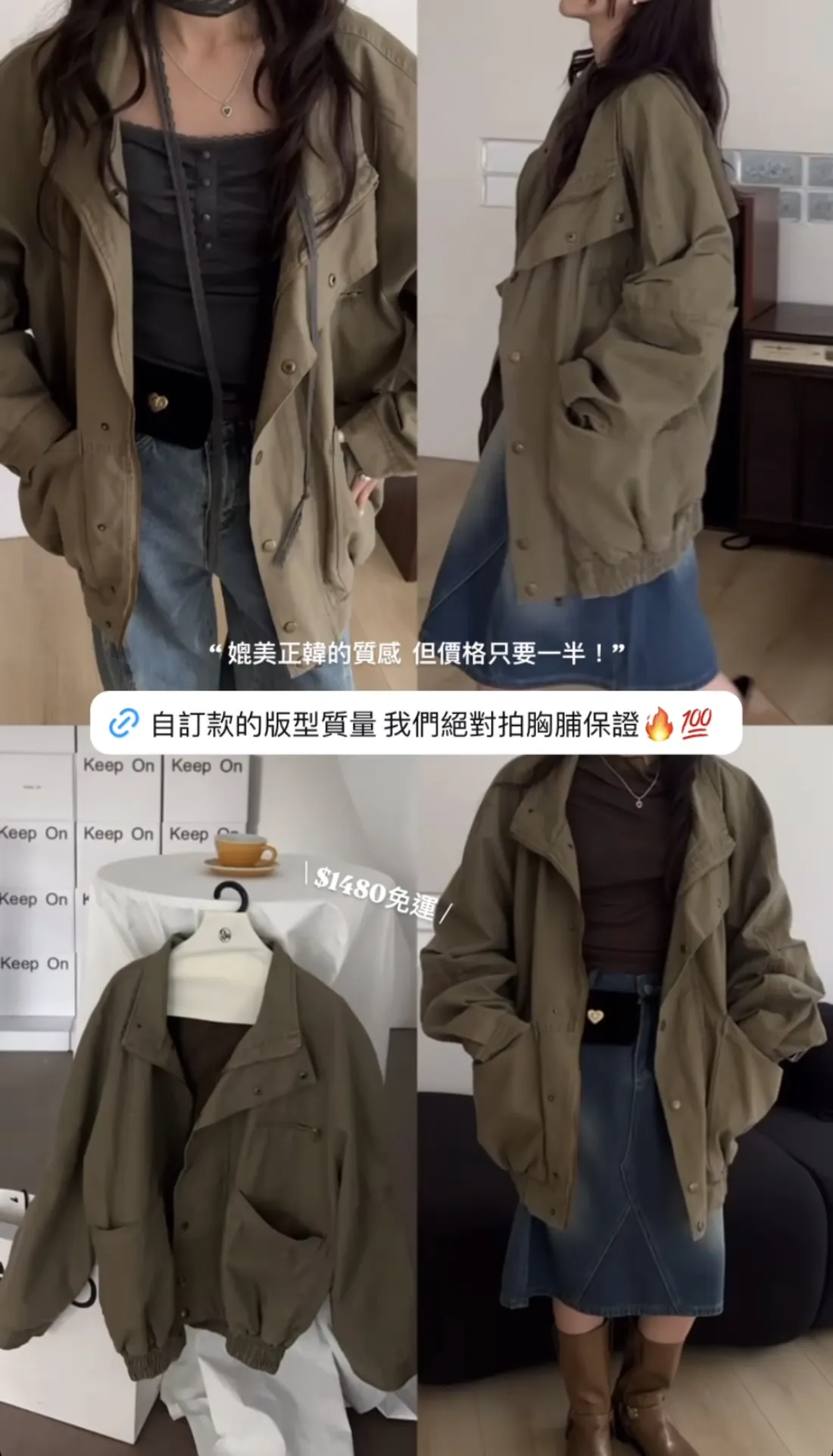 【OWN自訂款】反轉時髦感 立領軍綠夾克