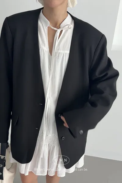 質感時髦全拿捏 無領西外(附繞脖) 2colors
