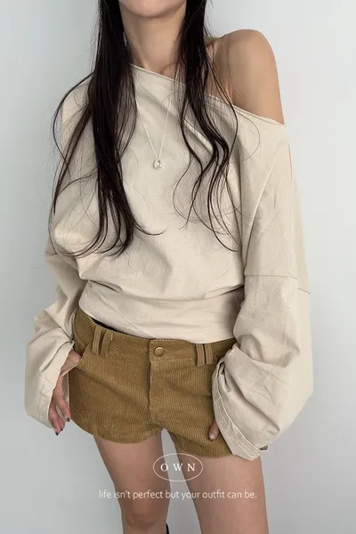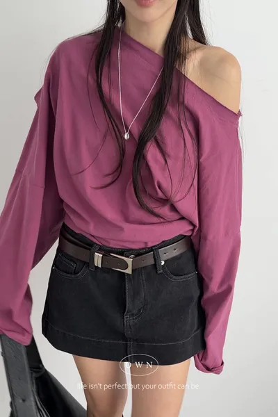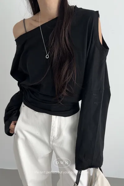 來一點小心機!斜領挖肩寬袖上衣 3colors