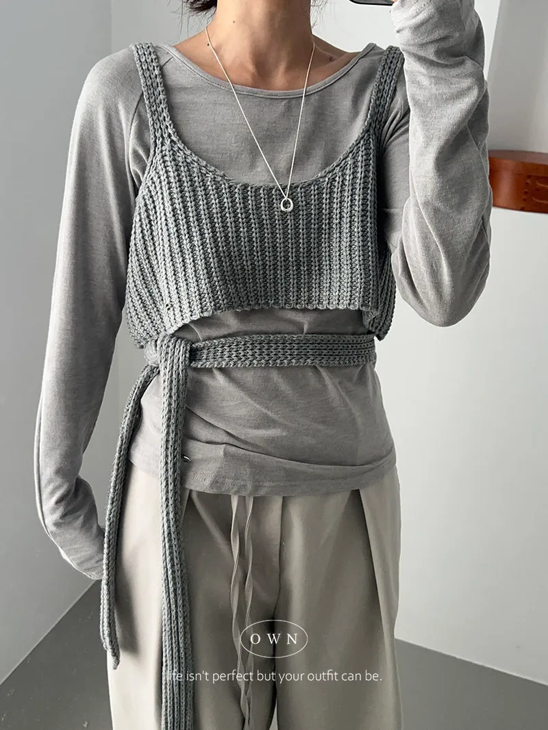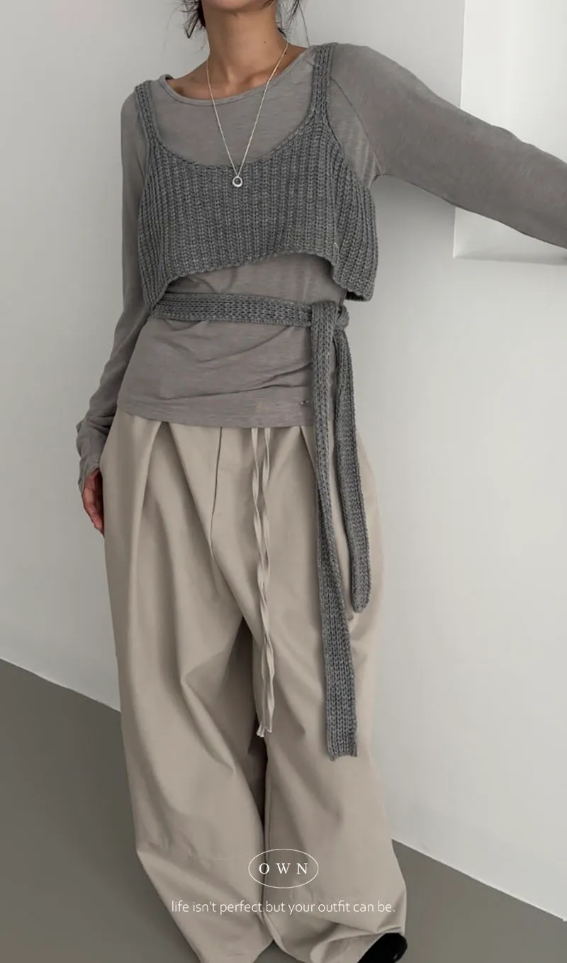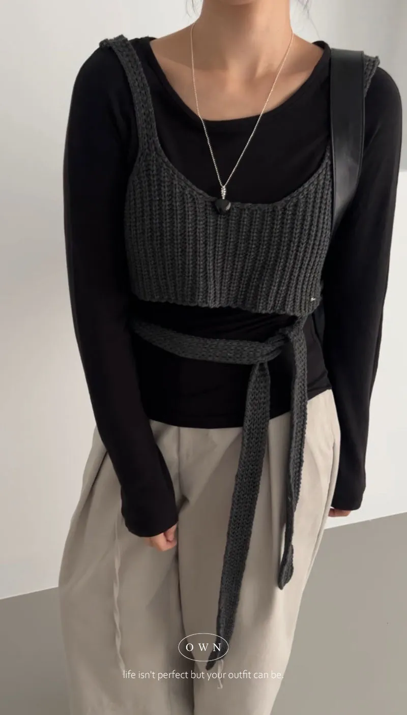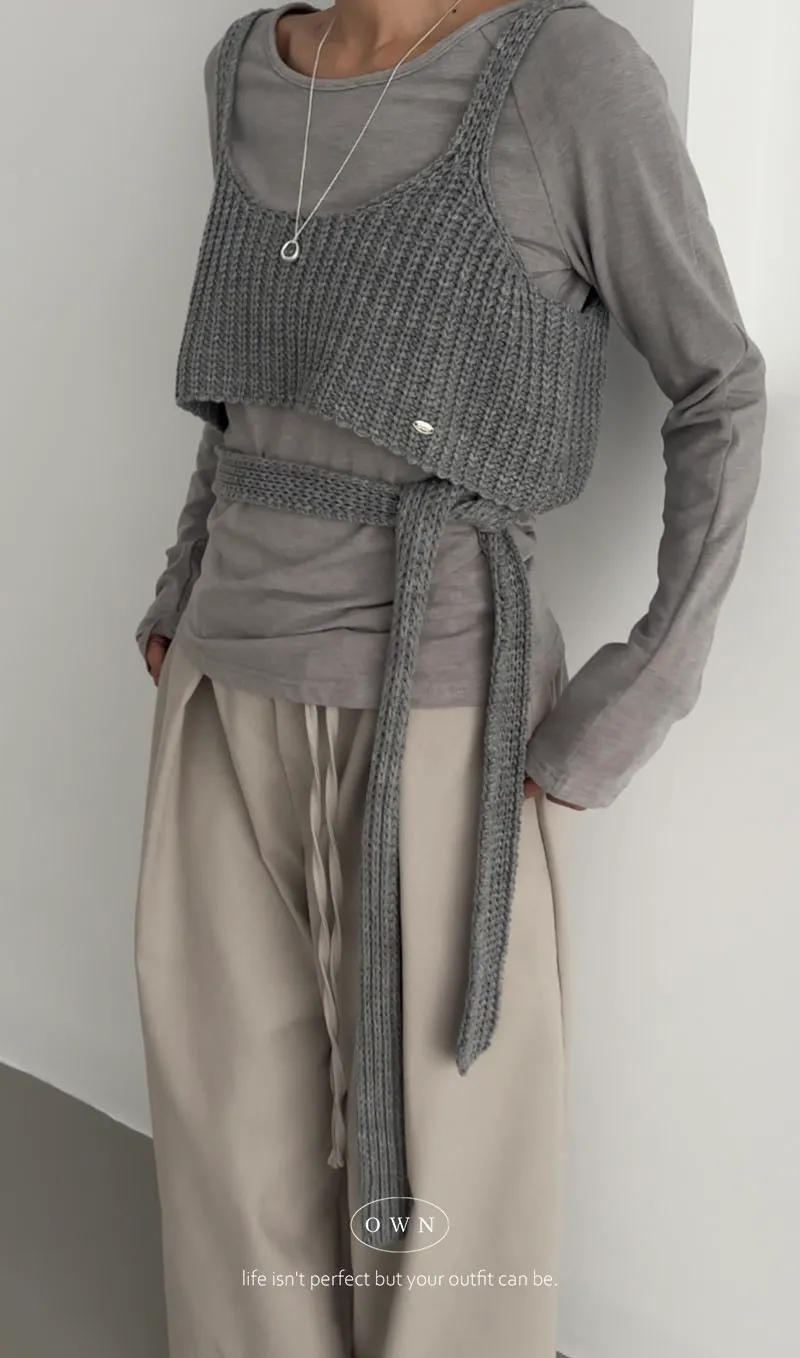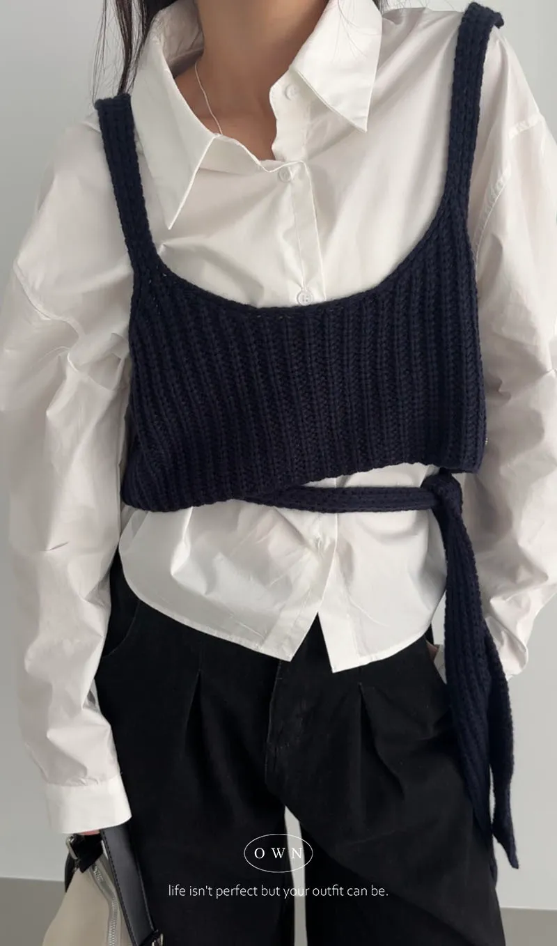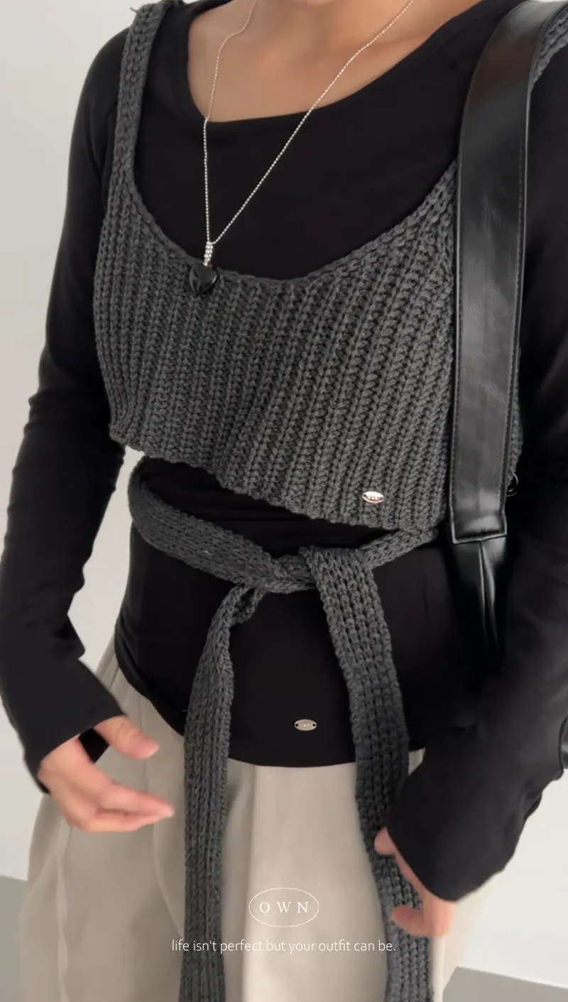 【OWN自訂款-兩件組合價$698】穿出你的風格 短版針織外搭背心(附綁帶)3colors
