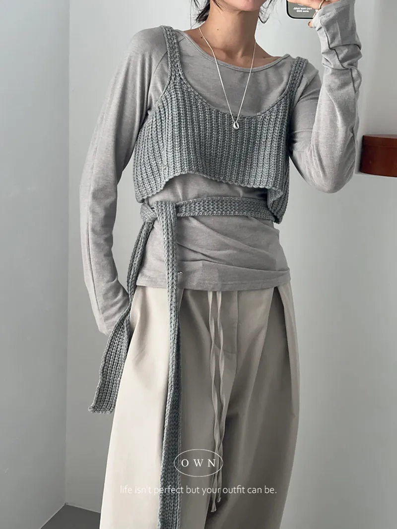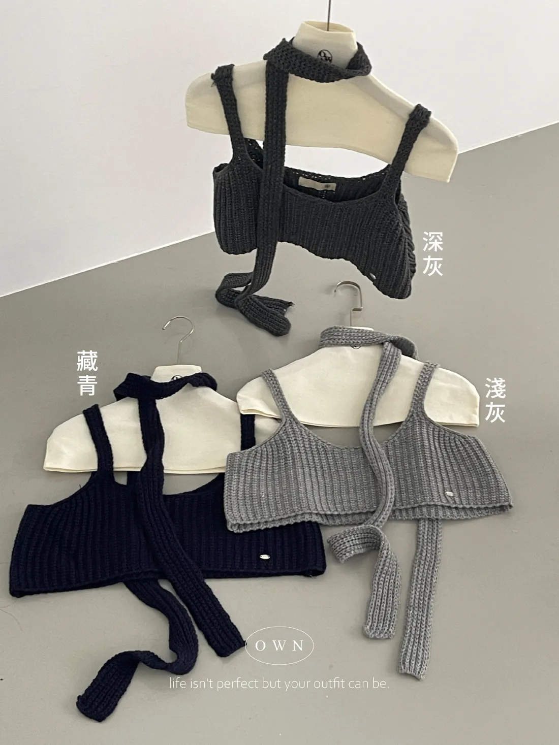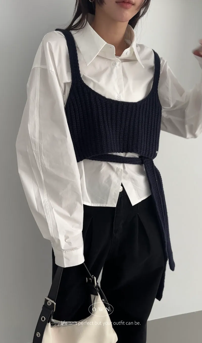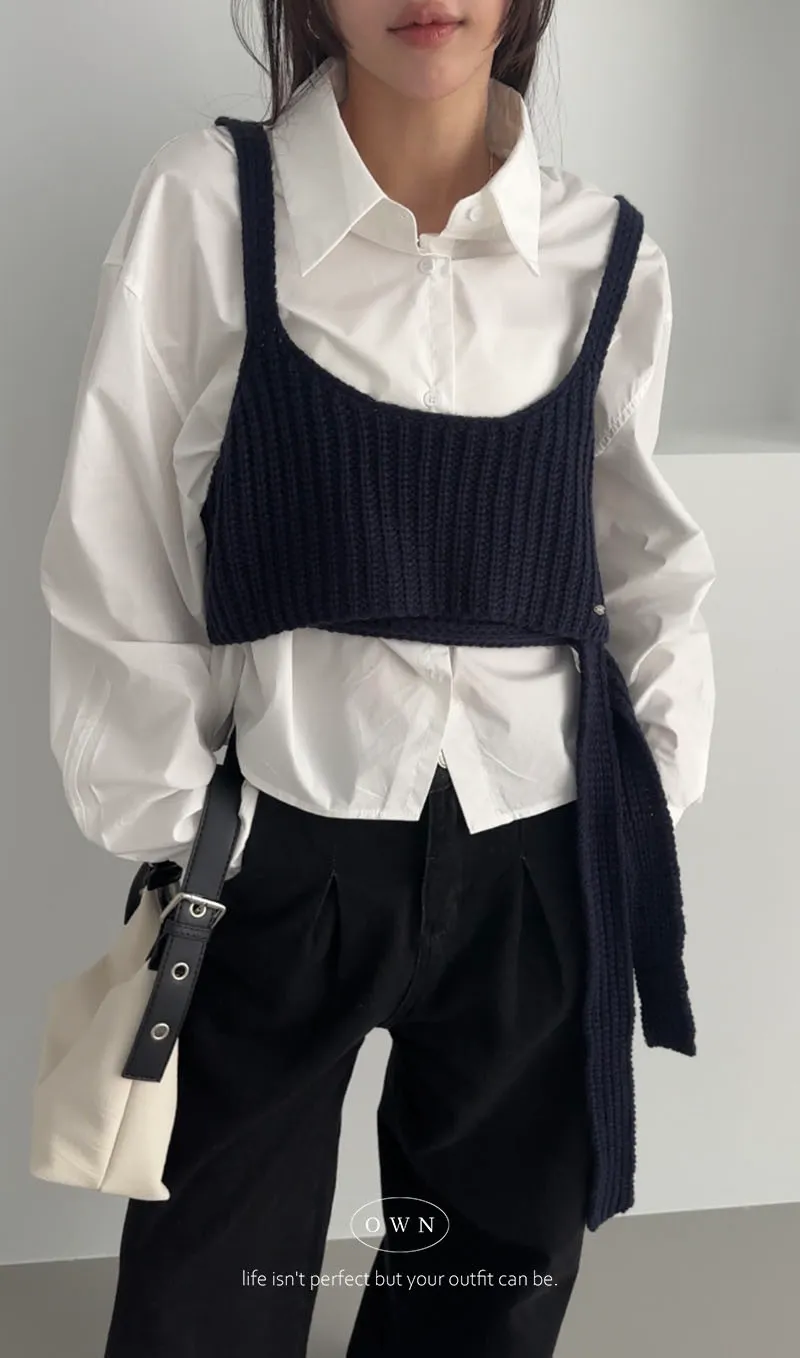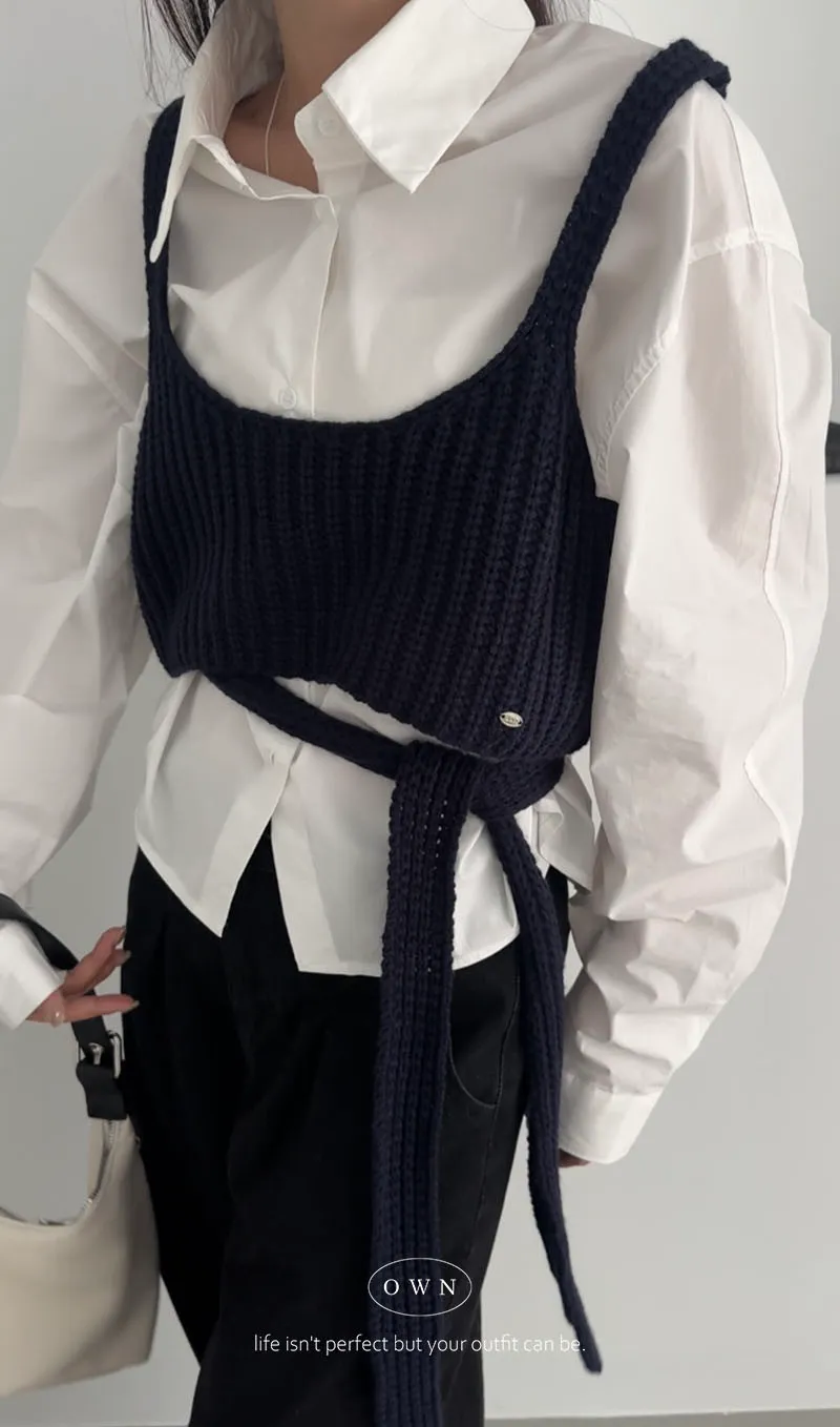 【OWN自訂款-兩件組合價$698】穿出你的風格 短版針織外搭背心(附綁帶)3colors
