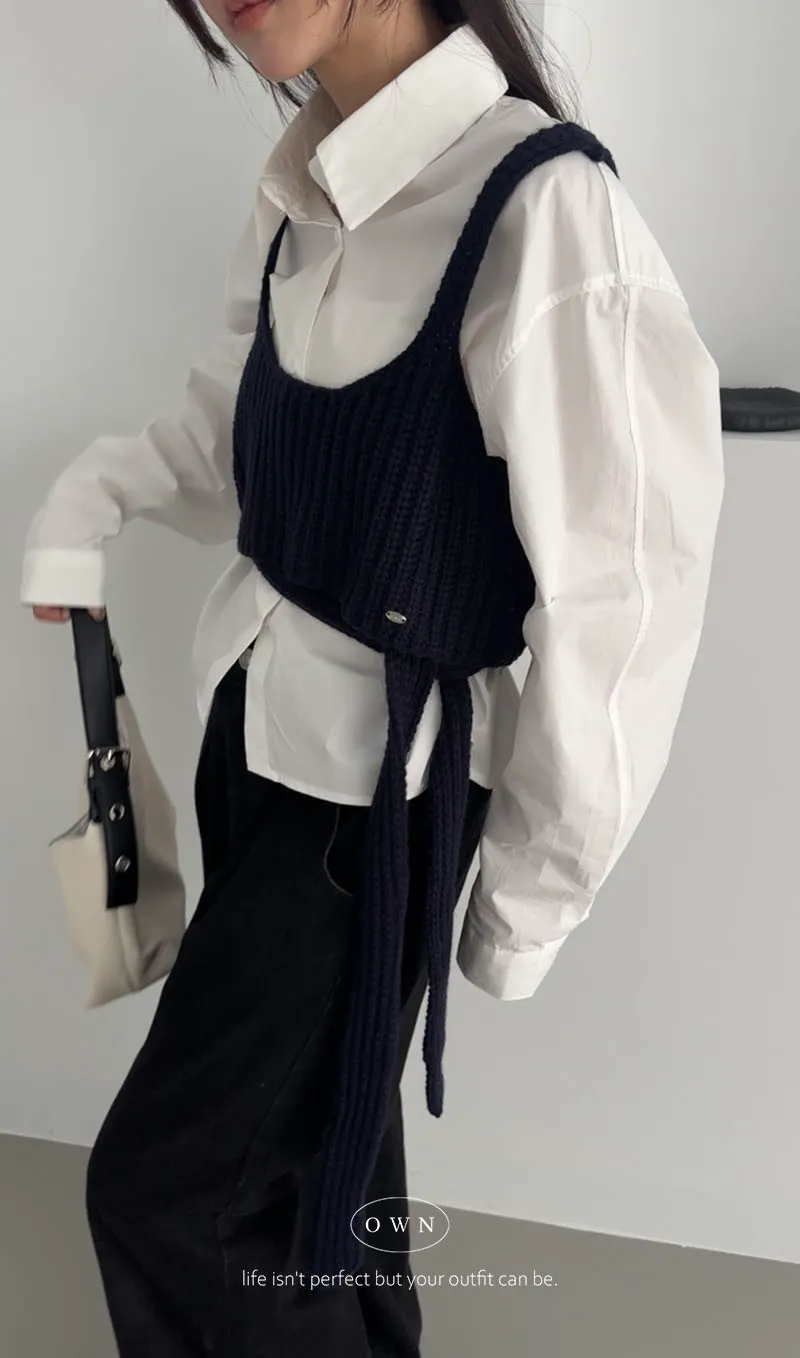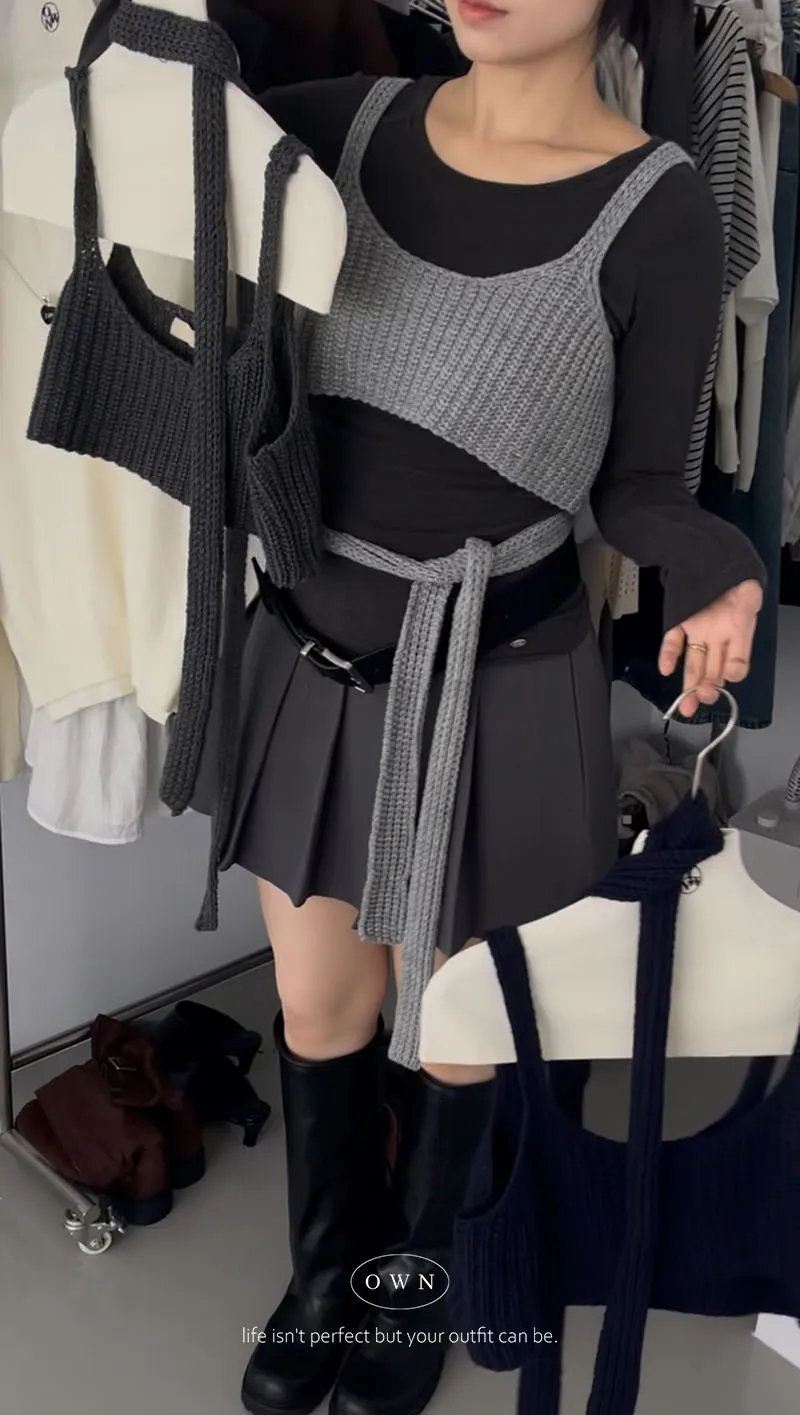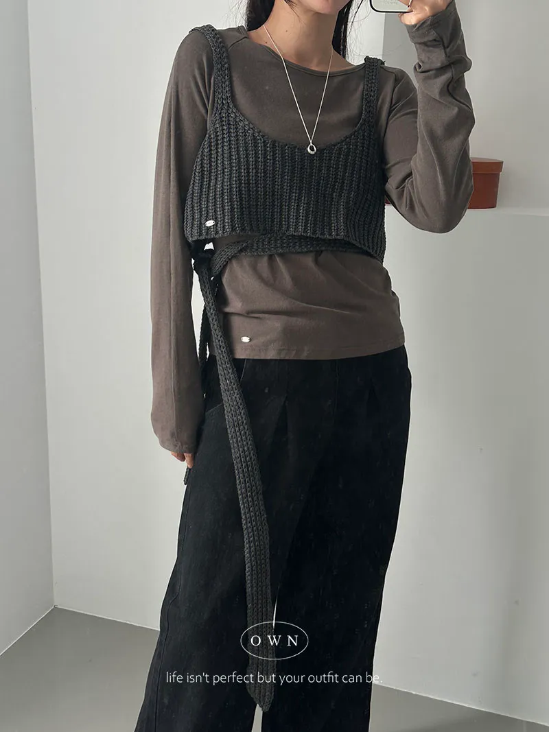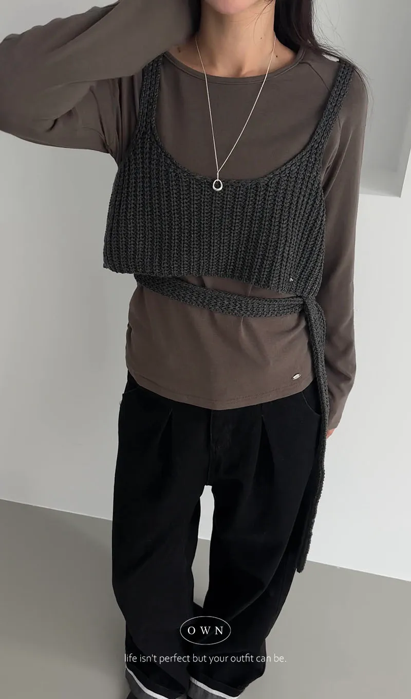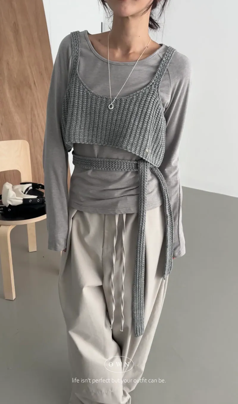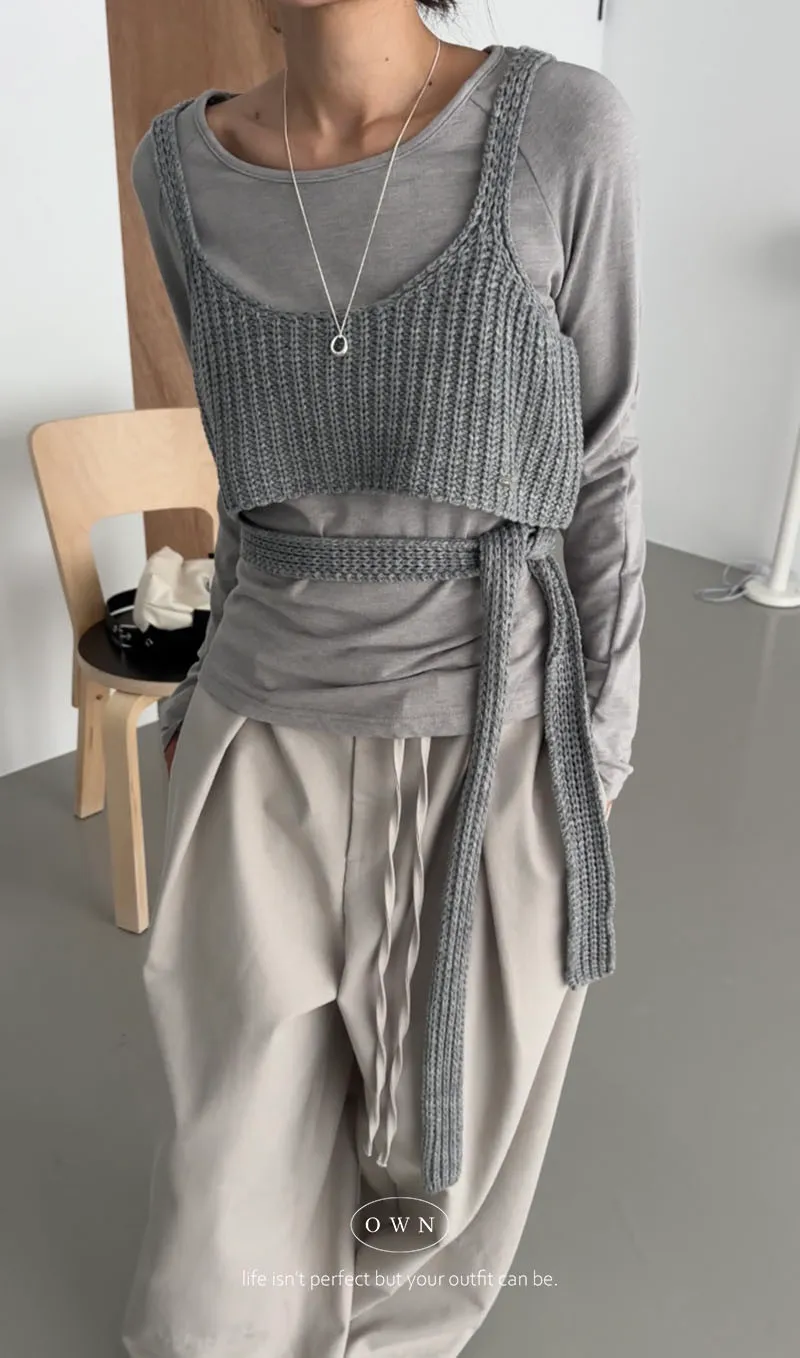 【OWN自訂款-兩件組合價$698】穿出你的風格 短版針織外搭背心(附綁帶)3colors