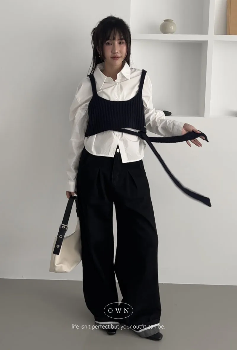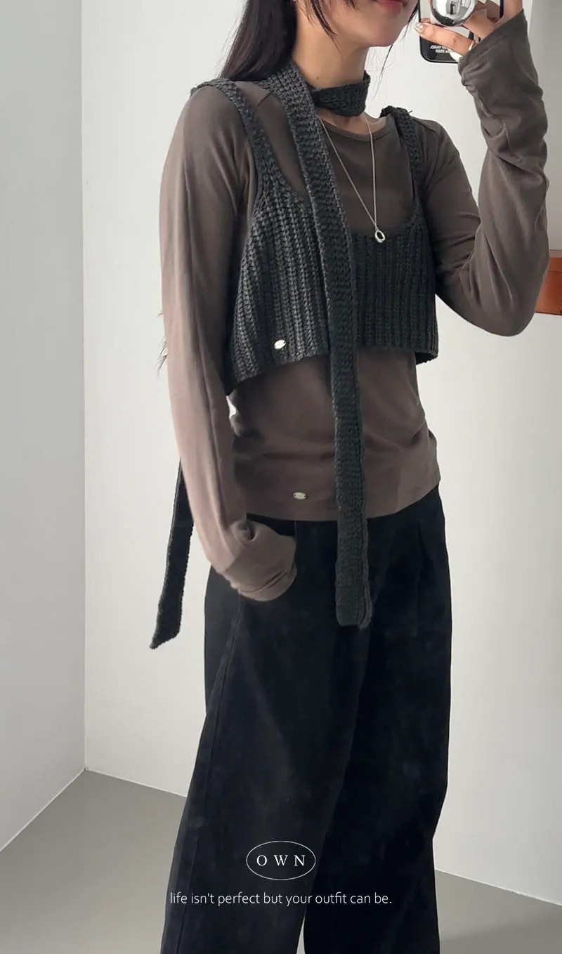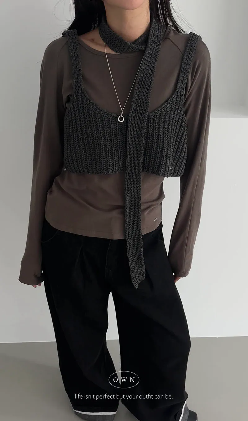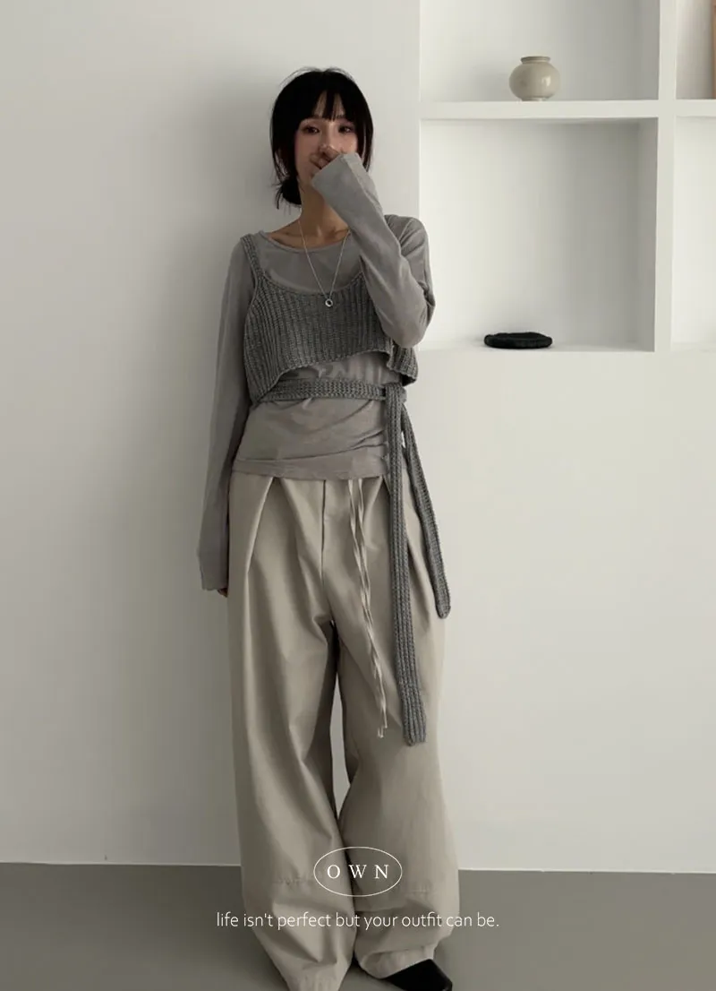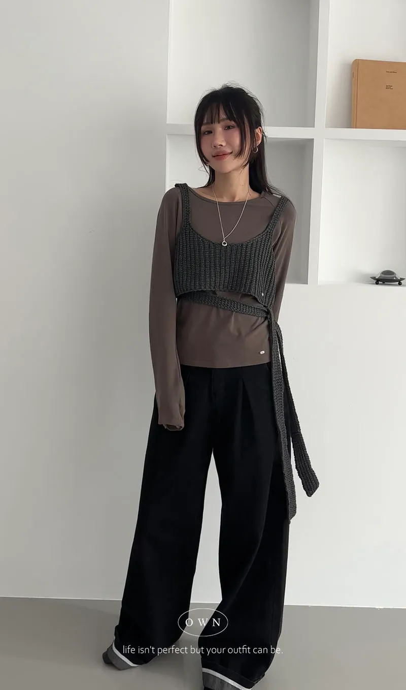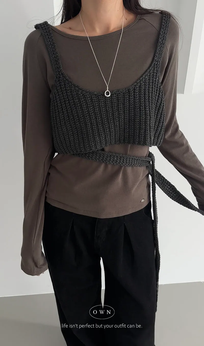 【OWN自訂款-兩件組合價$698】穿出你的風格 短版針織外搭背心(附綁帶)3colors