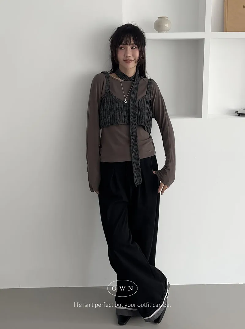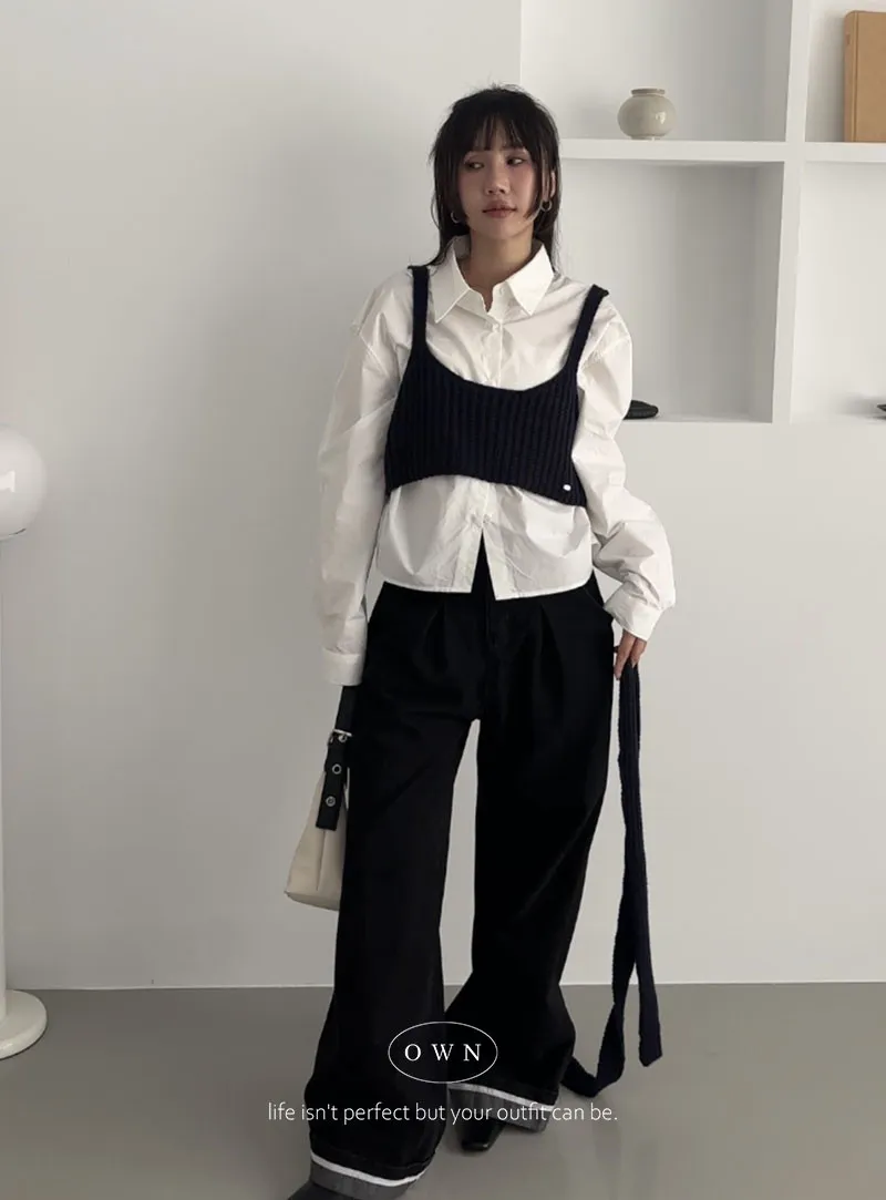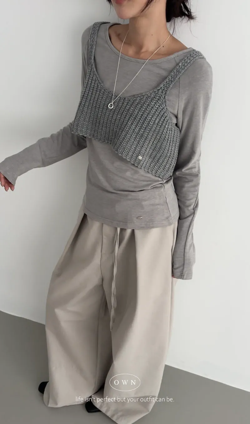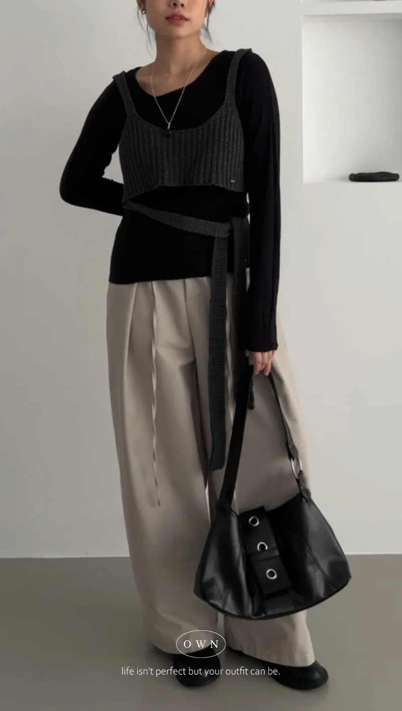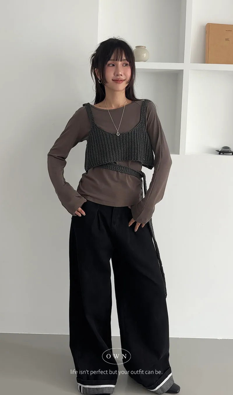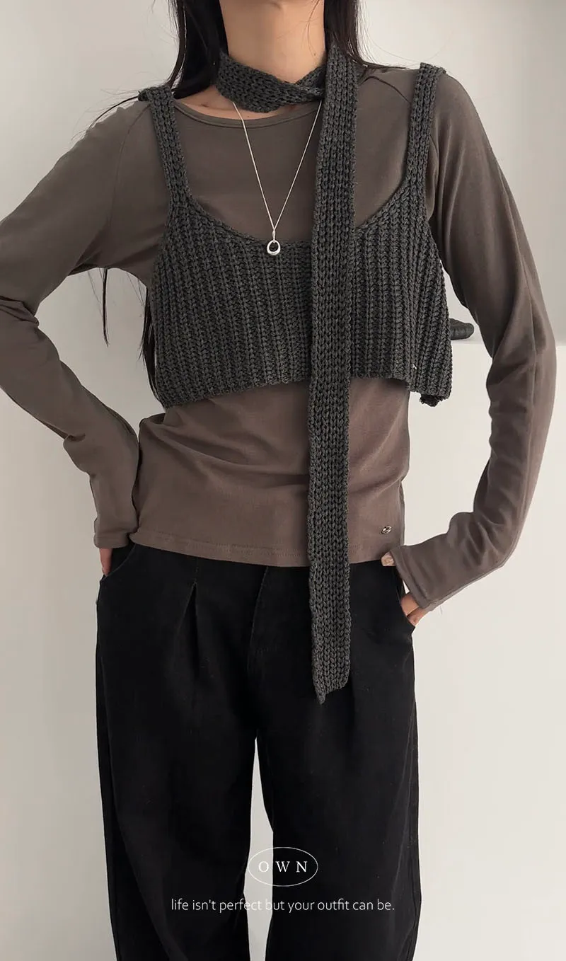 【OWN自訂款-兩件組合價$698】穿出你的風格 短版針織外搭背心(附綁帶)3colors