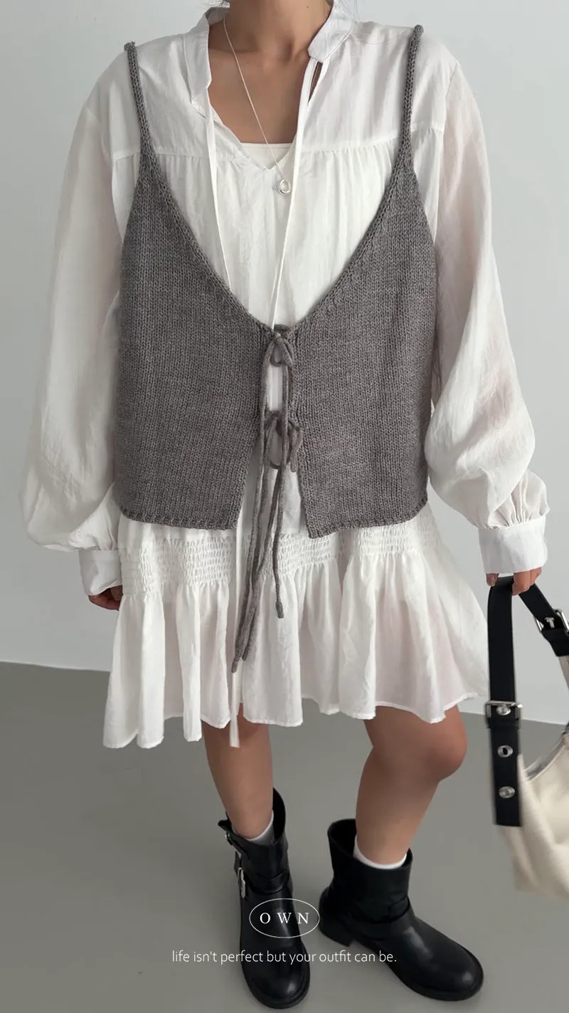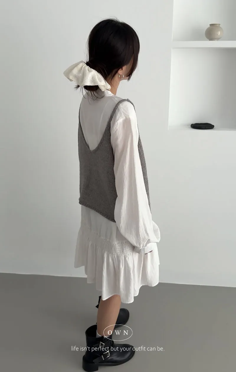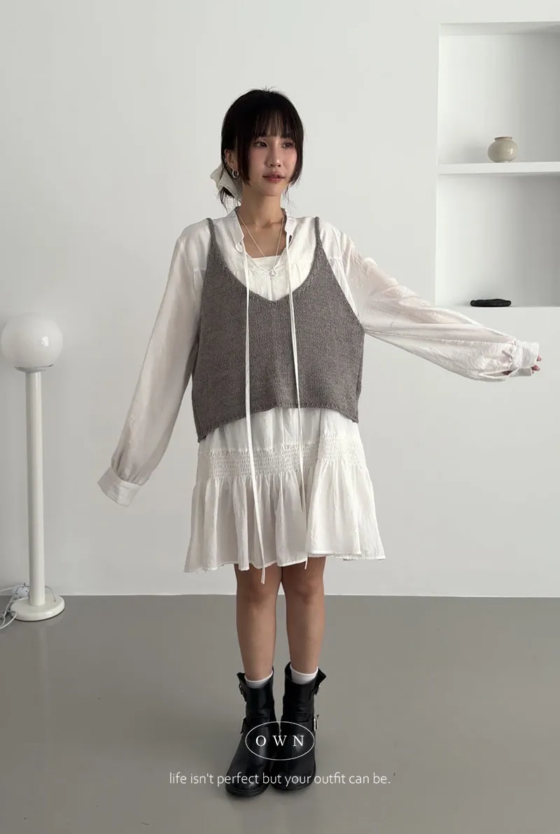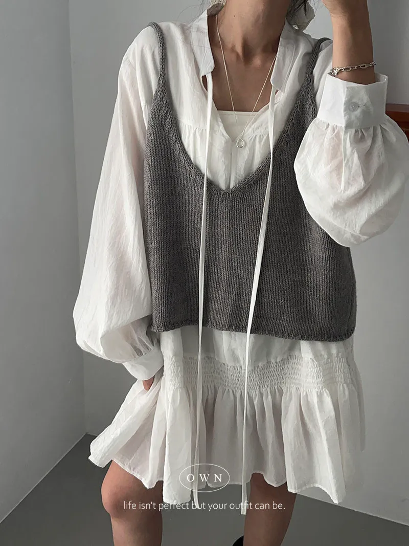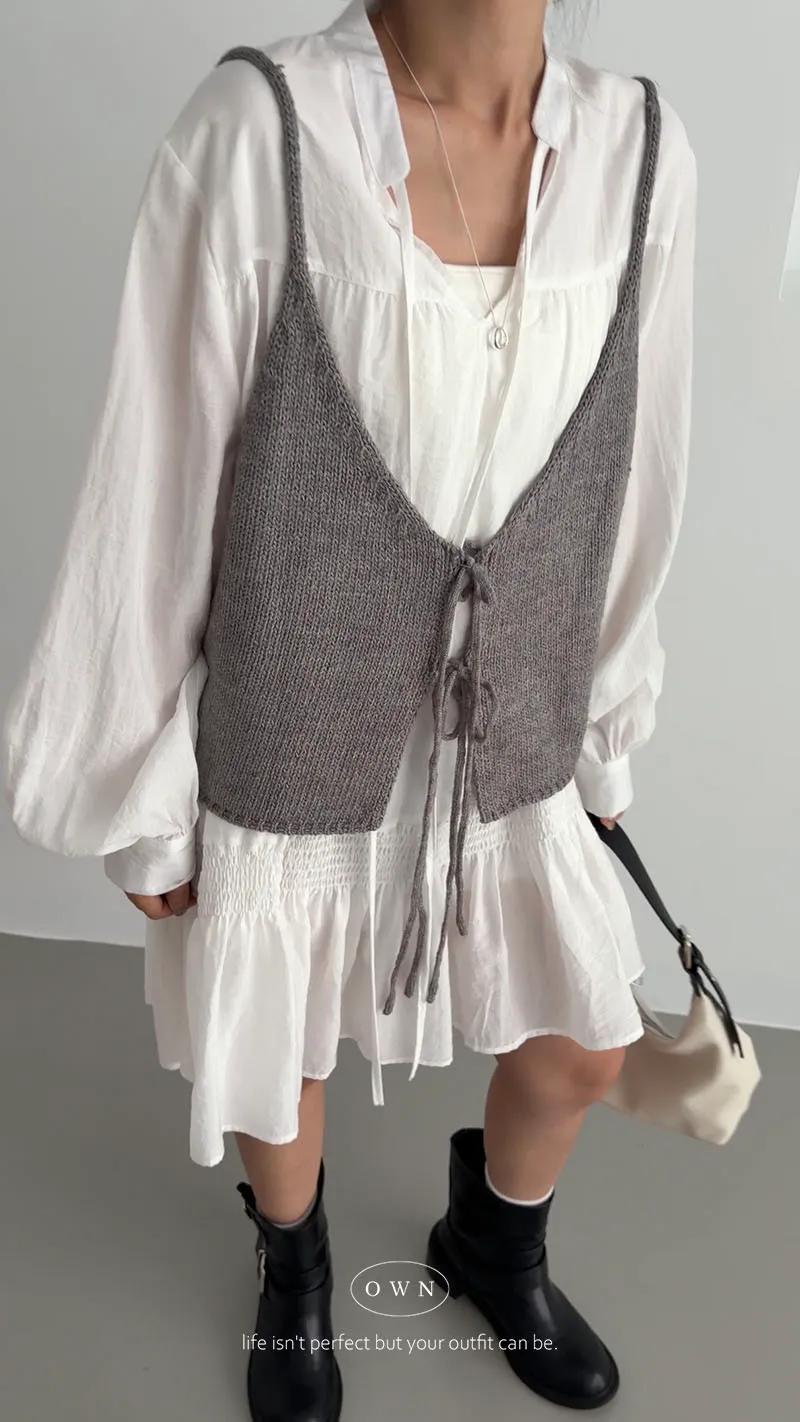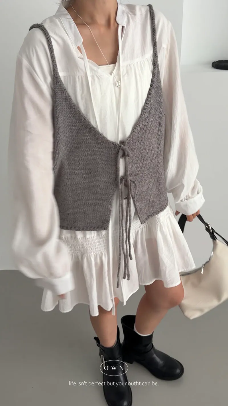 秋日氛圍感 綁帶小立領澎袖洋裝 2colors
