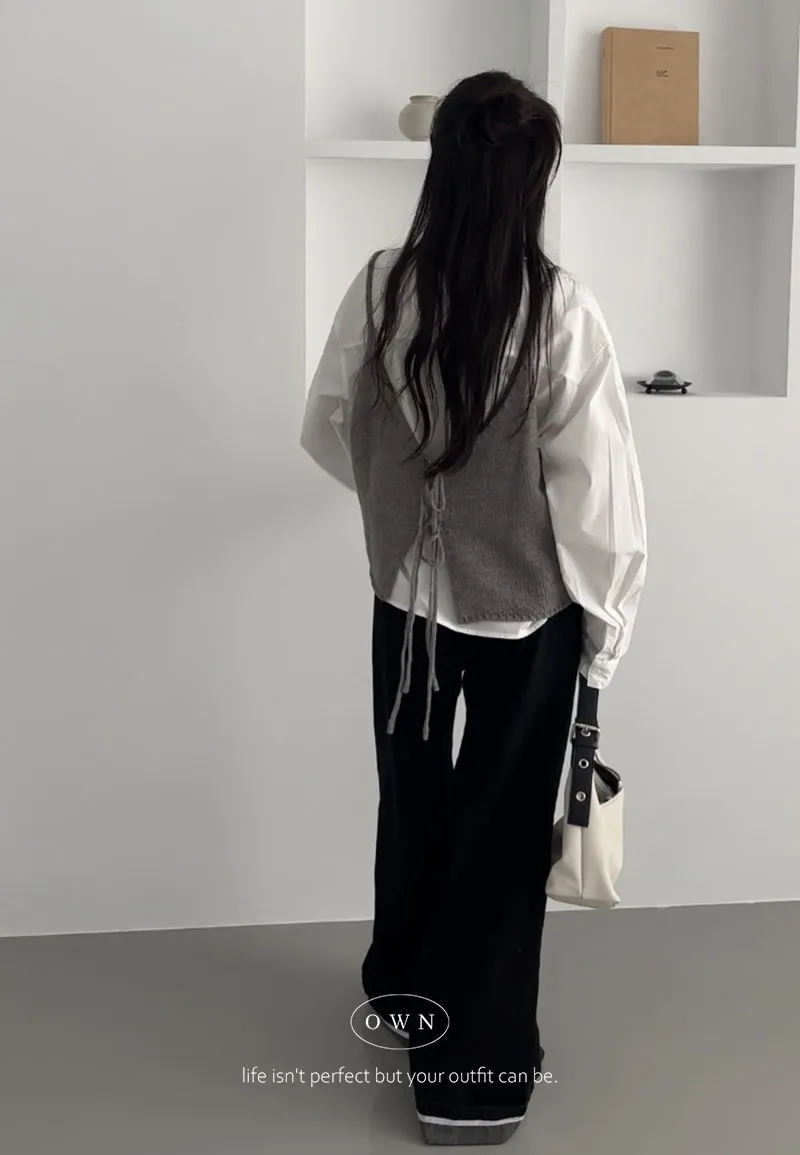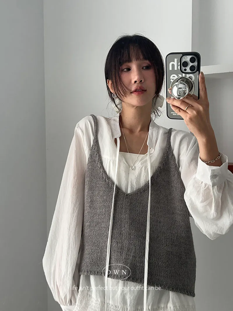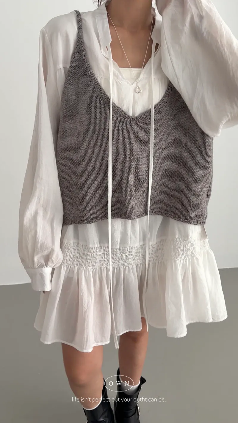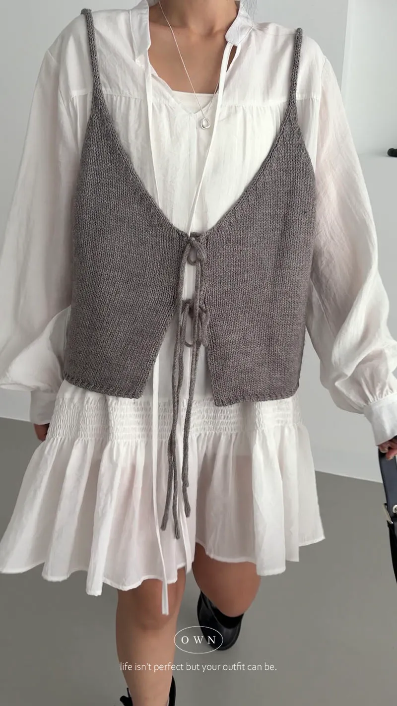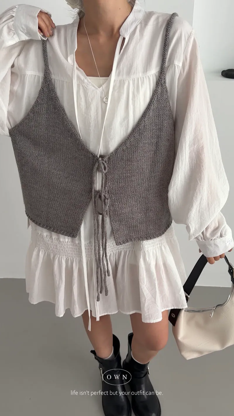 秋日氛圍感 綁帶小立領澎袖洋裝 2colors