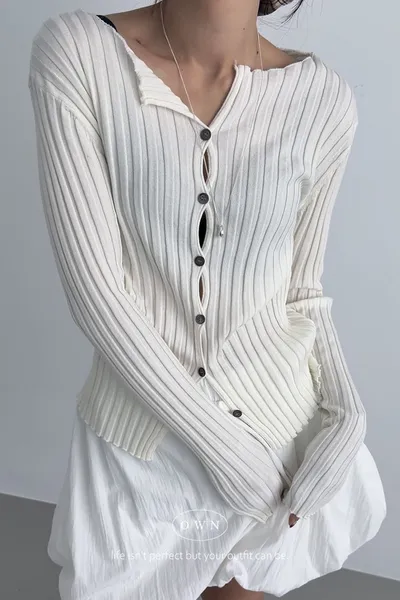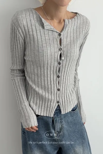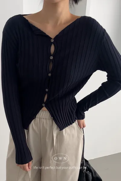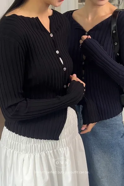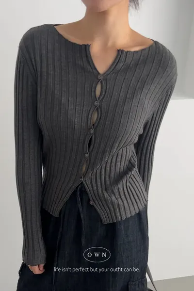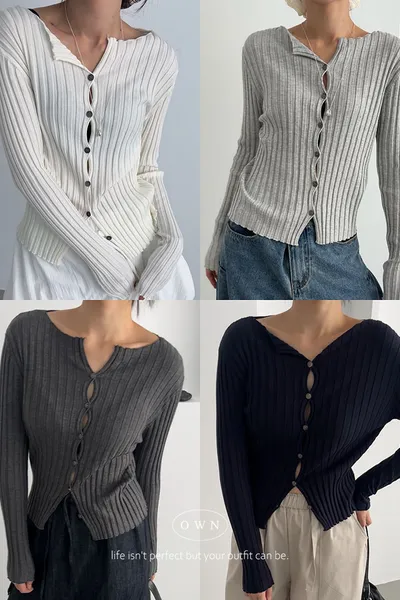 給秋天一點顏色 坑紋開釦針織上衣 5colors