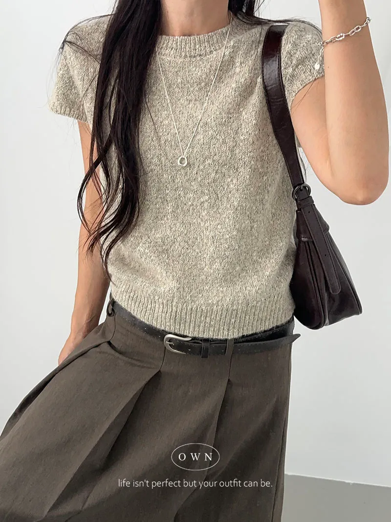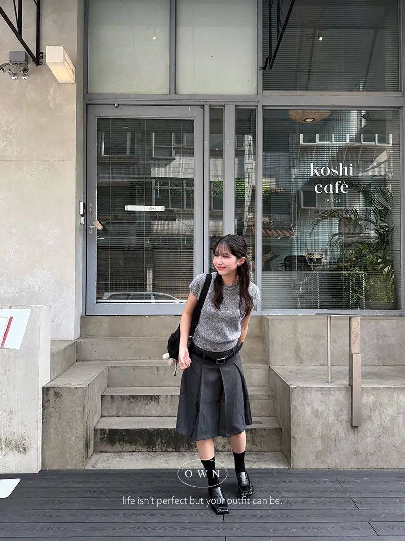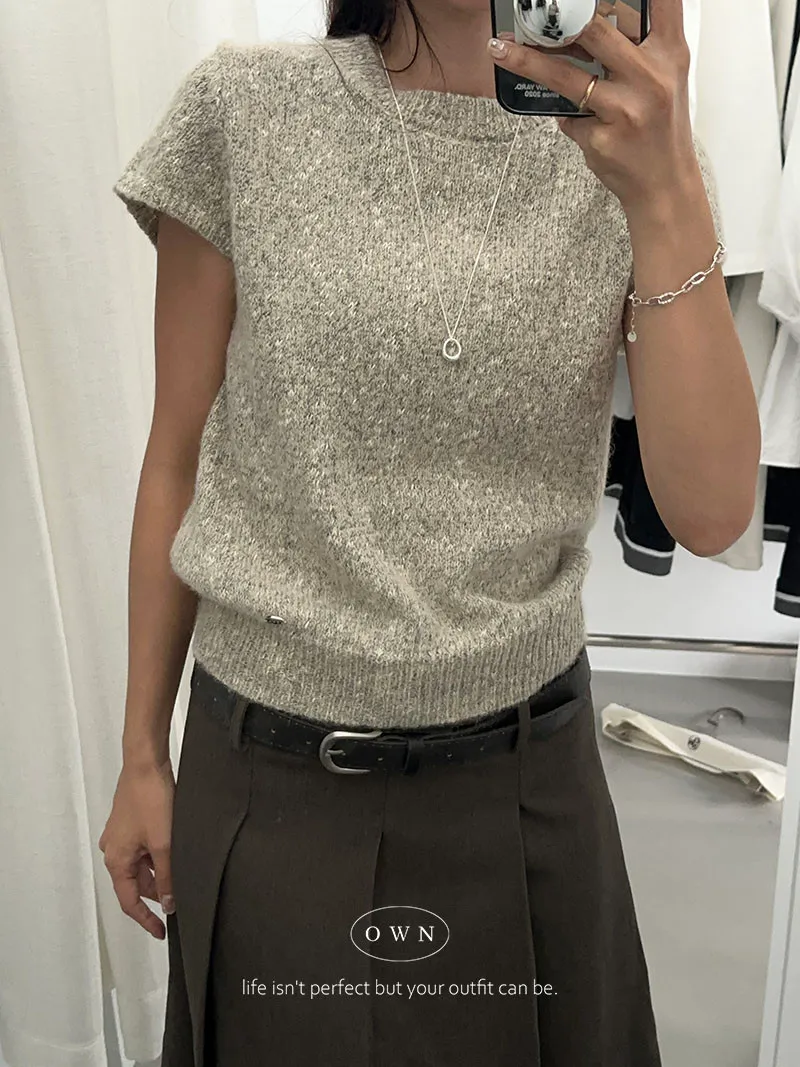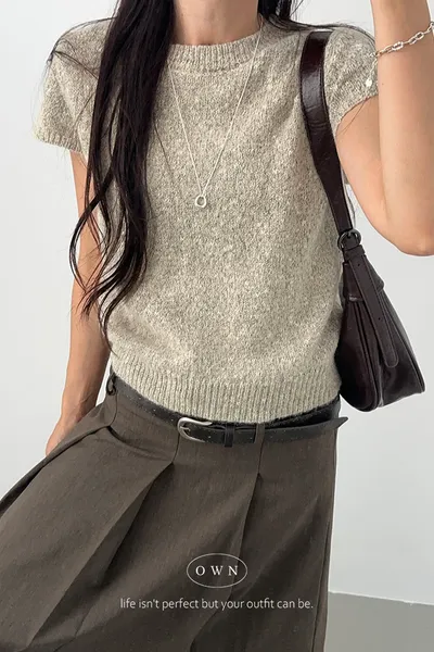 【OWN自訂款】簡約時髦感 混織短袖上衣 2colors