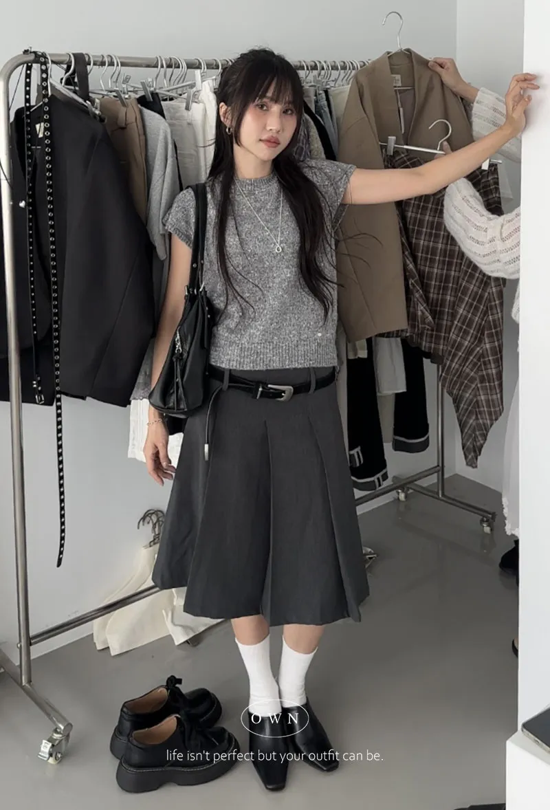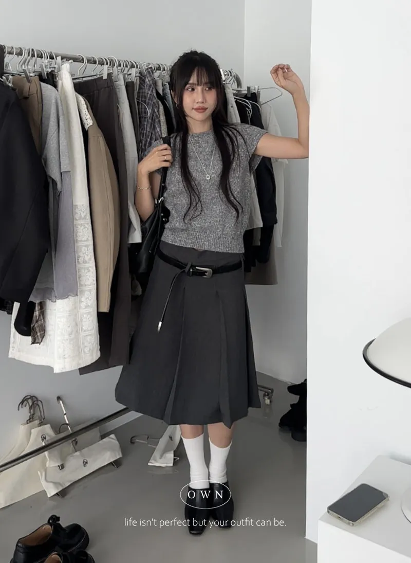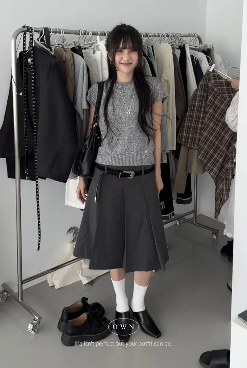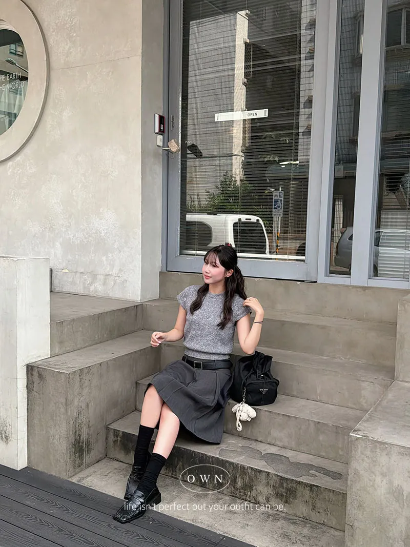 【OWN自訂款】簡約時髦感 混織短袖上衣 2colors