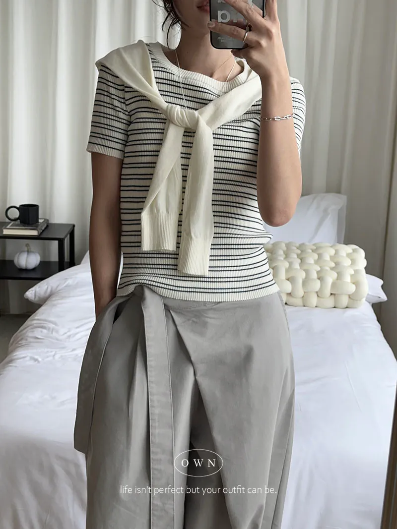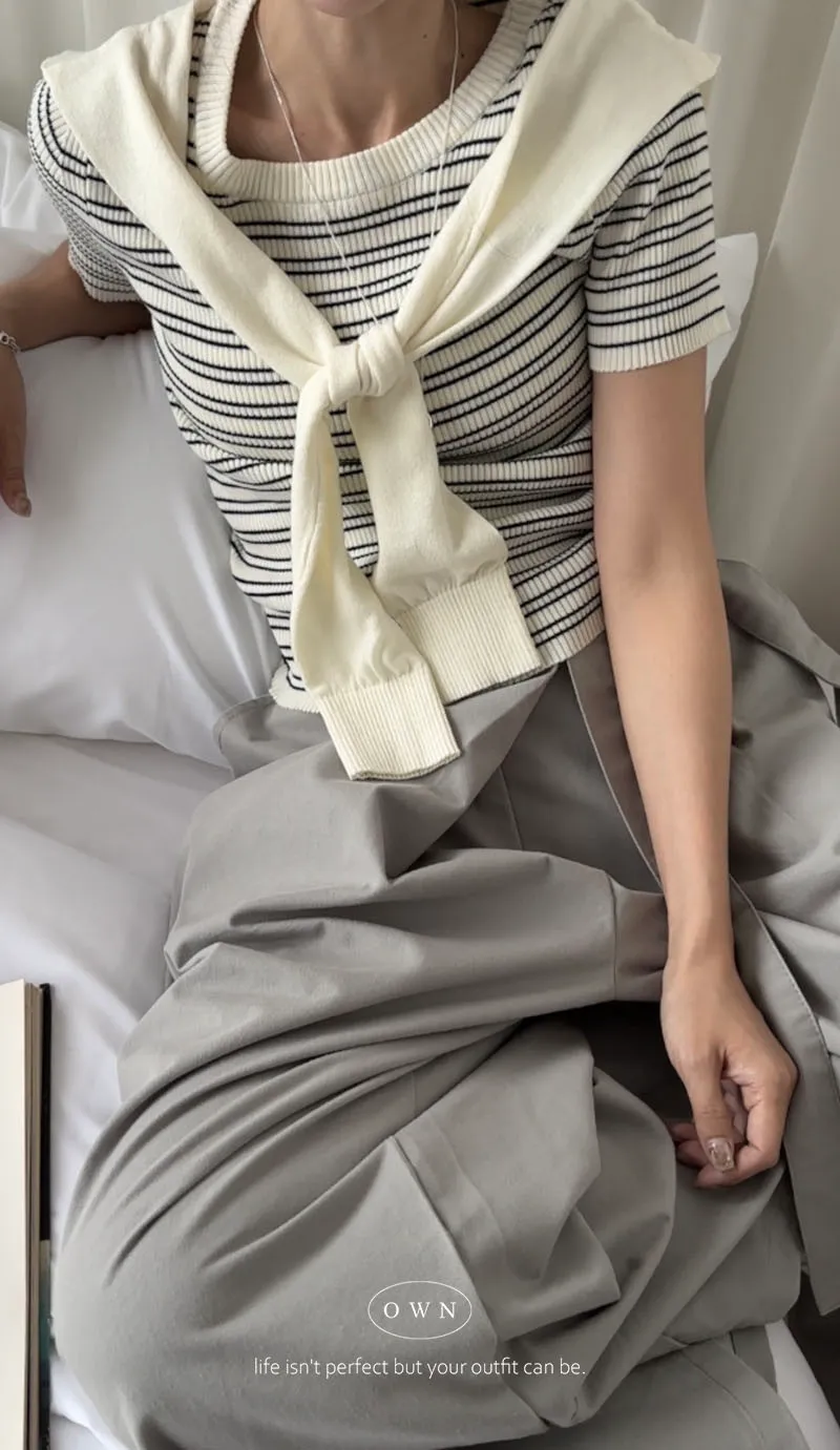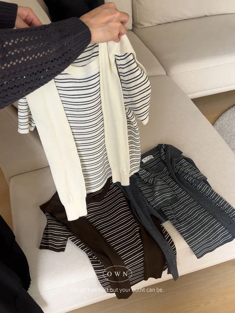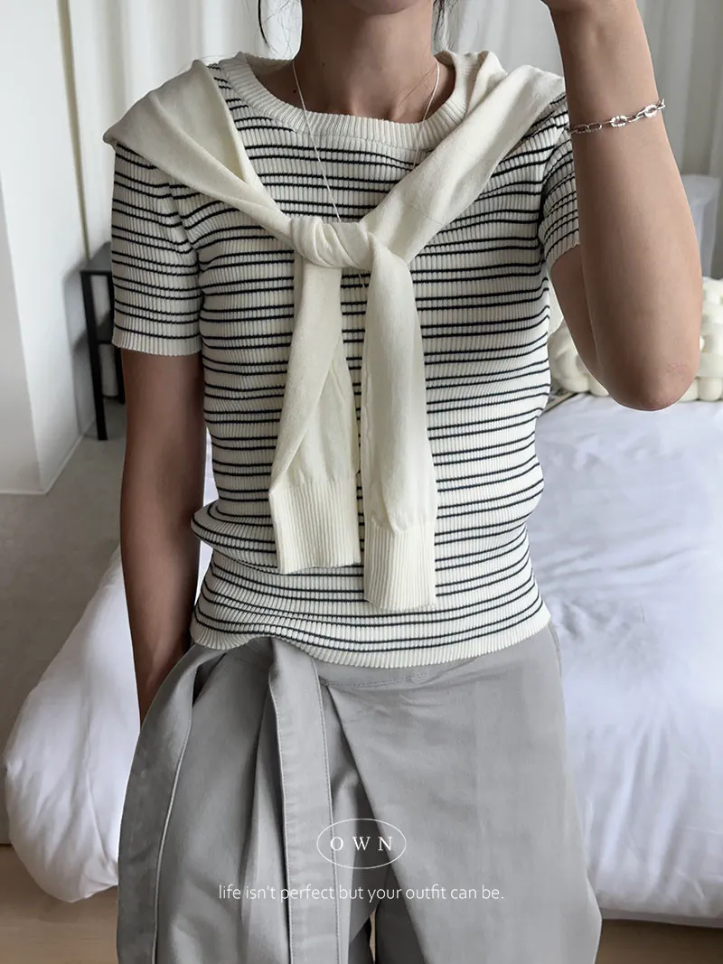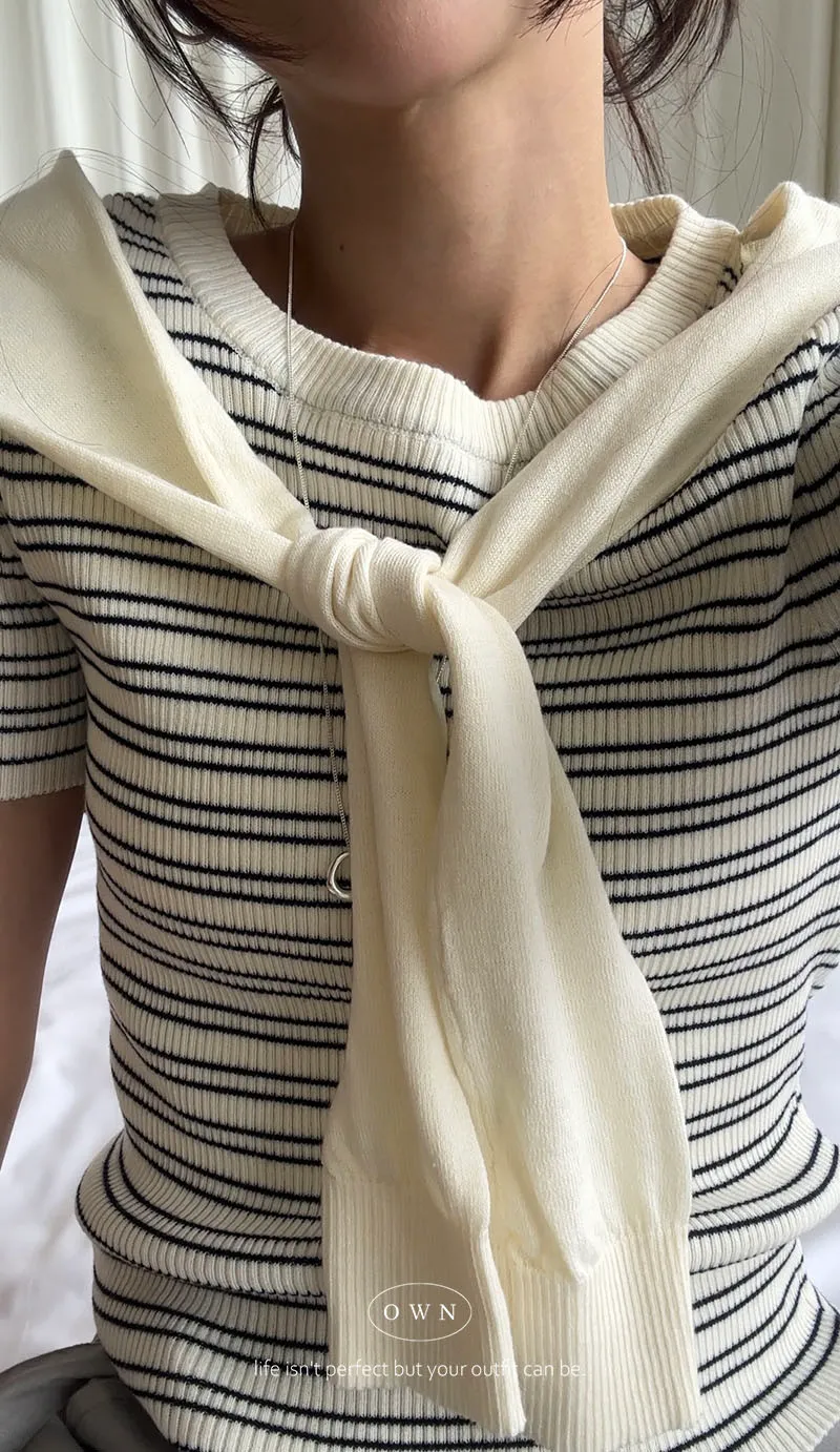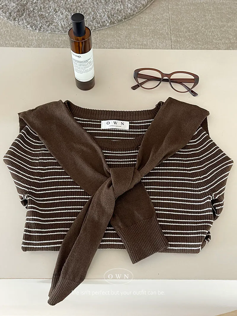 早秋氛圍感 披肩條紋針織上衣 3colors