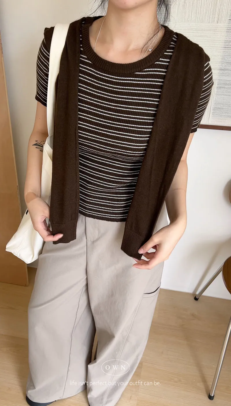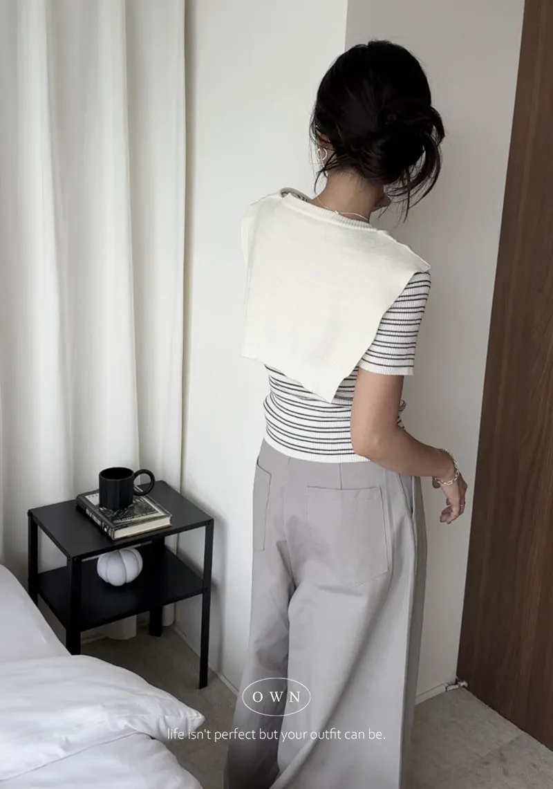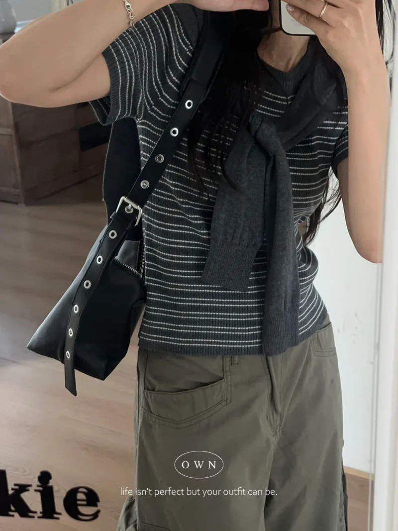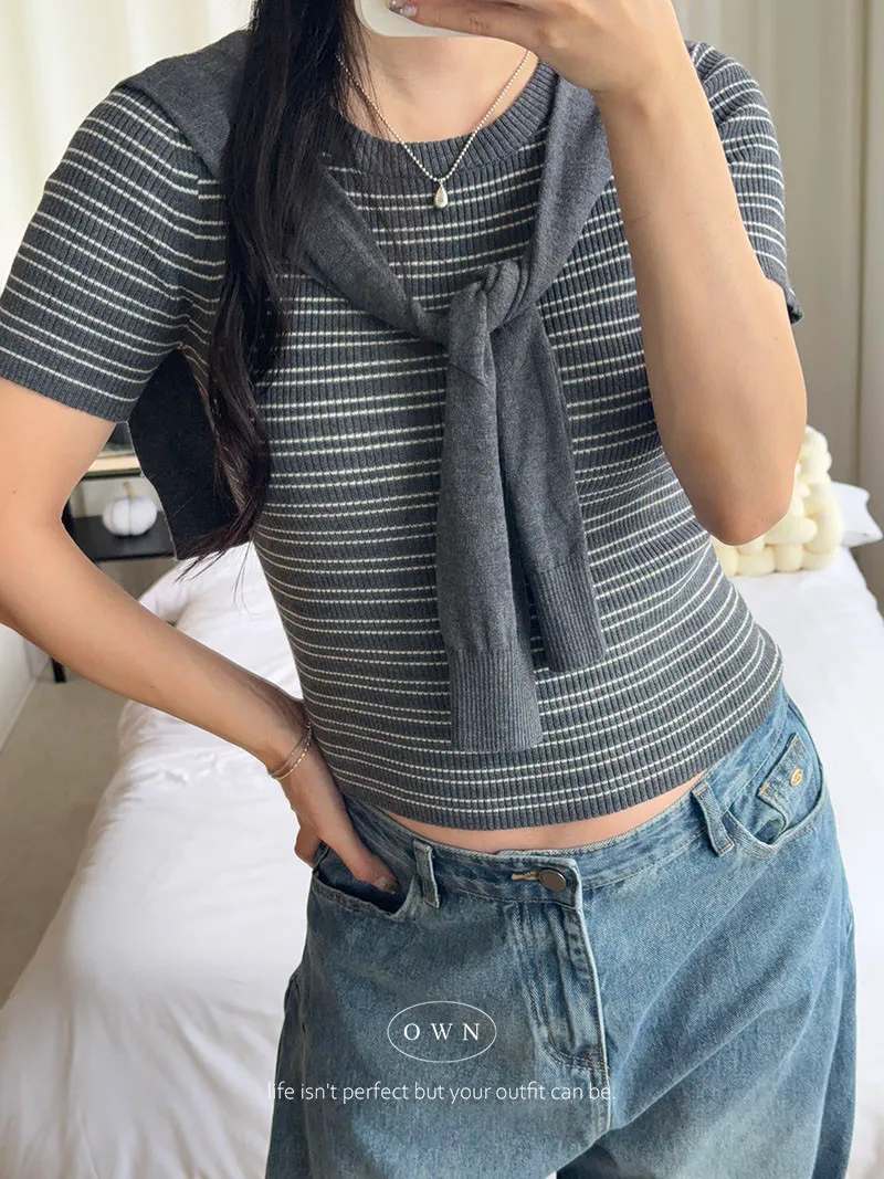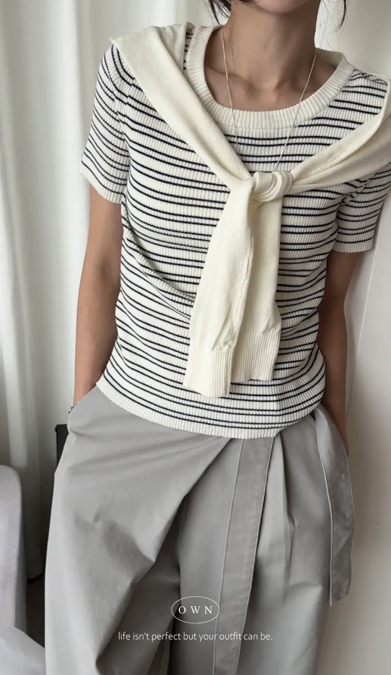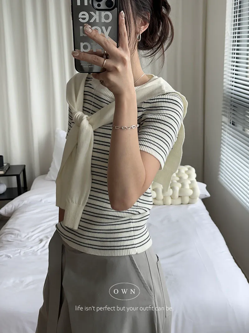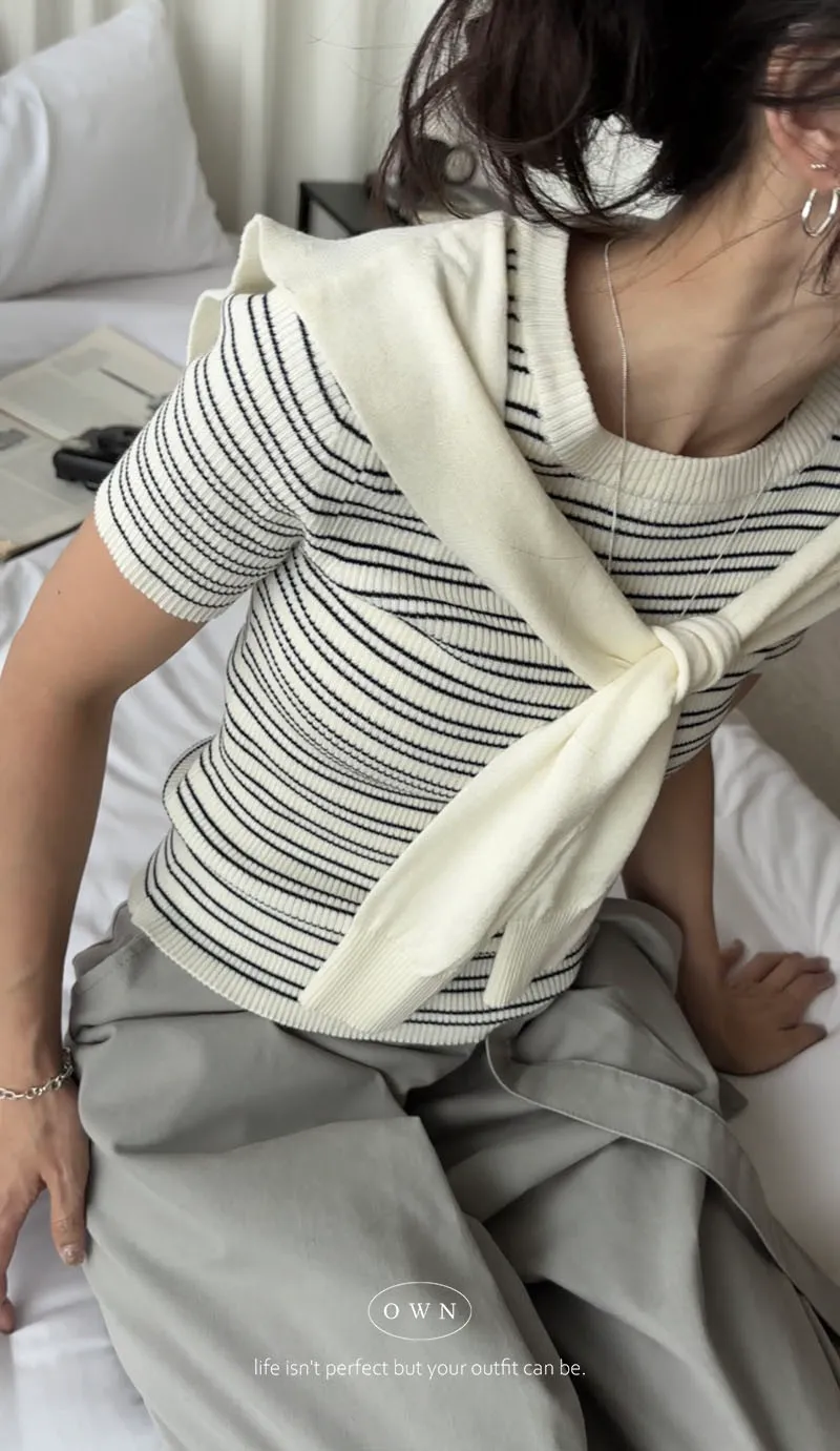 早秋氛圍感 披肩條紋針織上衣 3colors