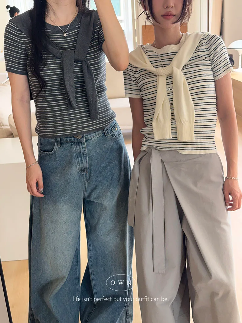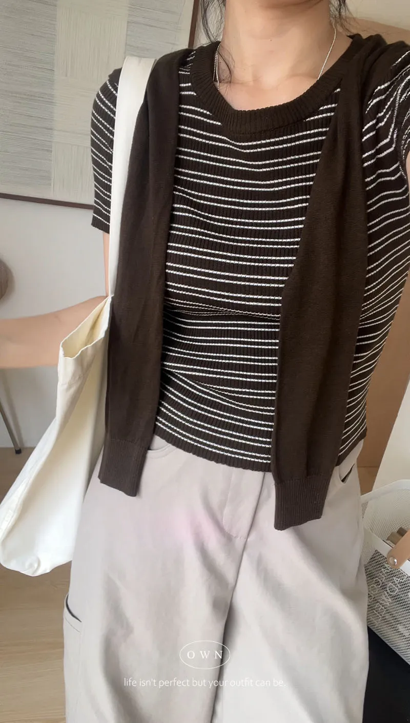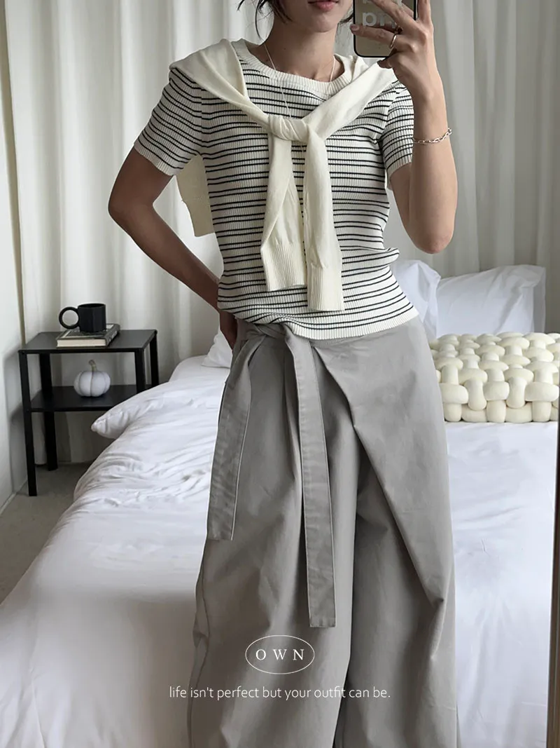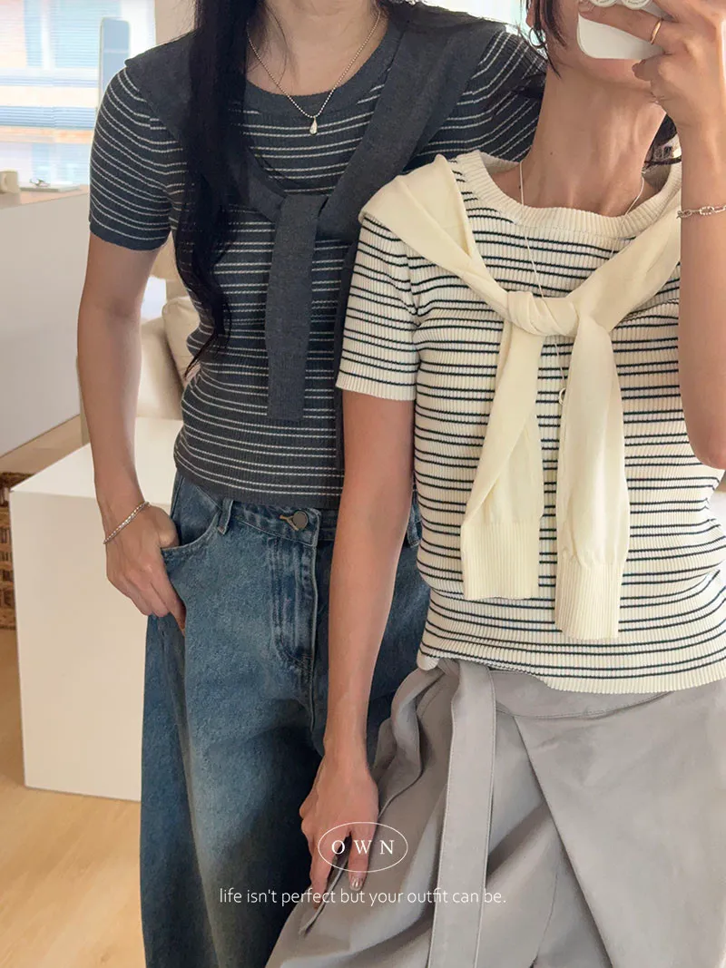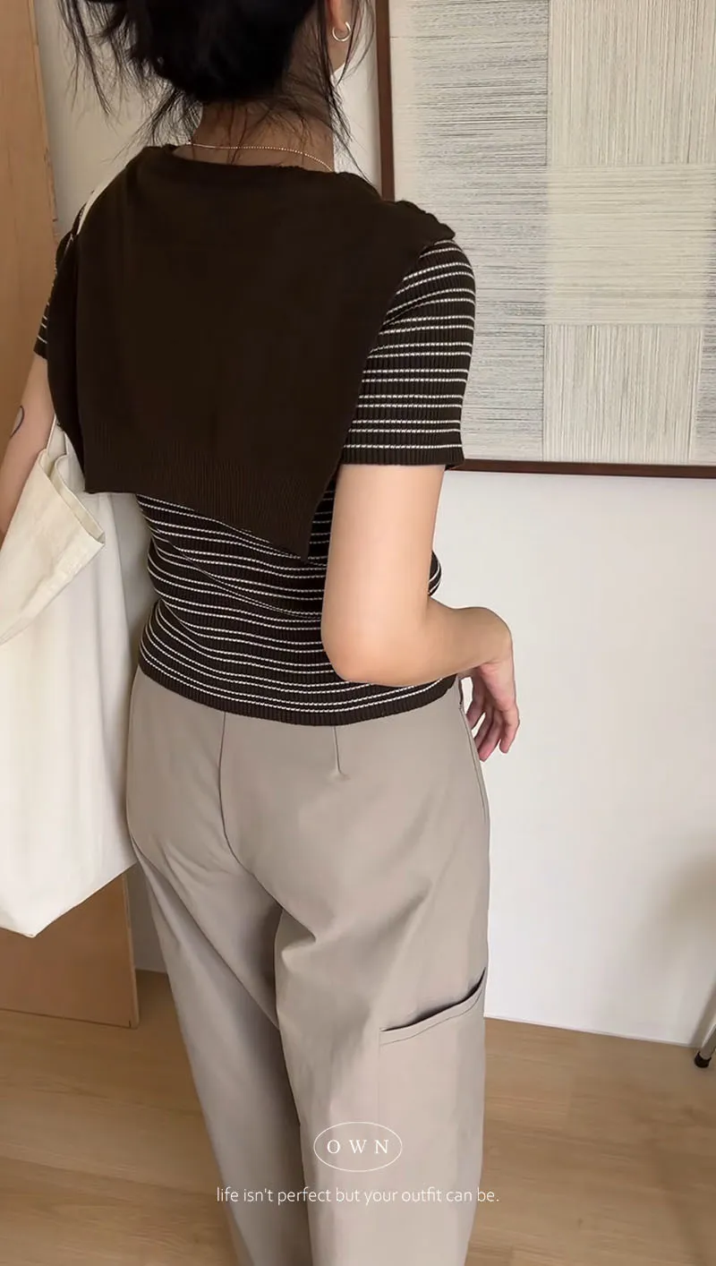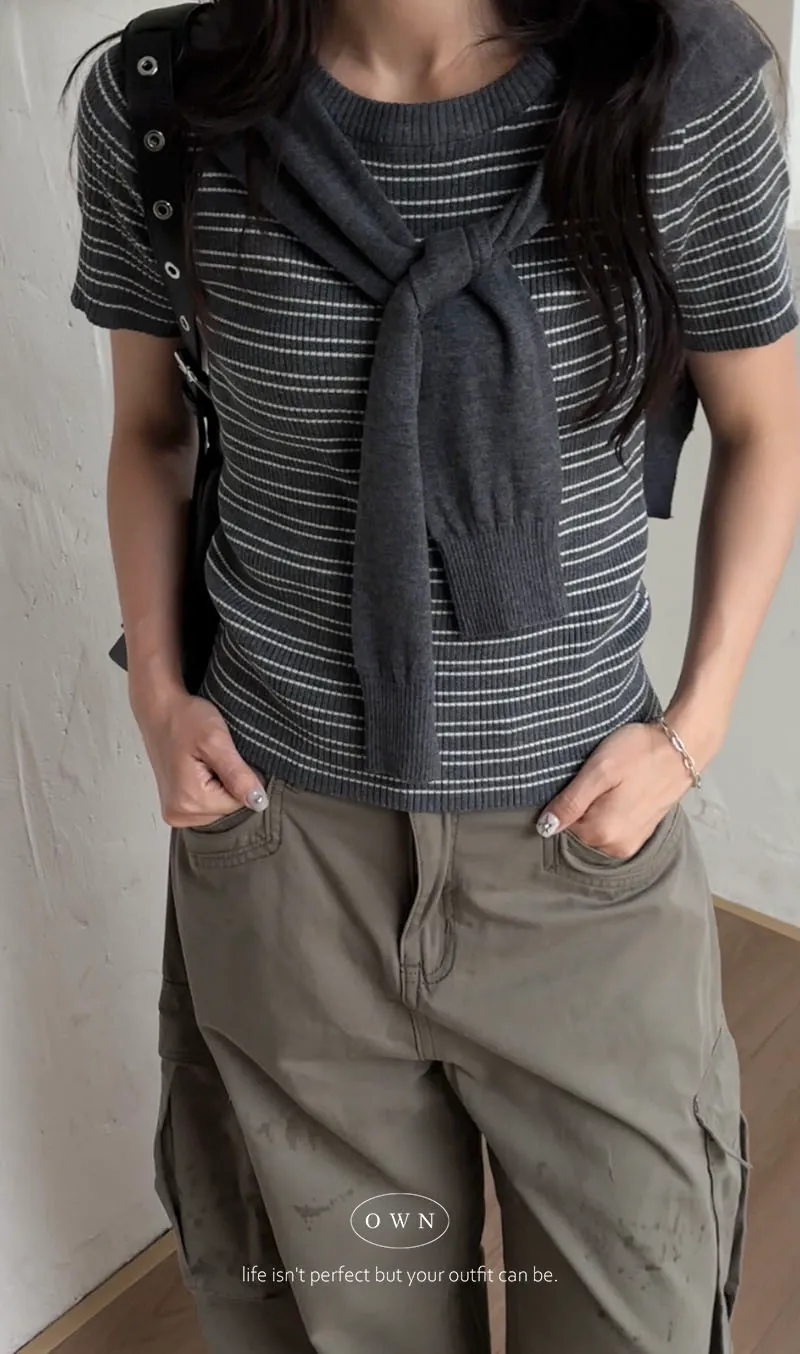 早秋氛圍感 披肩條紋針織上衣 3colors