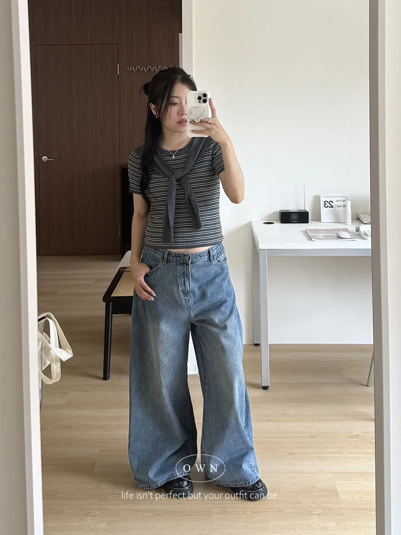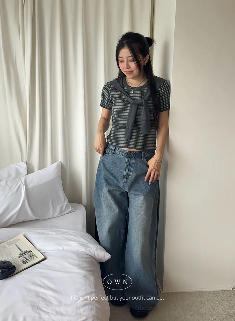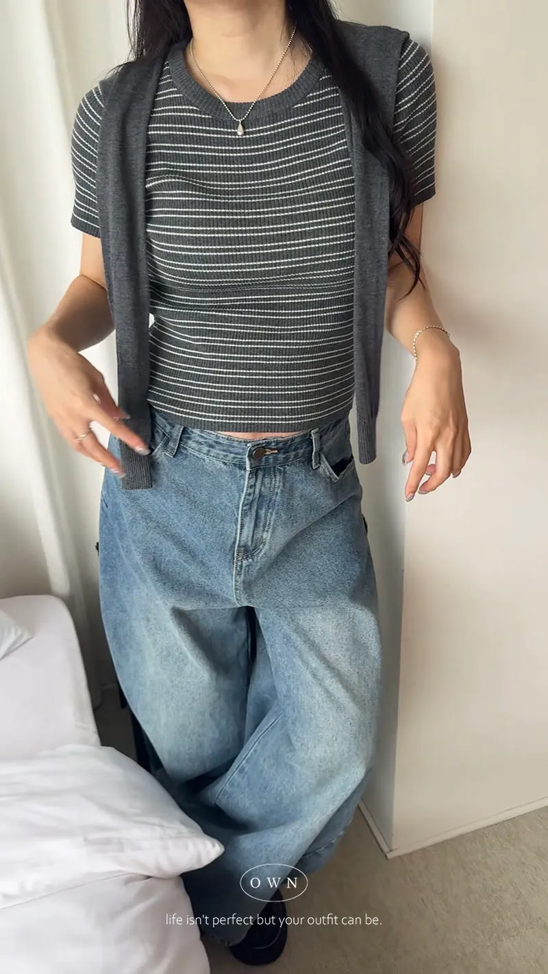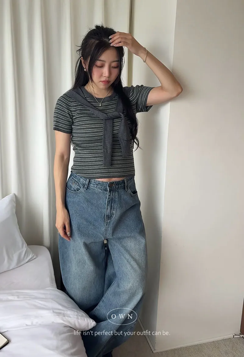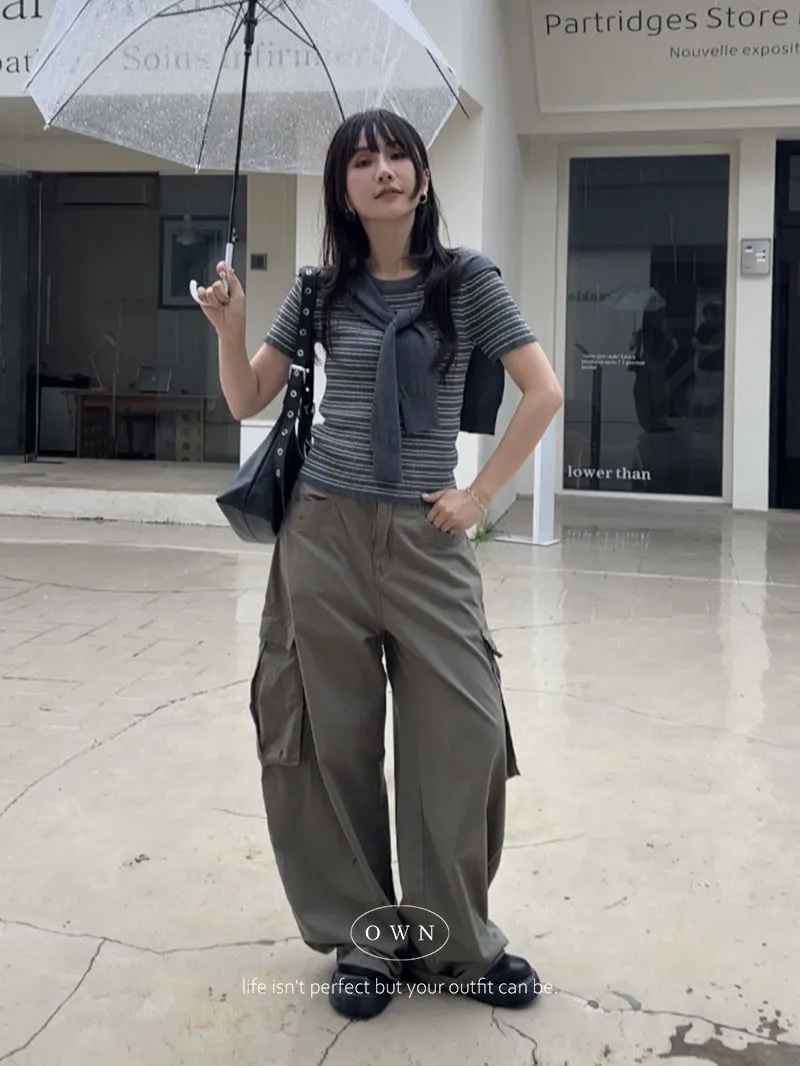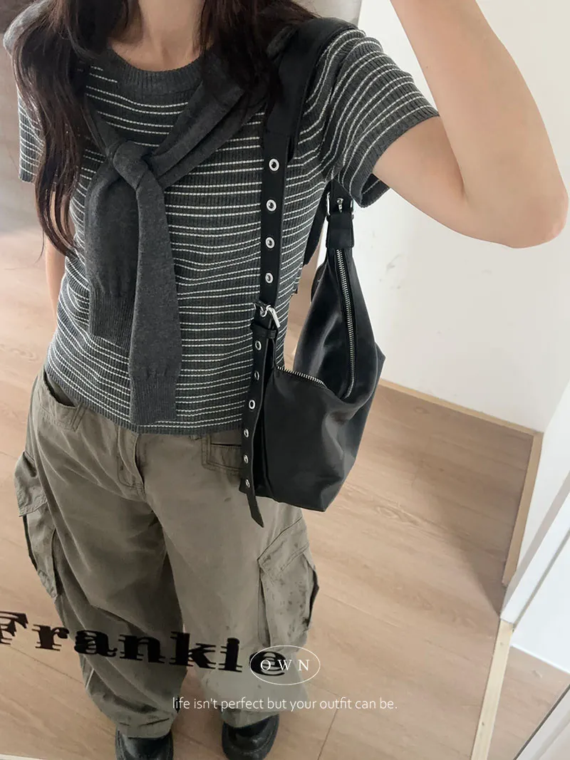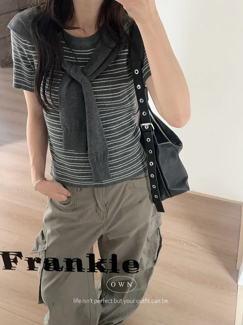 早秋氛圍感 披肩條紋針織上衣 3colors