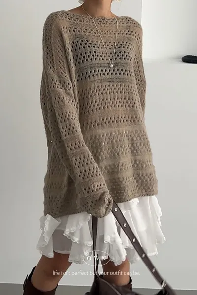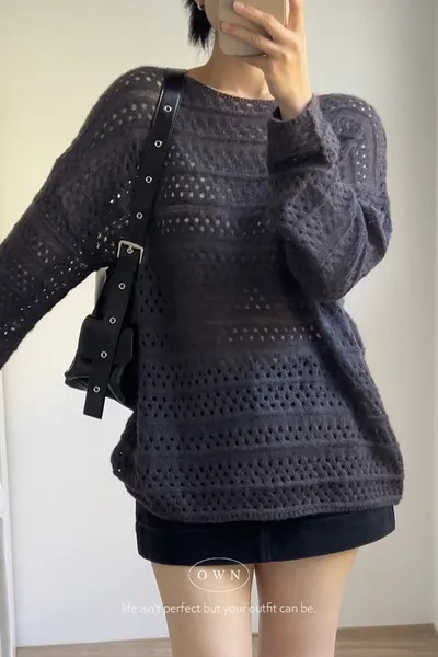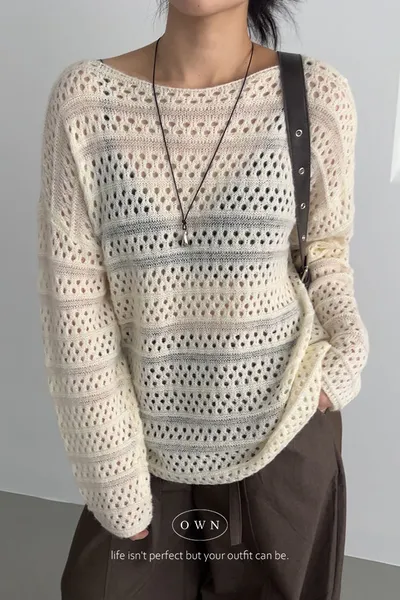 灑滿浪漫 簍空混毛寬袖針織上衣 3colors