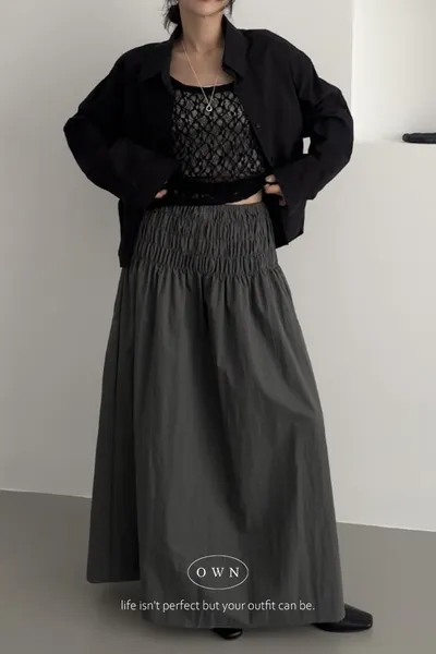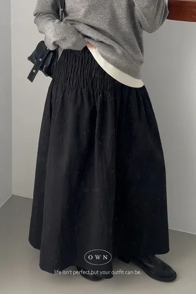 到XXXXL都可以穿!大推!腰節抓皺長裙 3colors