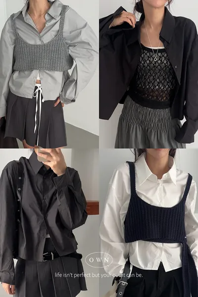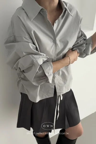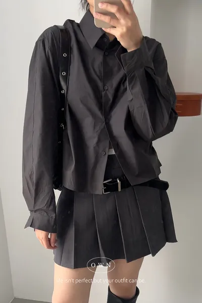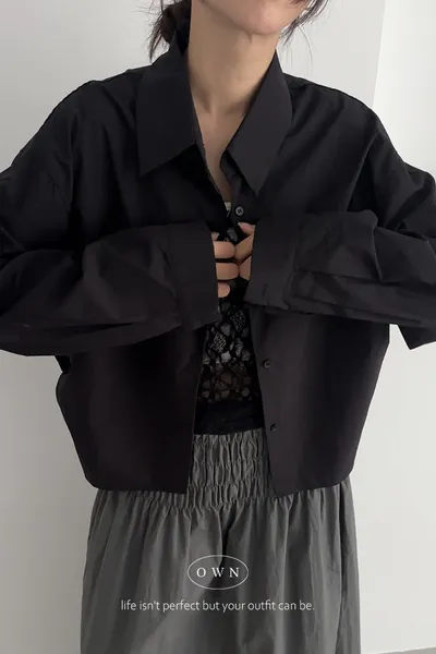 簡單不一般 縮腰短版長袖襯衫 4colors