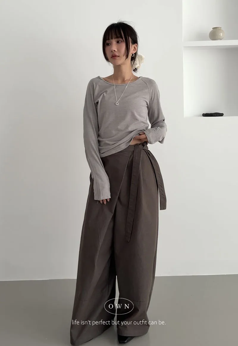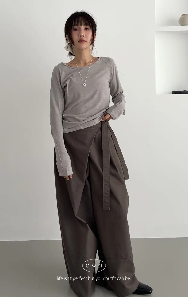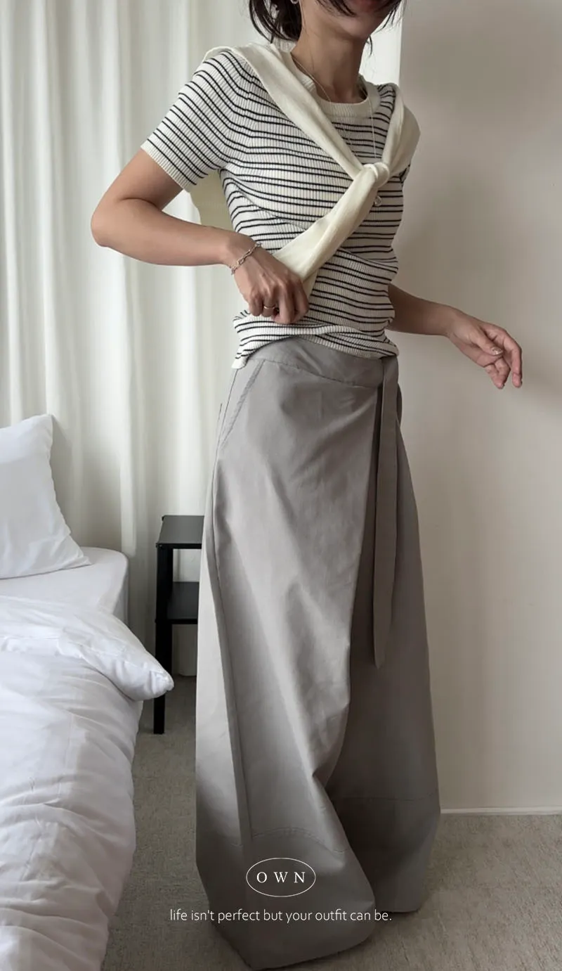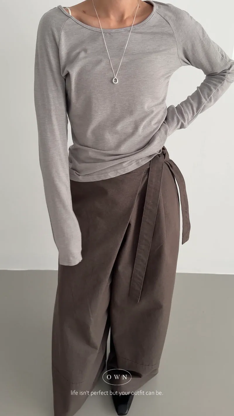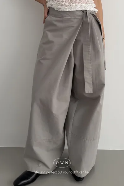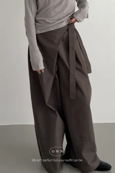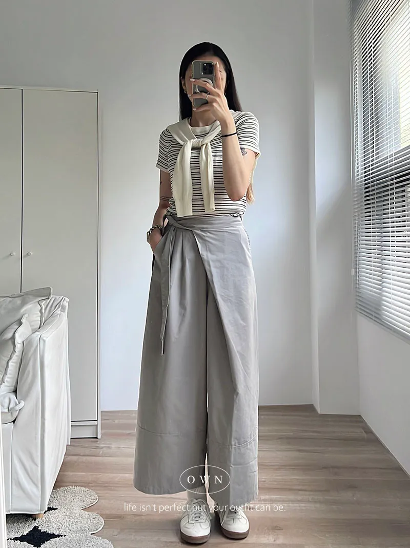 高級隨性 側綁帶彎刀褲 2colors S/M