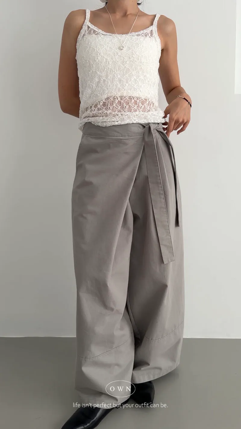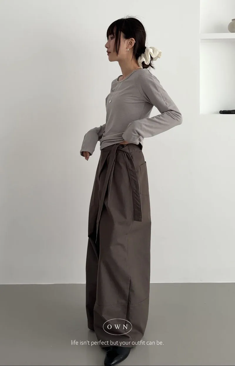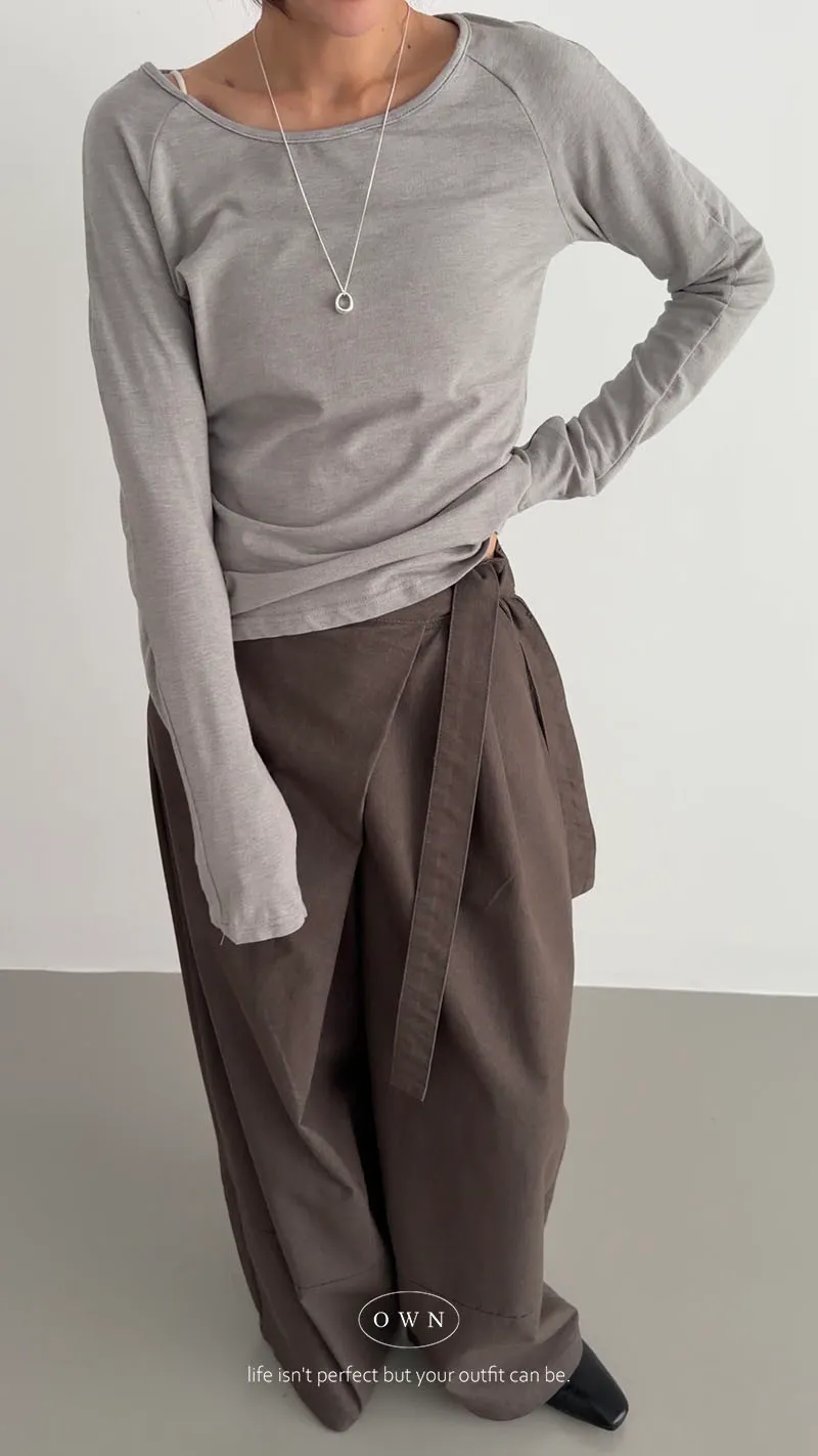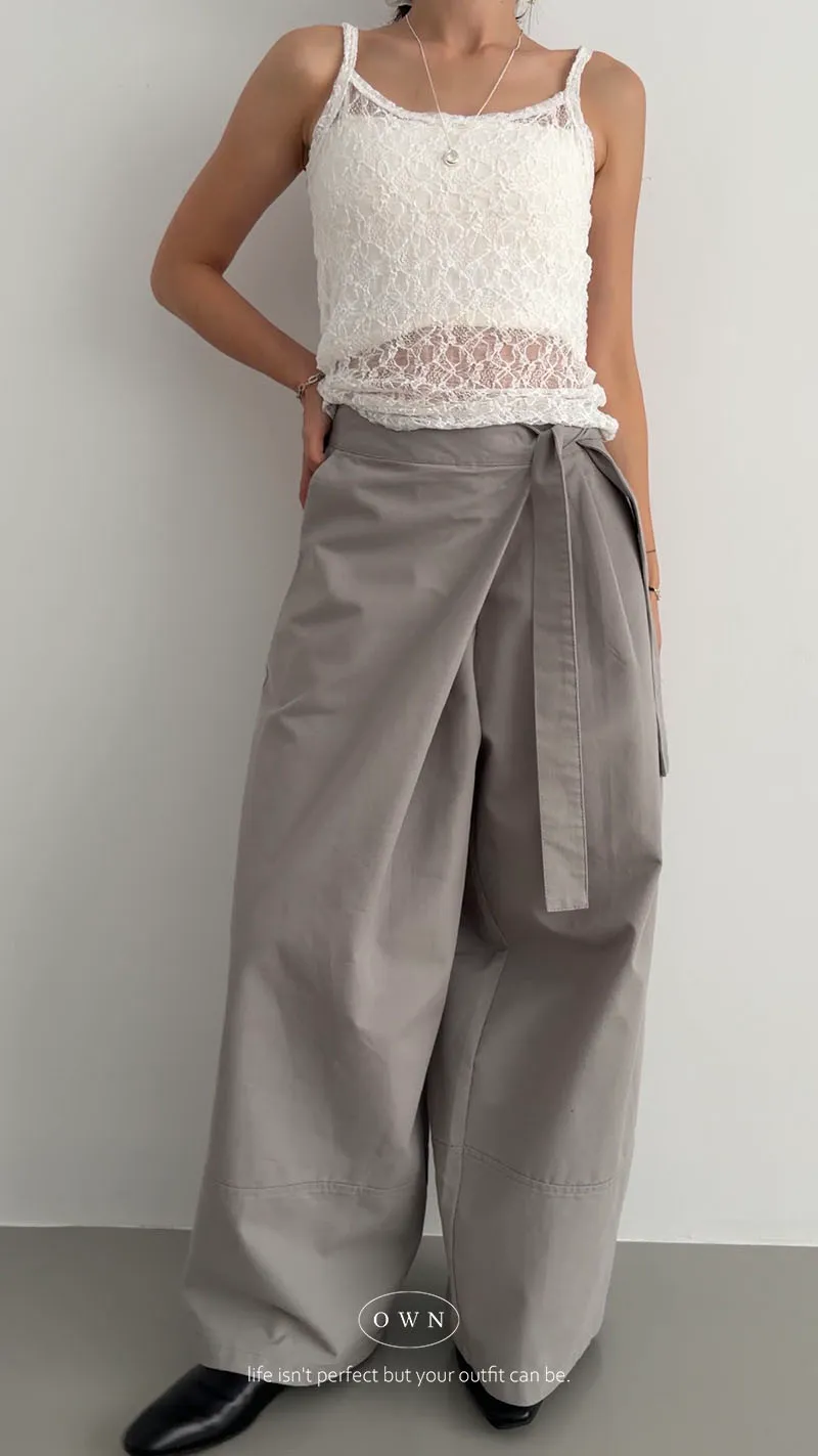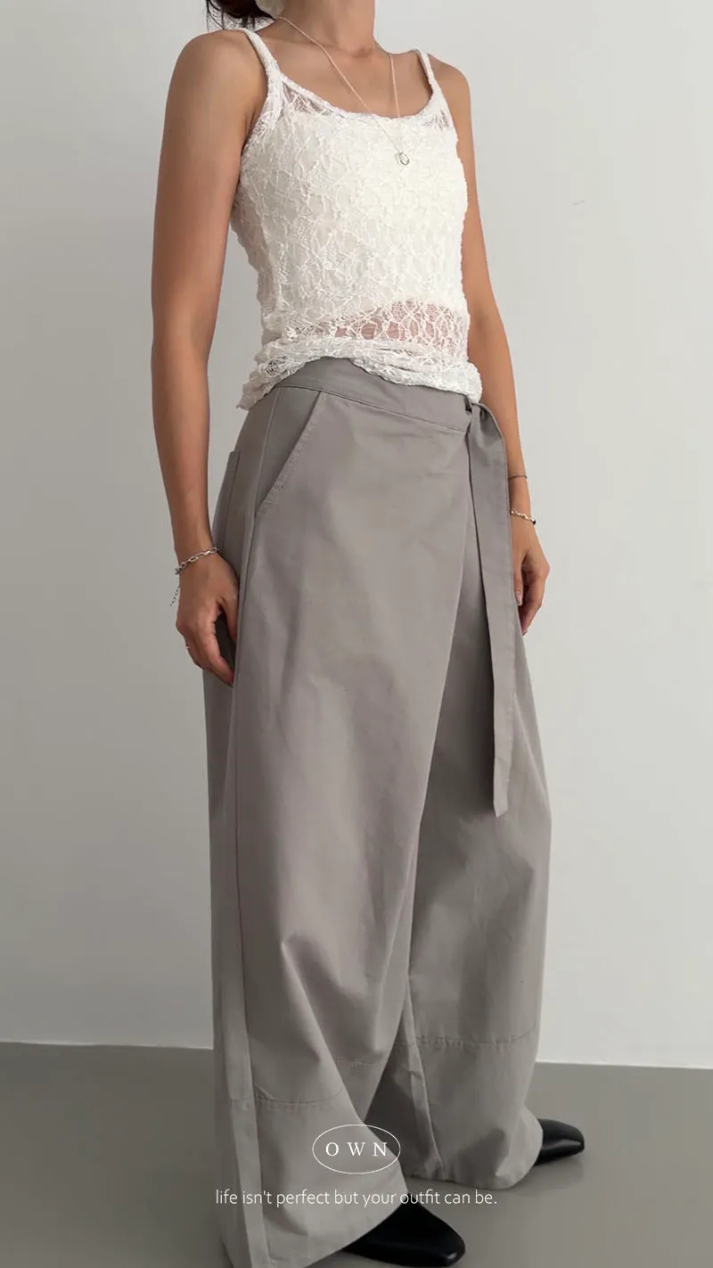 高級隨性 側綁帶彎刀褲 2colors S/M