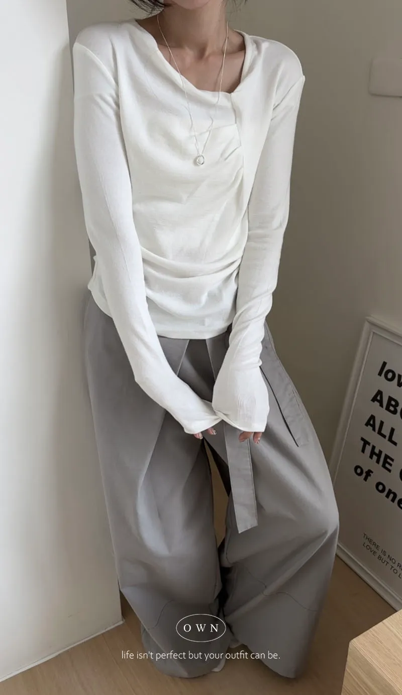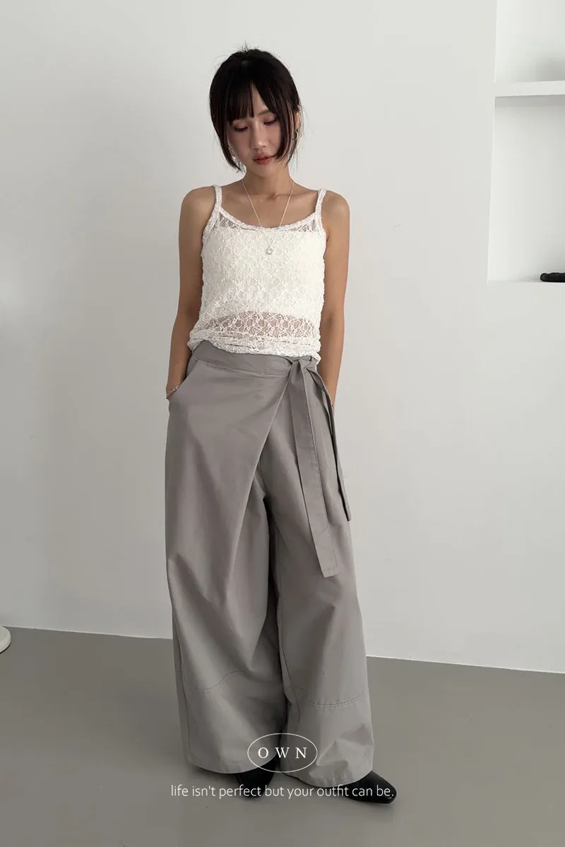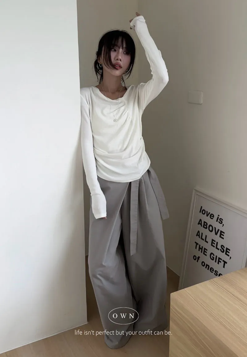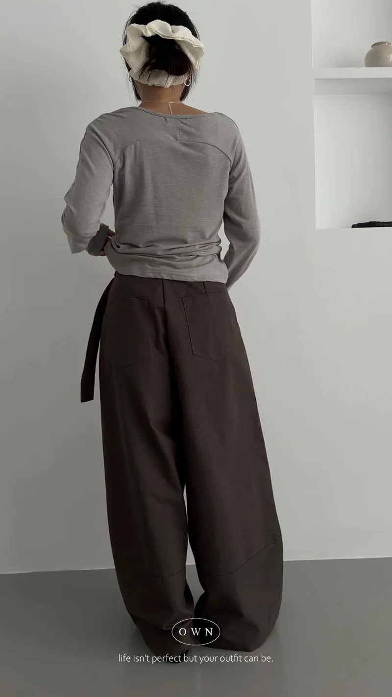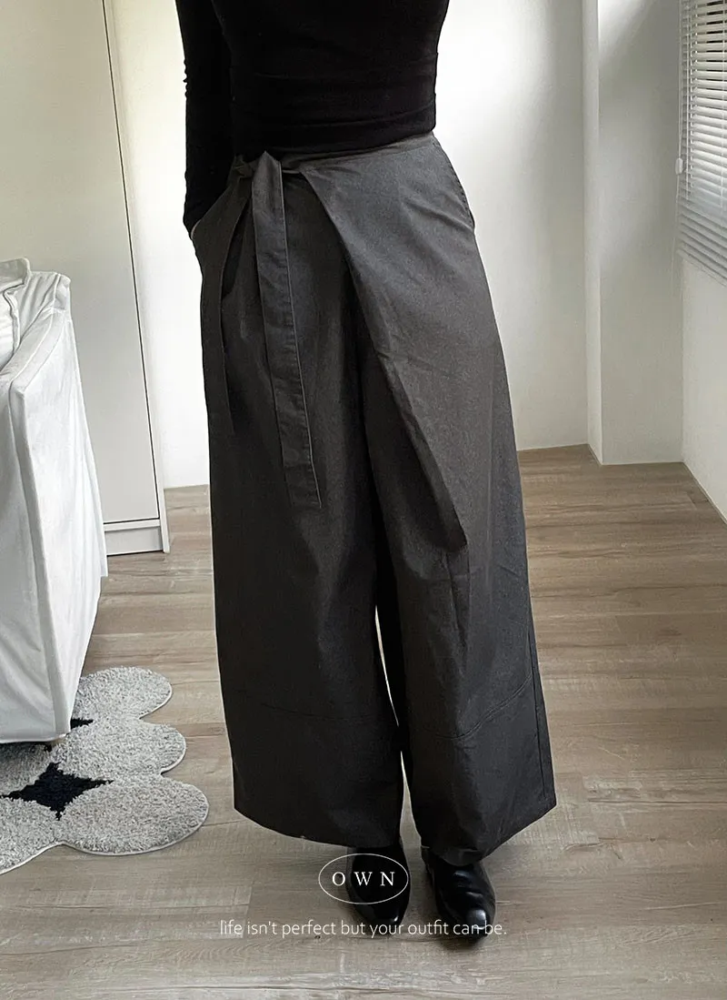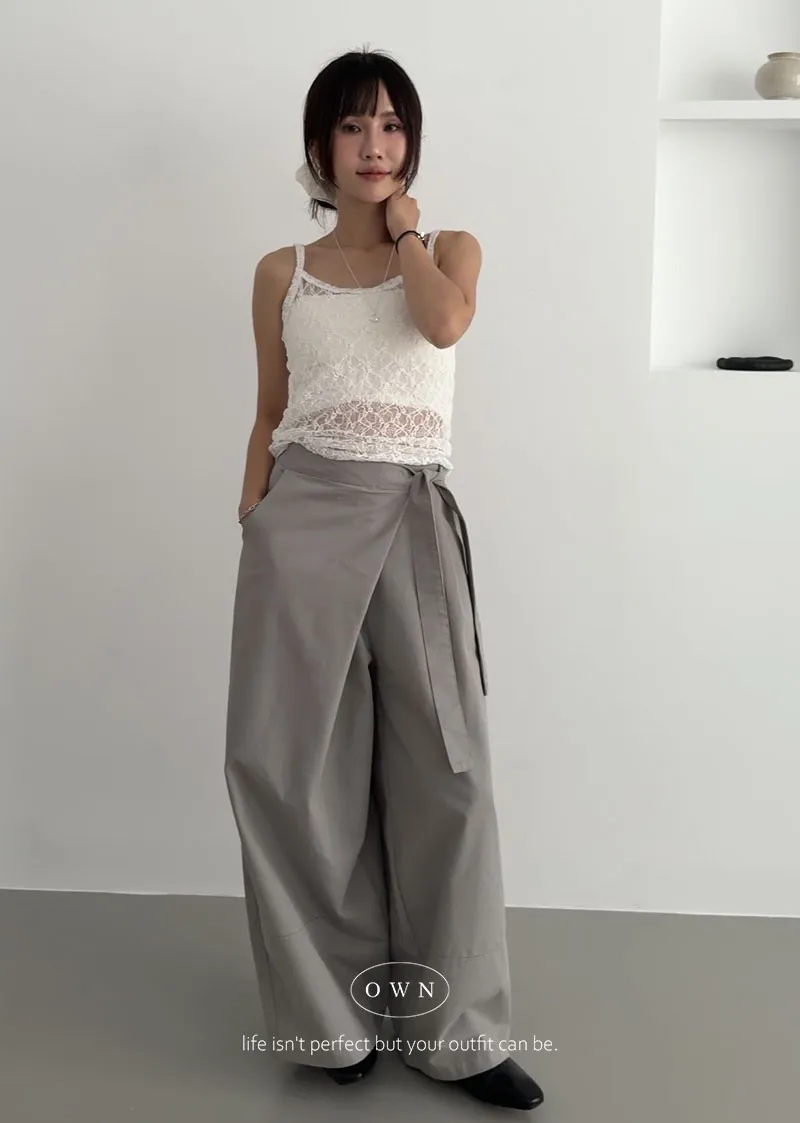 高級隨性 側綁帶彎刀褲 2colors S/M