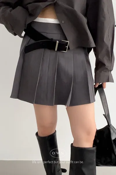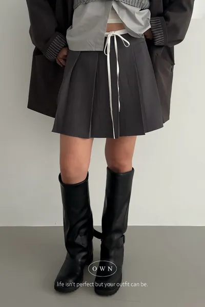 減齡學院風 撞色腰頭綁帶百褶短裙 S/M/L