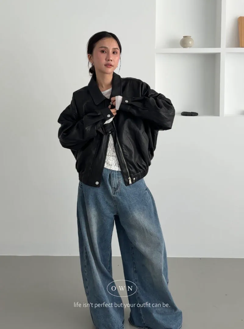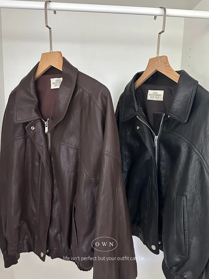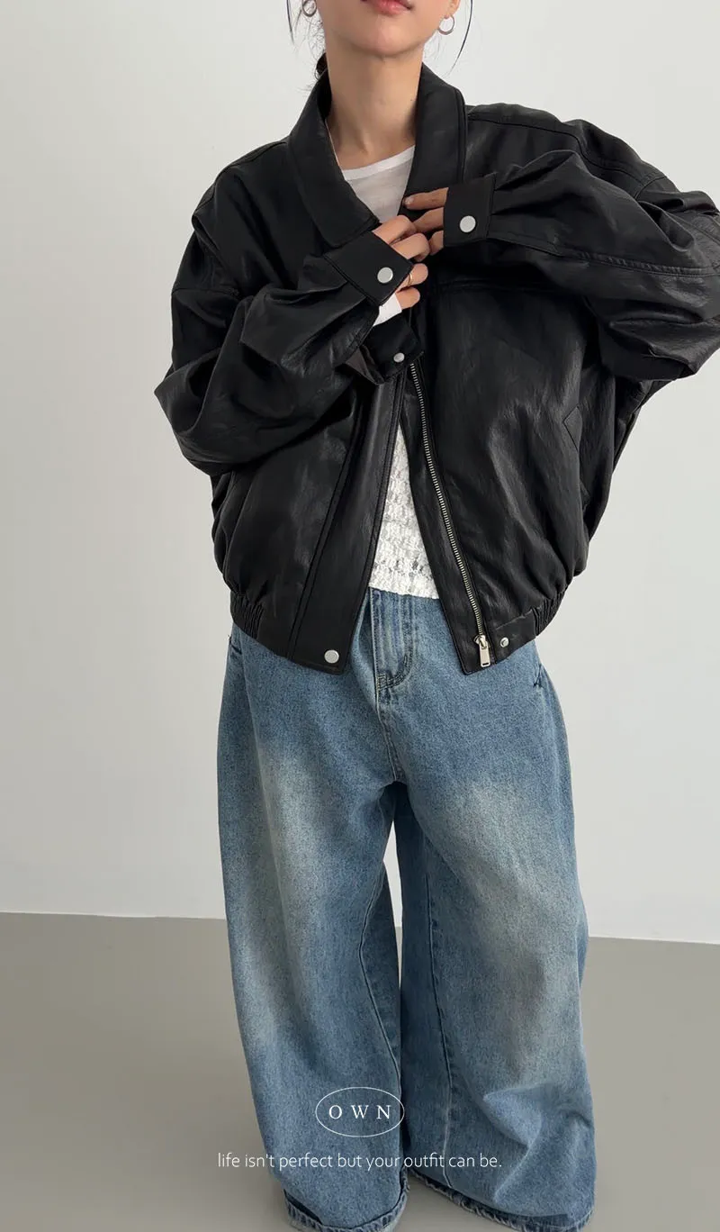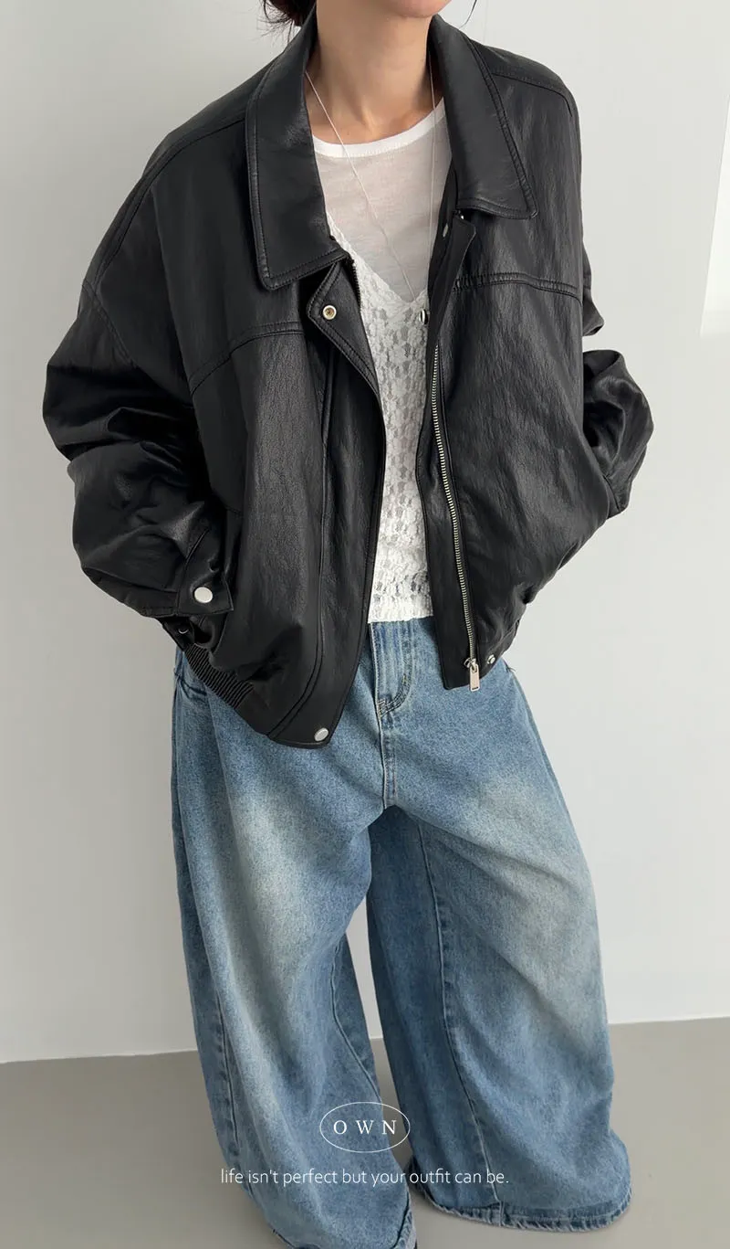 恣意隨性 微短版皮夾克外套 2colors