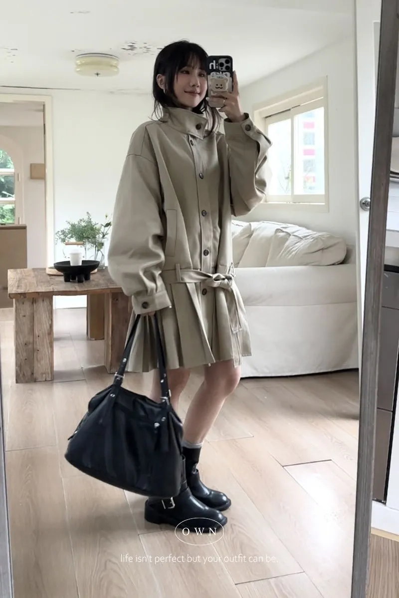 秋天怎麼可以沒有這件美瘋的風衣裙