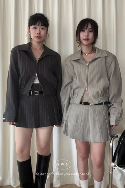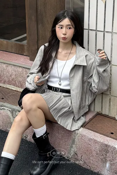 簡約又率性 夾克外套+百褶裙SET(附皮帶) 2colors S/M