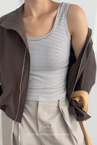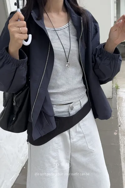 高cp的簡約鬆弛 條紋背心+小立領風衣外套SET 3colors