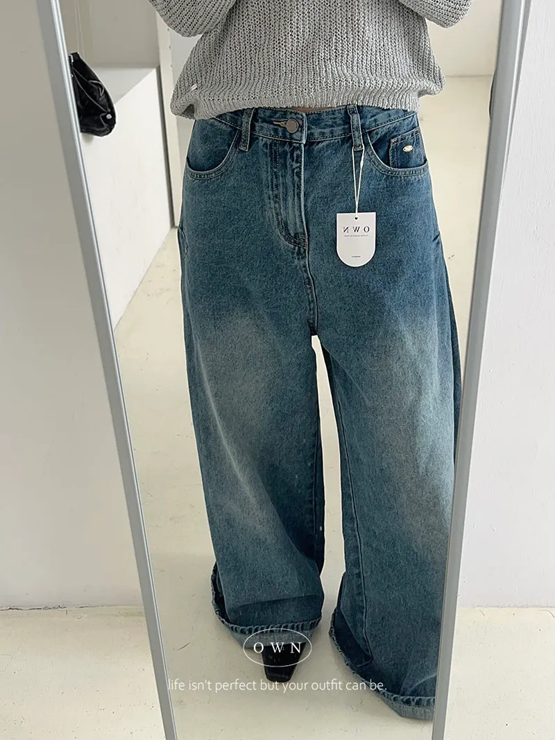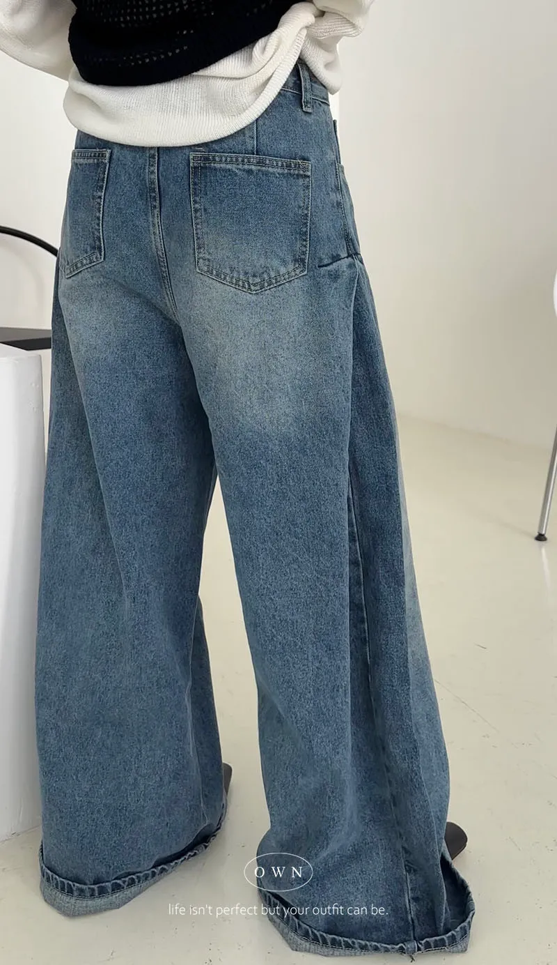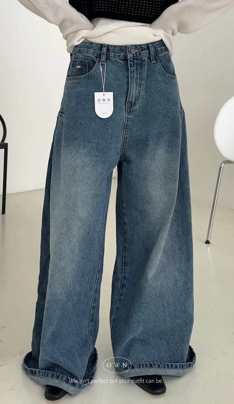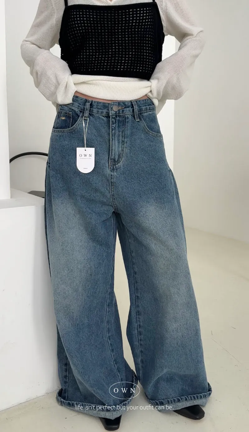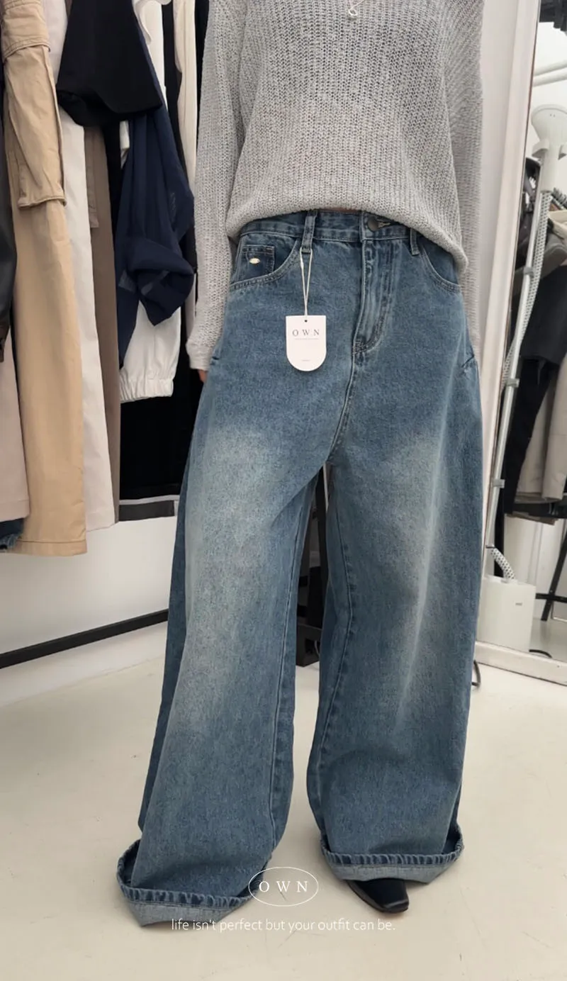 【OWN自訂款】穿上就是人生大片 刷色牛仔落地寬褲 S/M/L