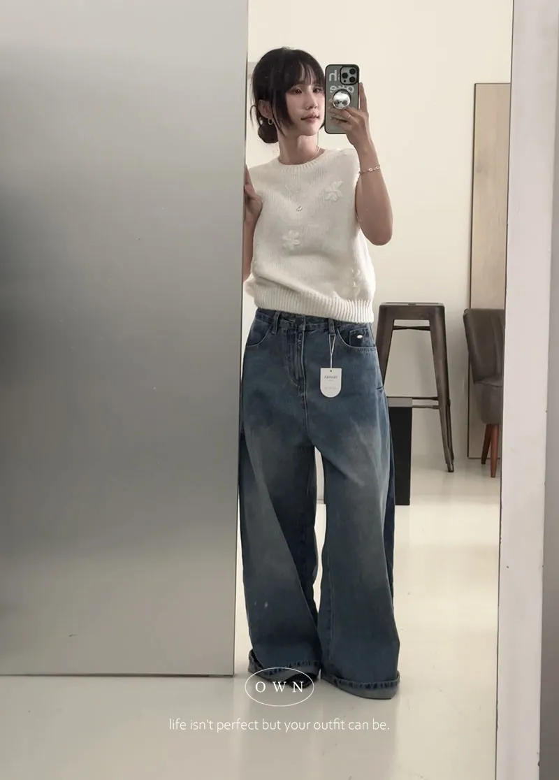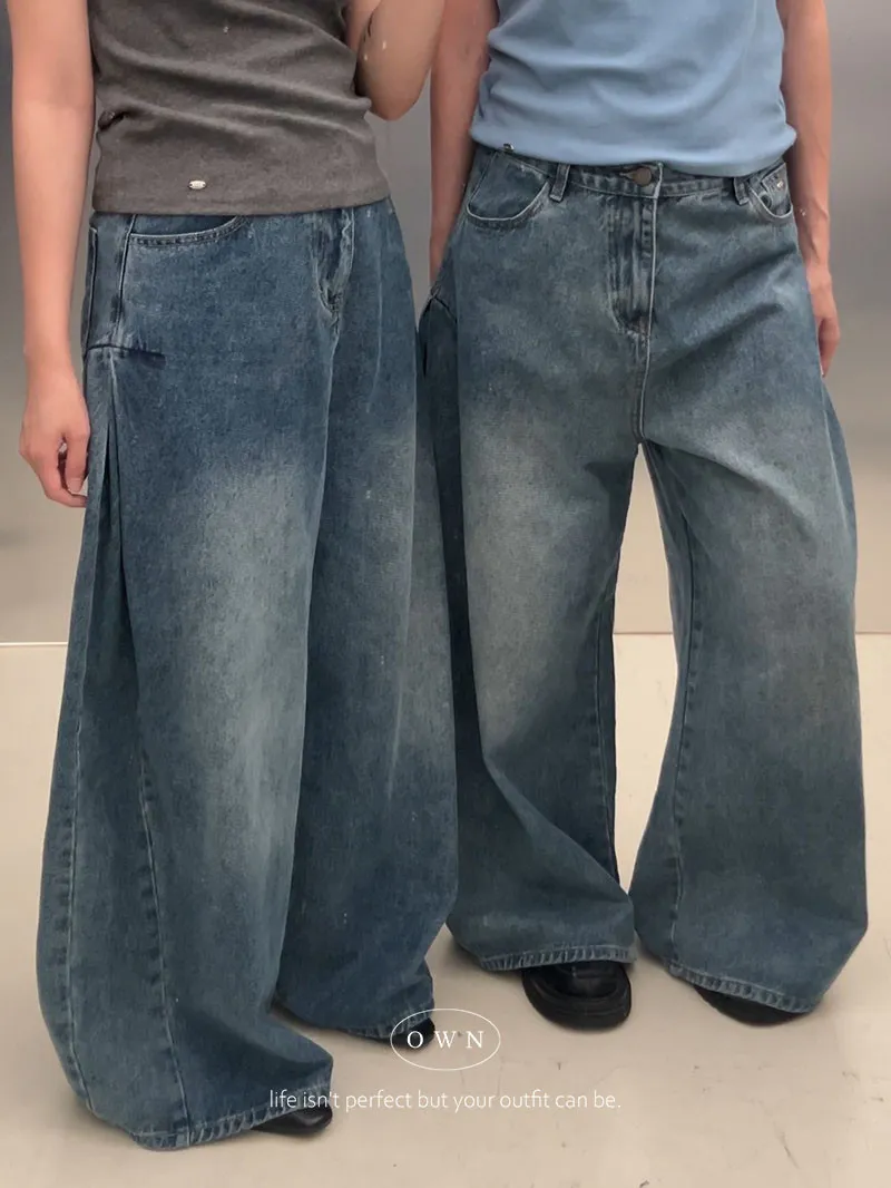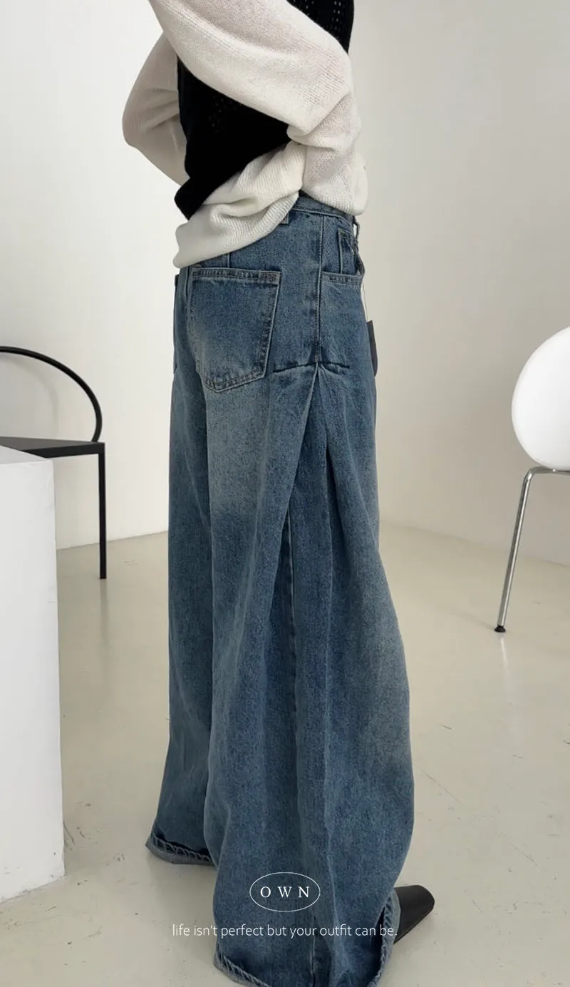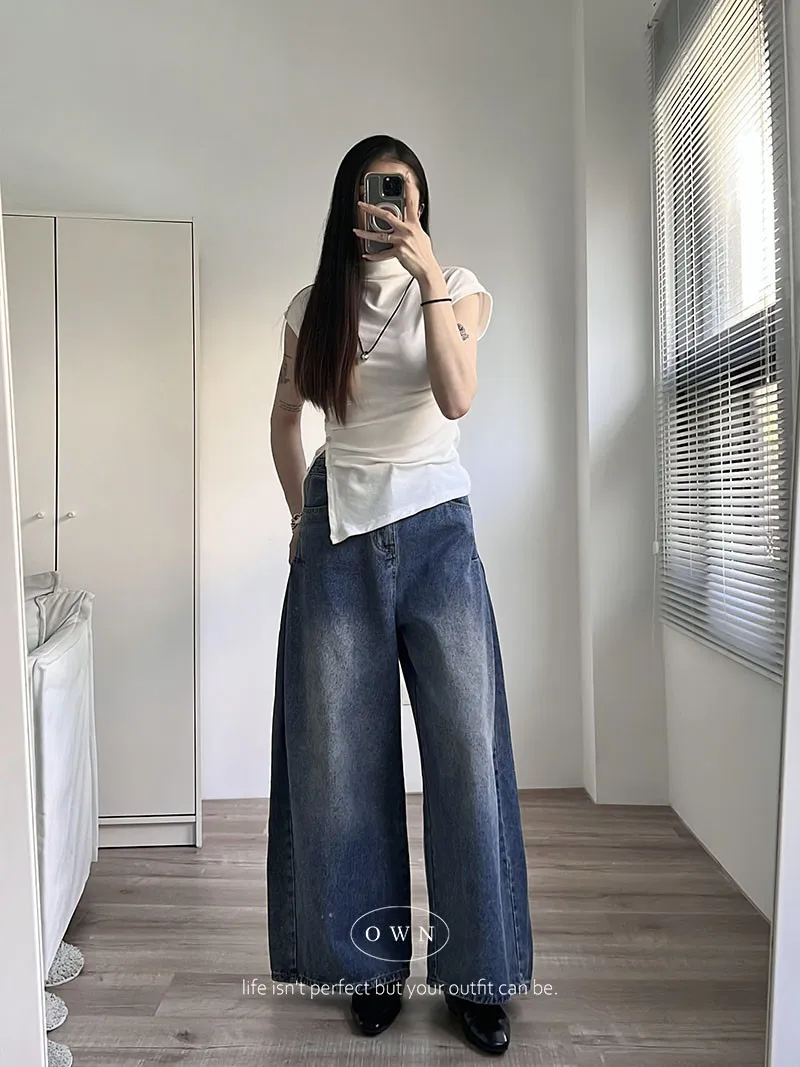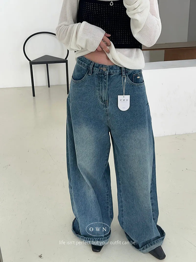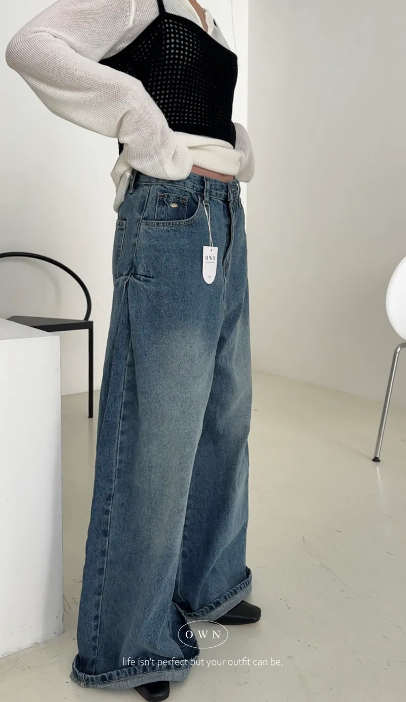 【OWN自訂款】穿上就是人生大片 刷色牛仔落地寬褲 S/M/L