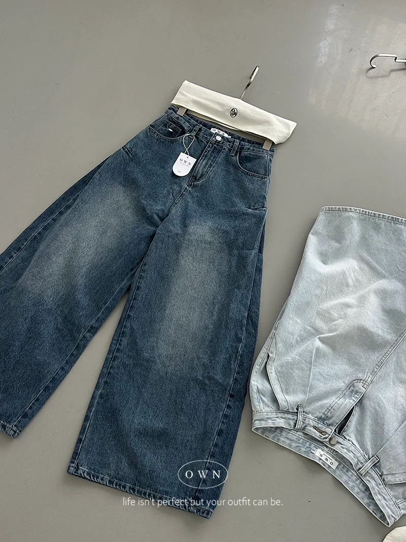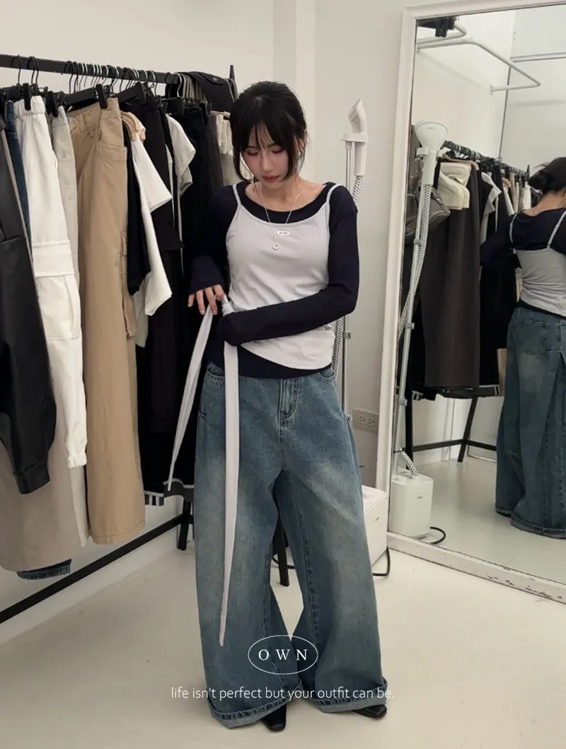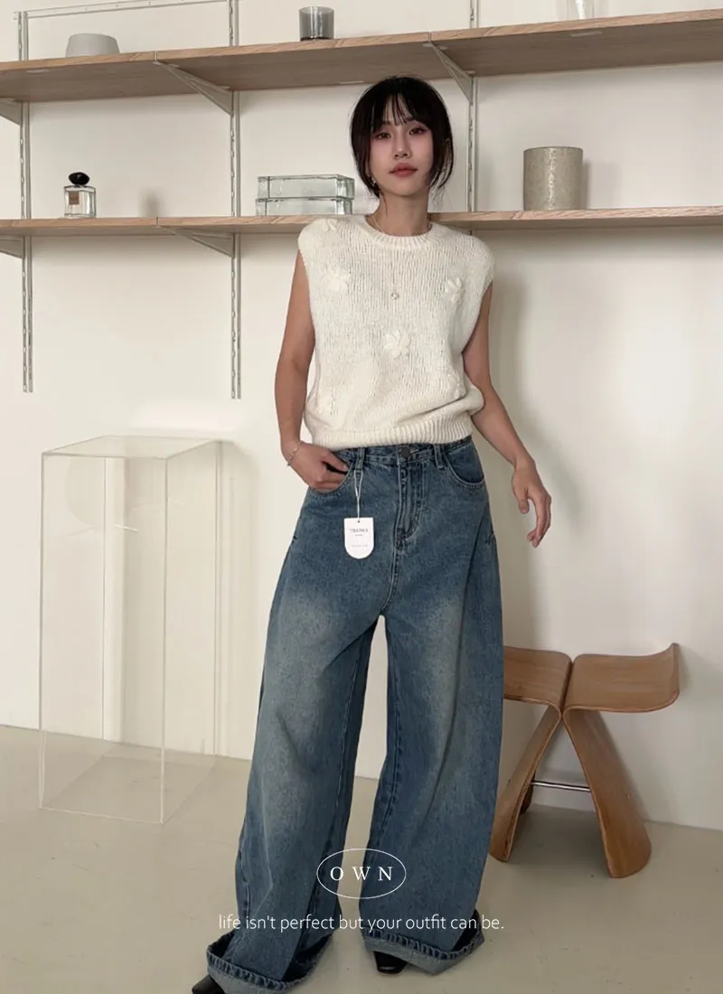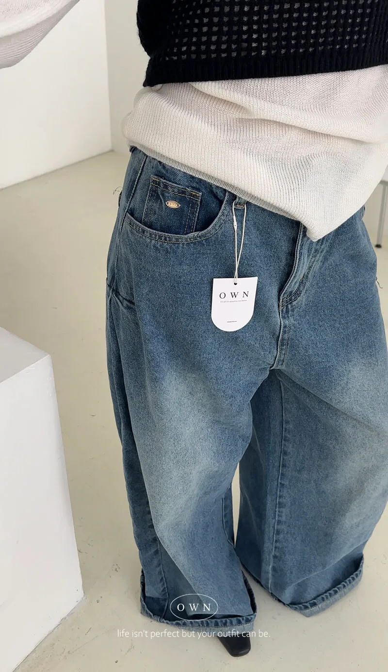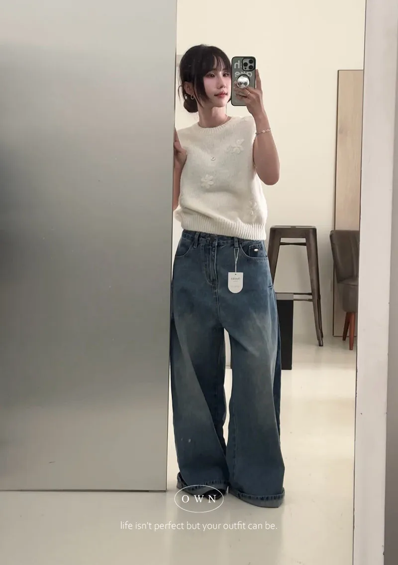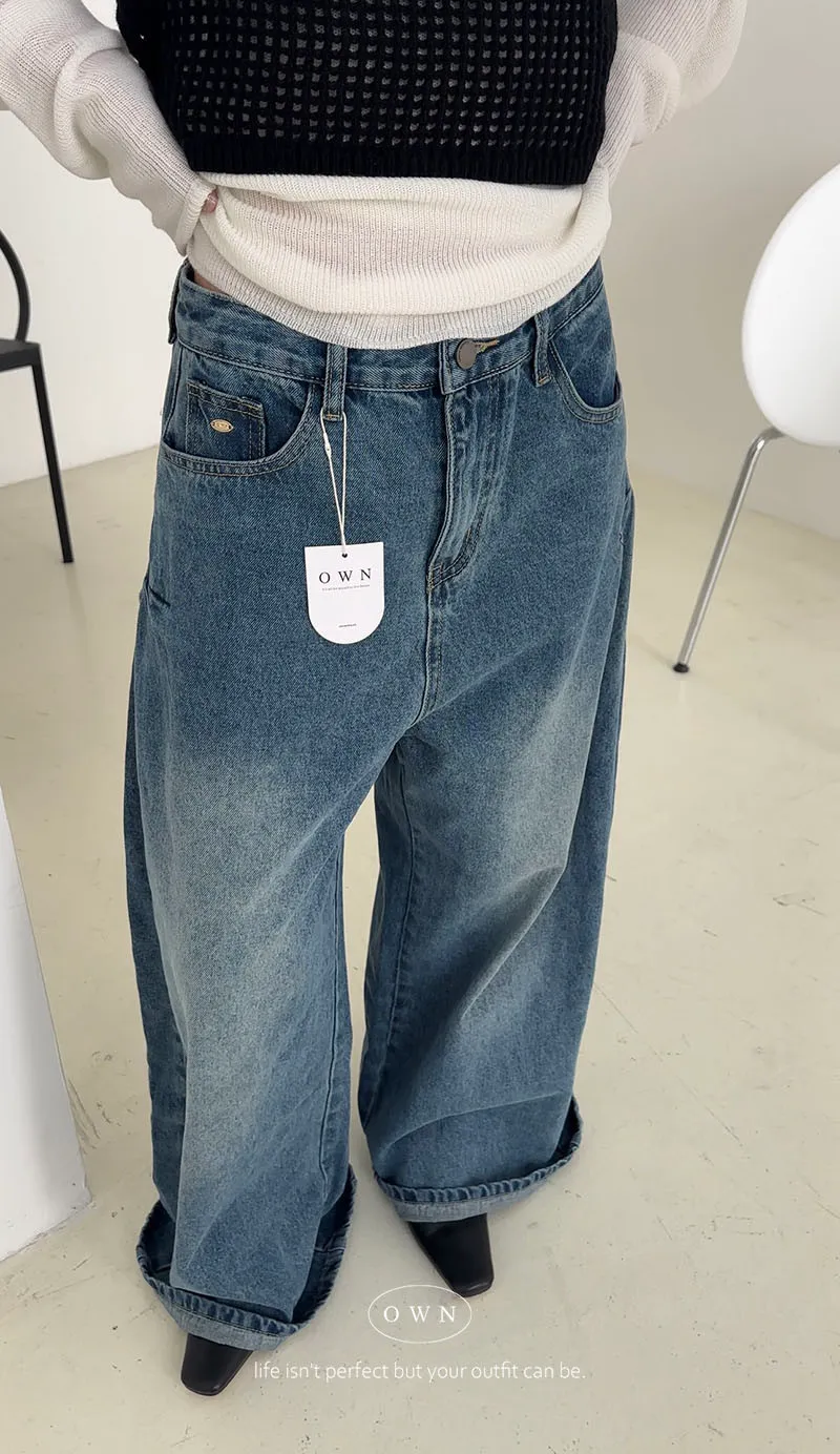 【OWN自訂款】穿上就是人生大片 刷色牛仔落地寬褲 S/M/L