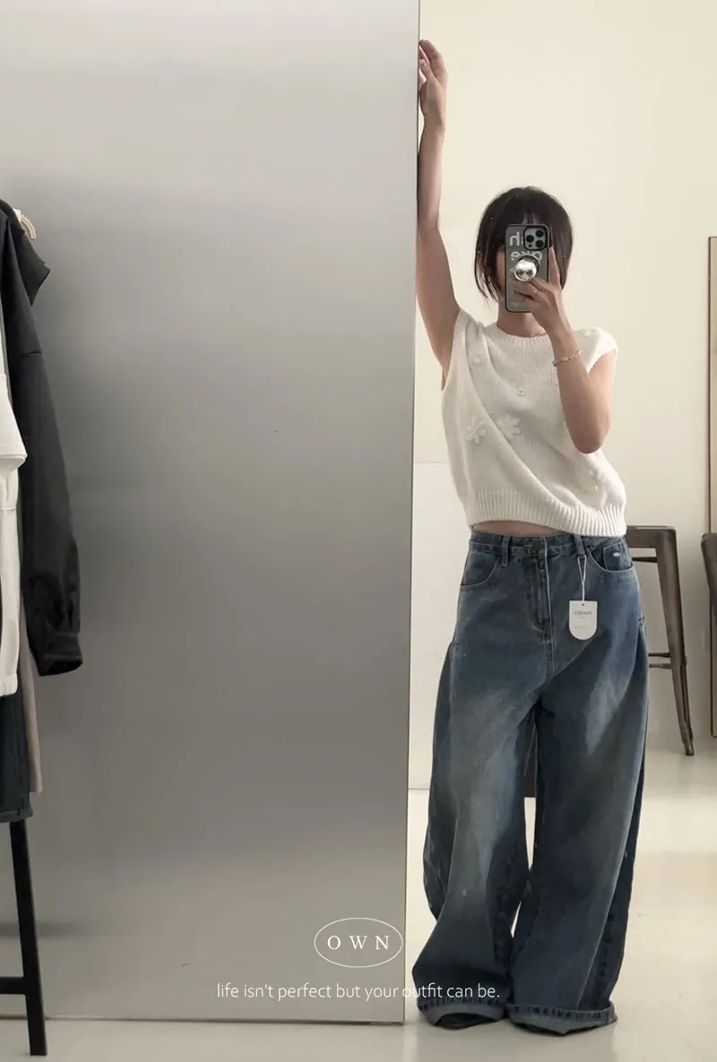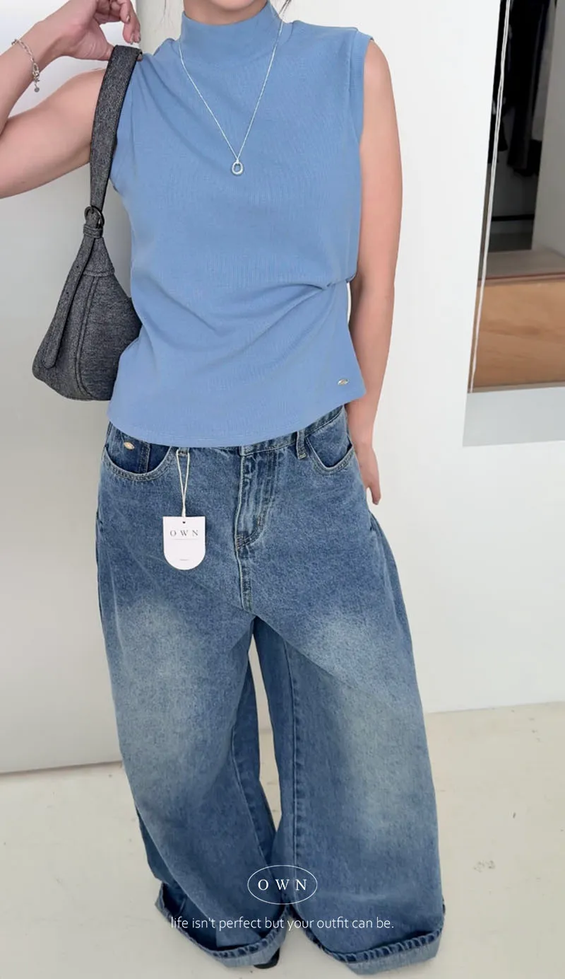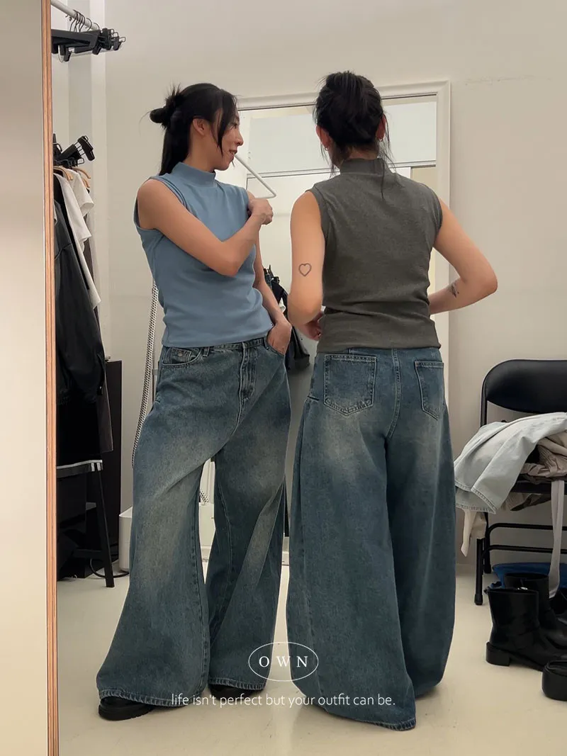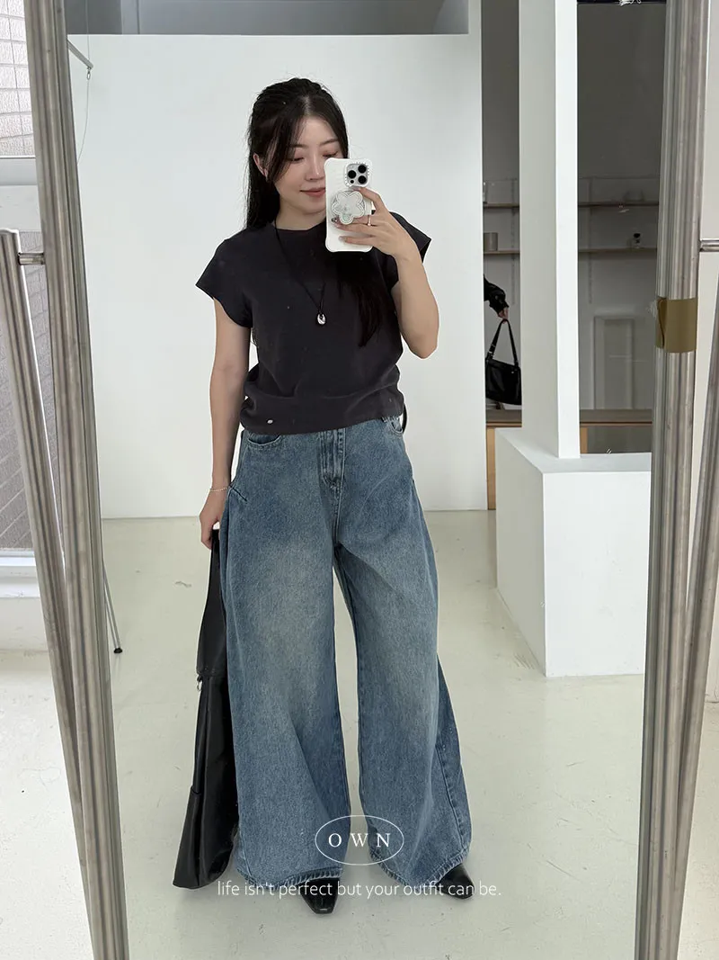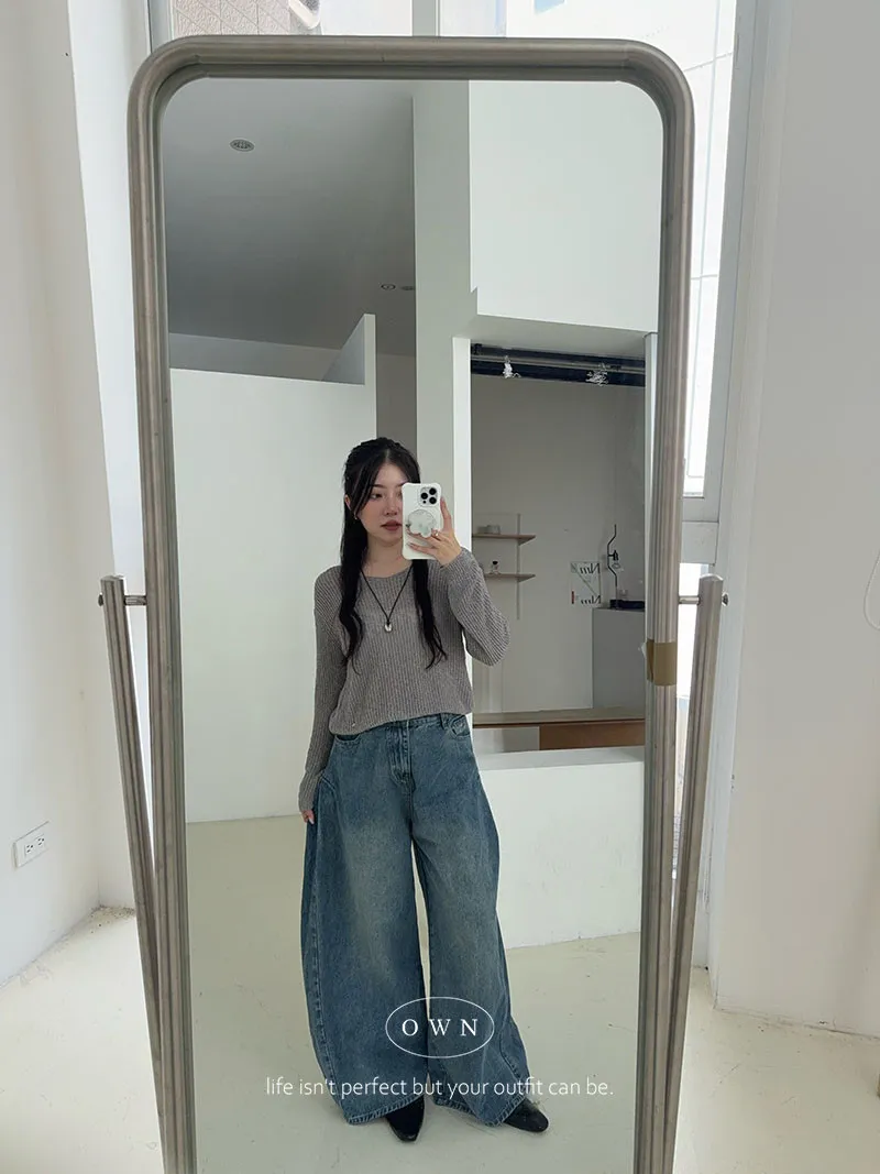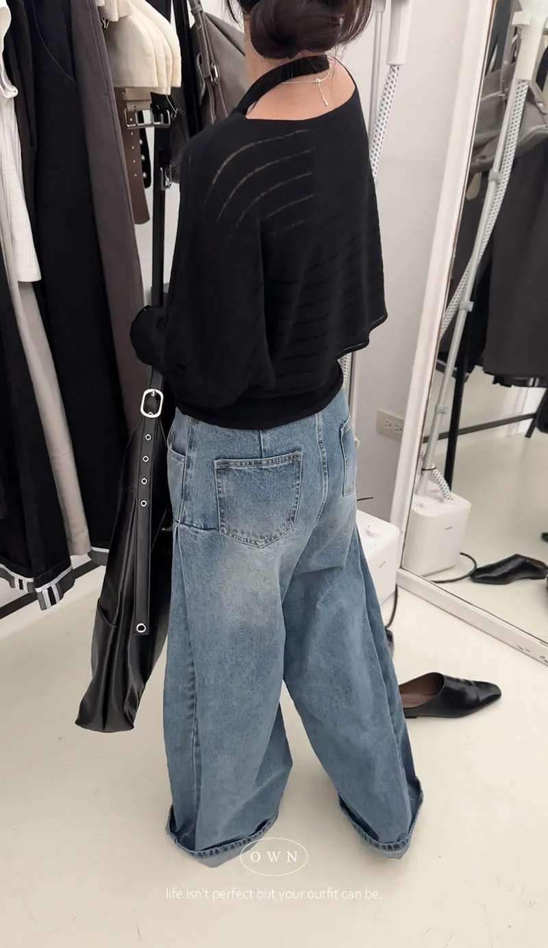 【OWN自訂款】穿上就是人生大片 刷色牛仔落地寬褲 S/M/L