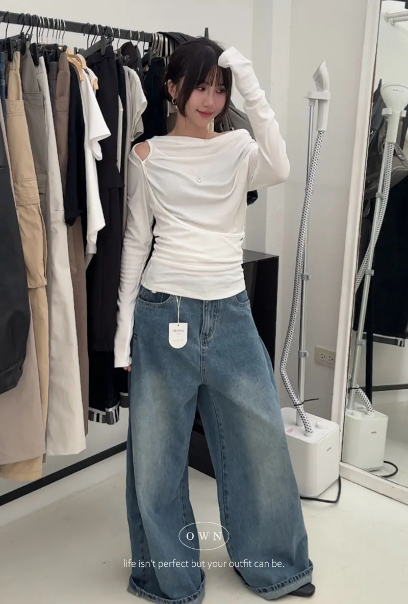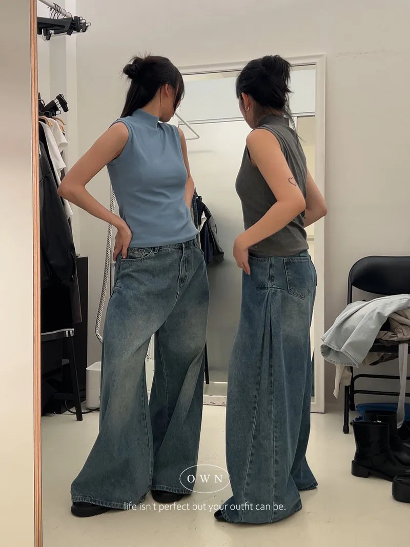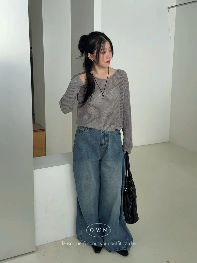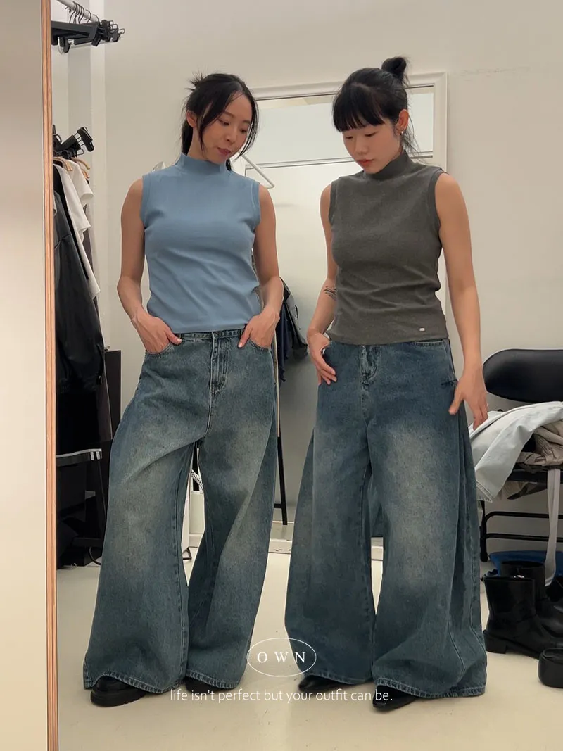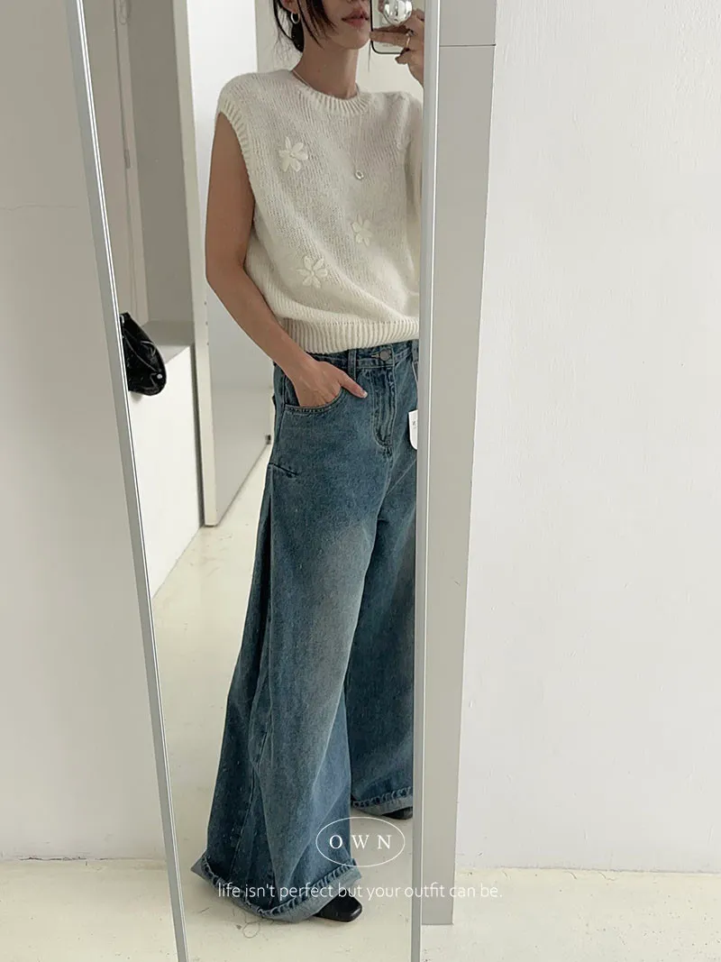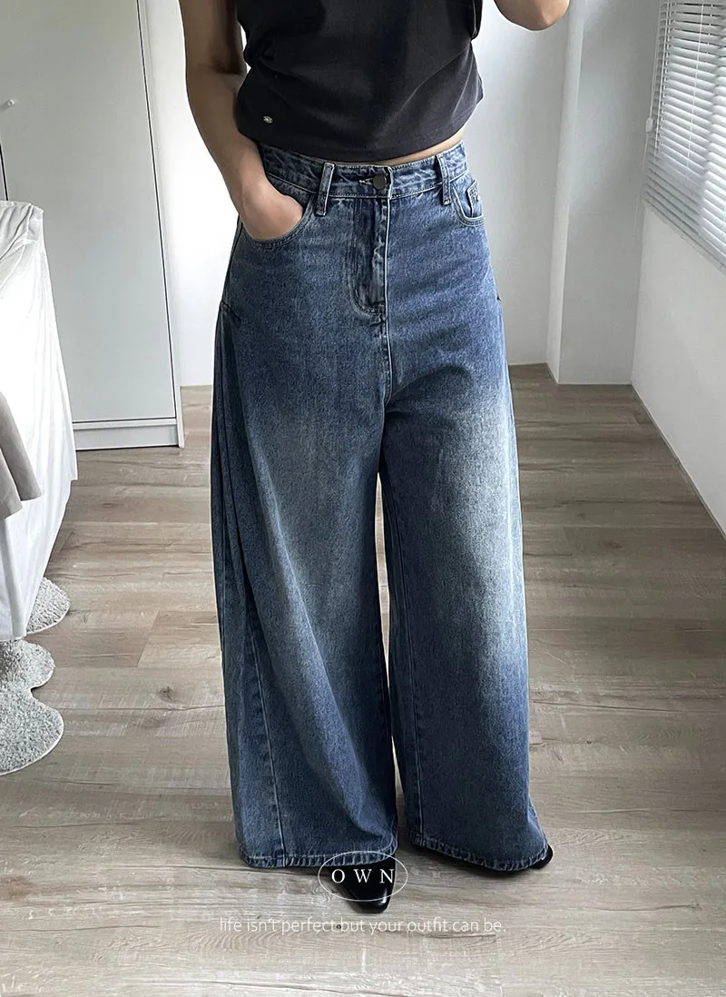 【OWN自訂款】穿上就是人生大片 刷色牛仔落地寬褲 S/M/L