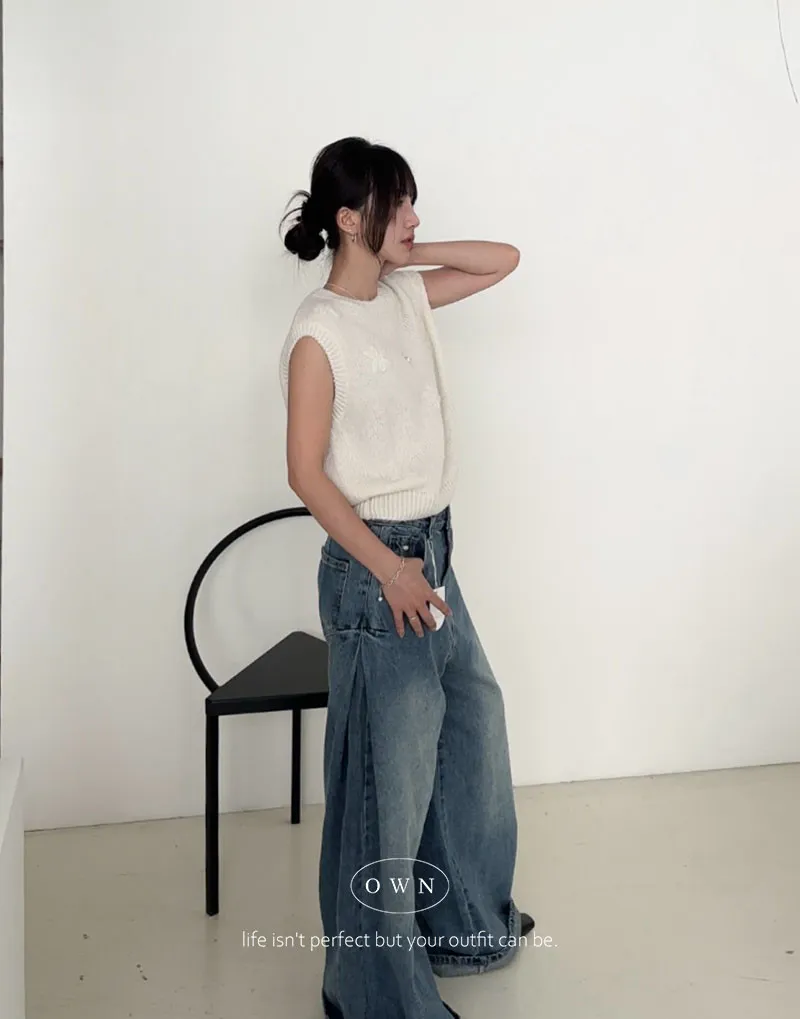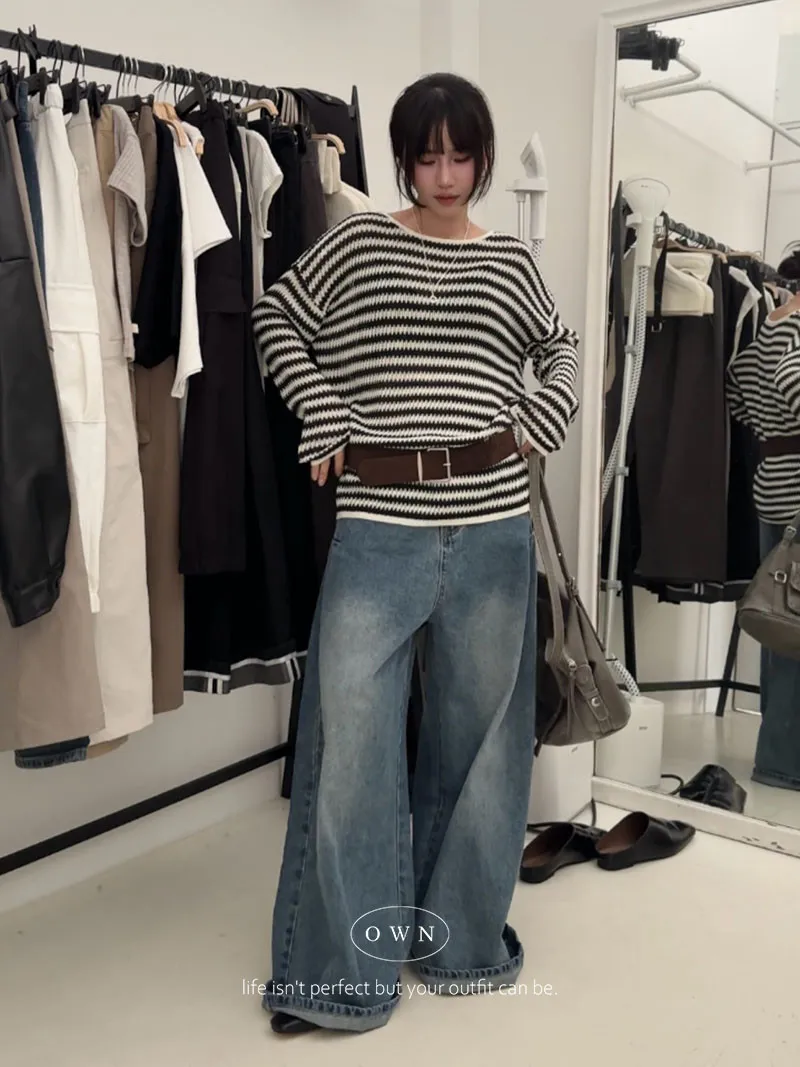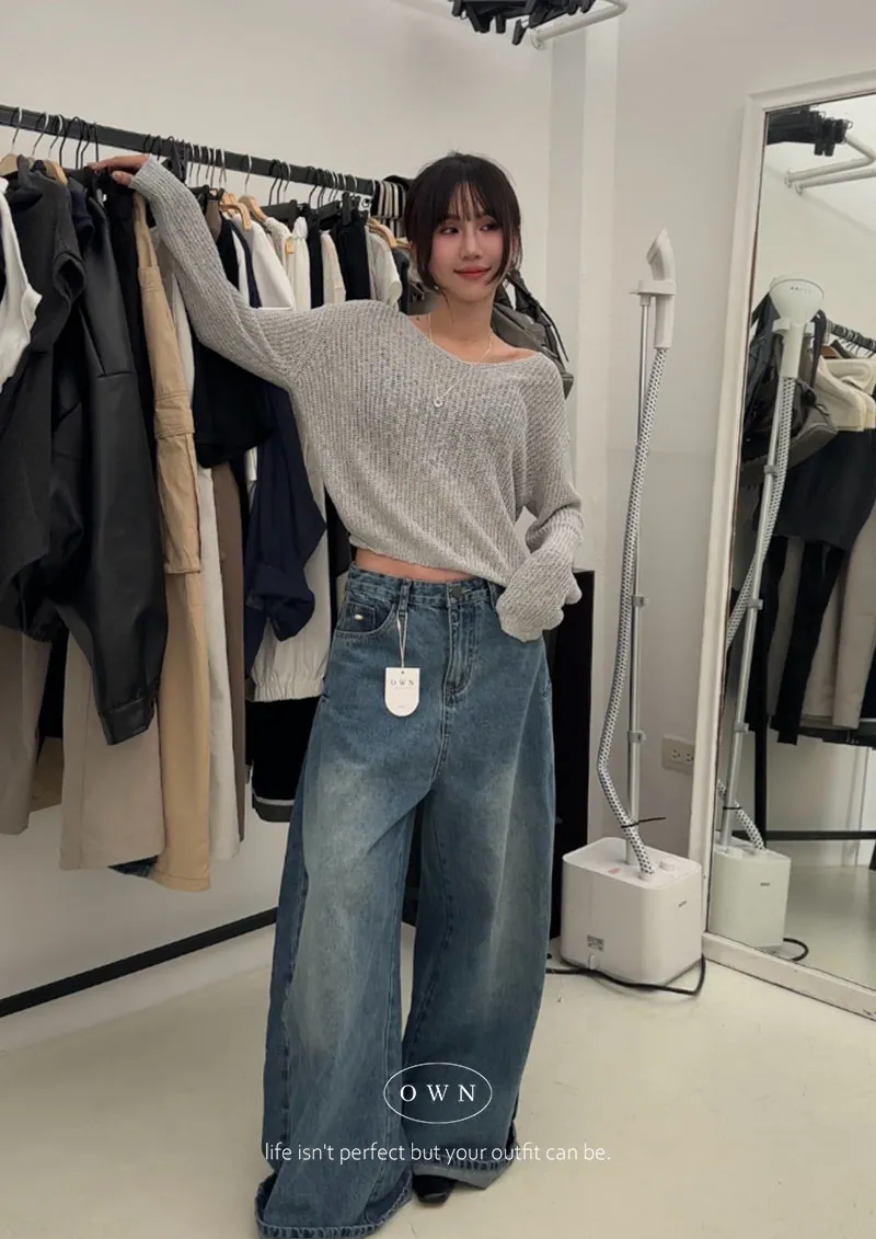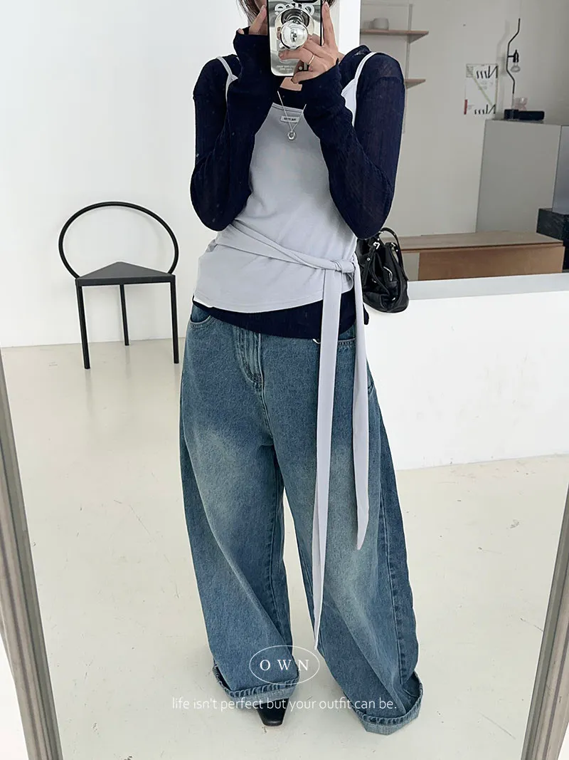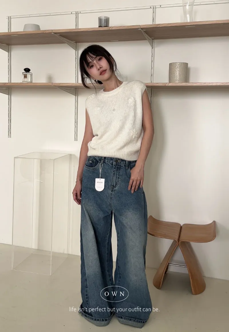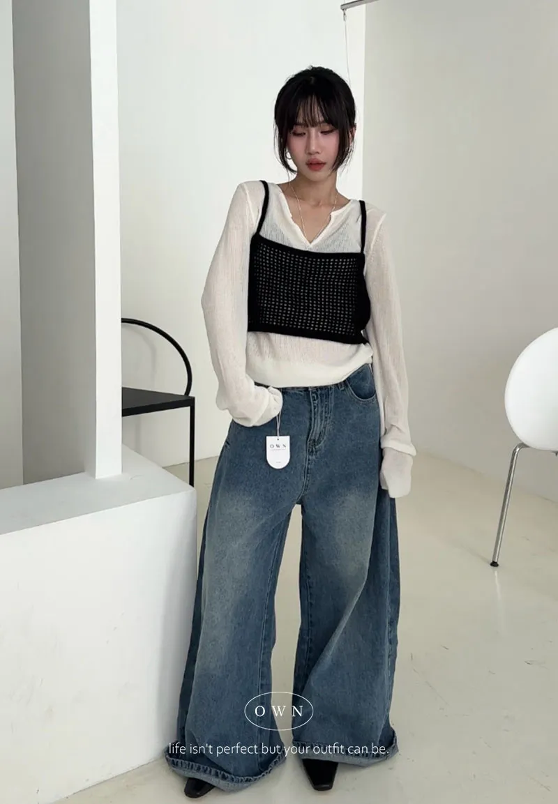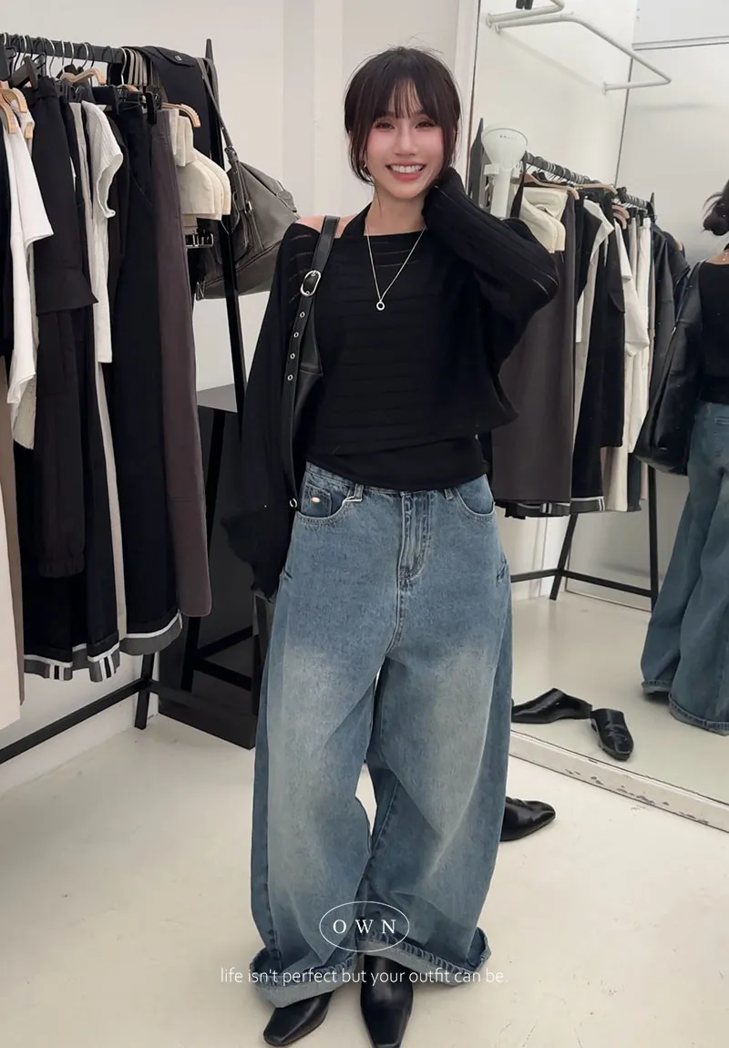 【OWN自訂款】穿上就是人生大片 刷色牛仔落地寬褲 S/M/L