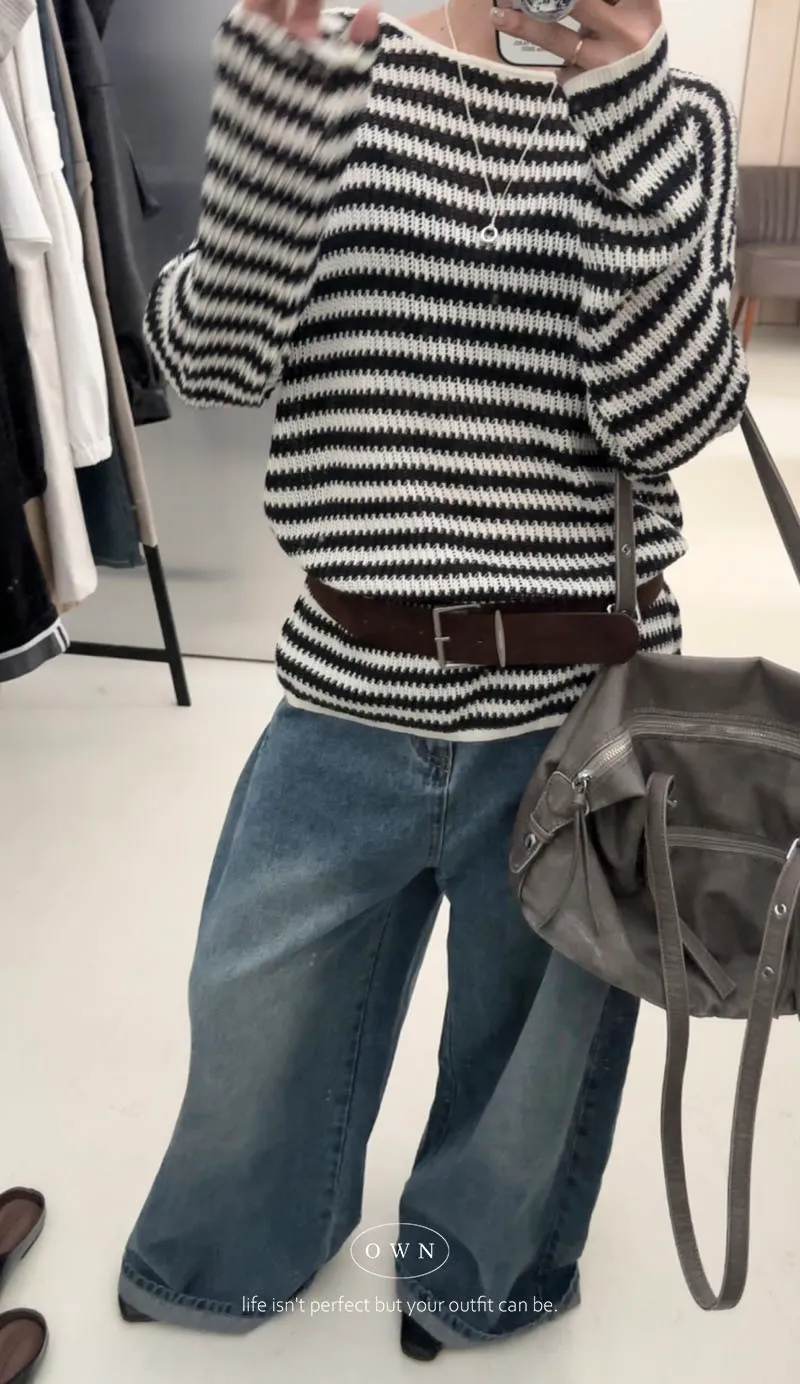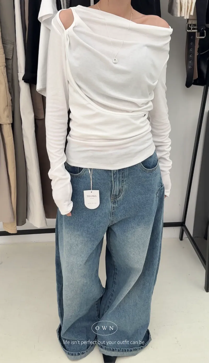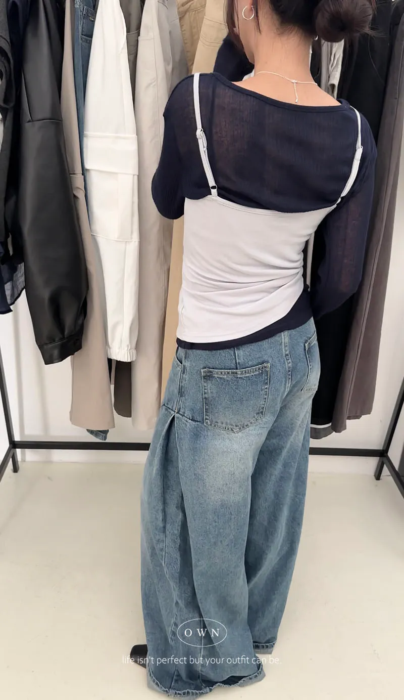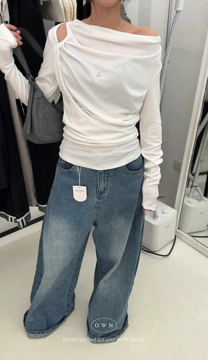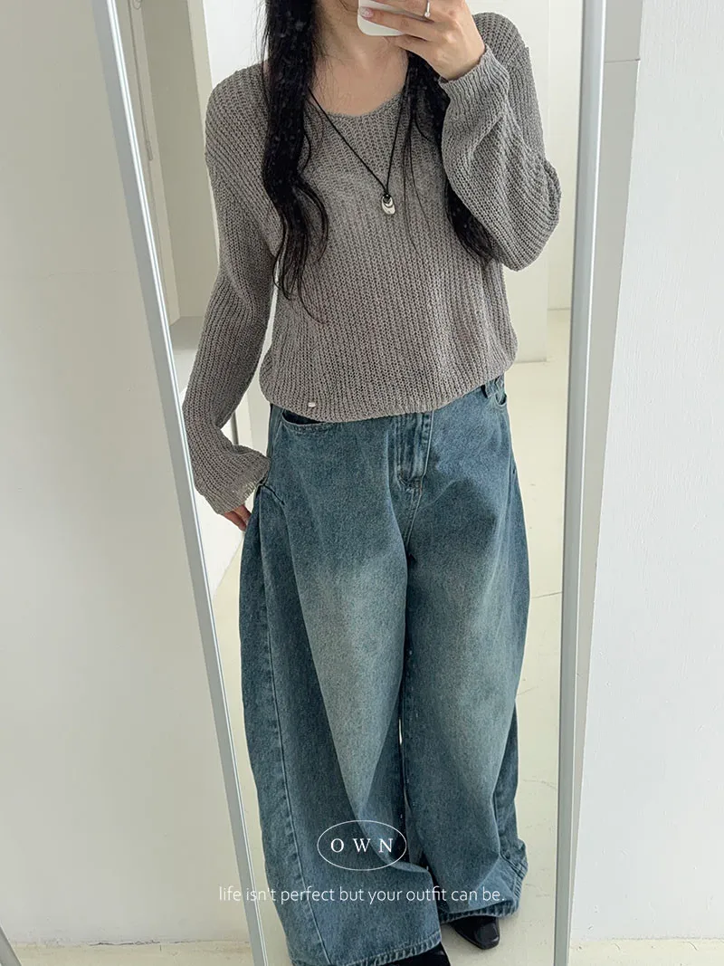 【OWN自訂款】穿上就是人生大片 刷色牛仔落地寬褲 S/M/L