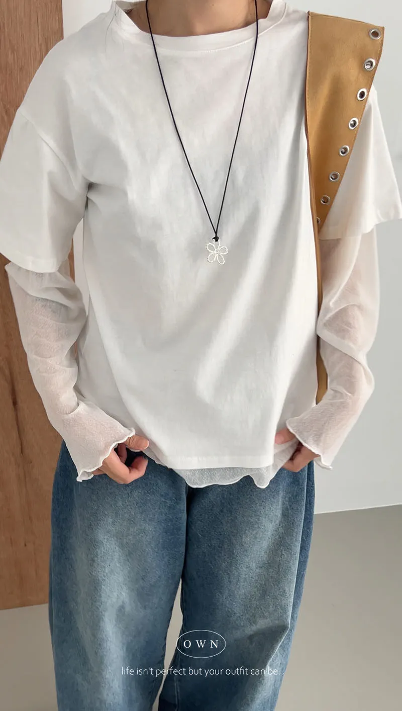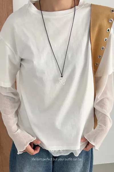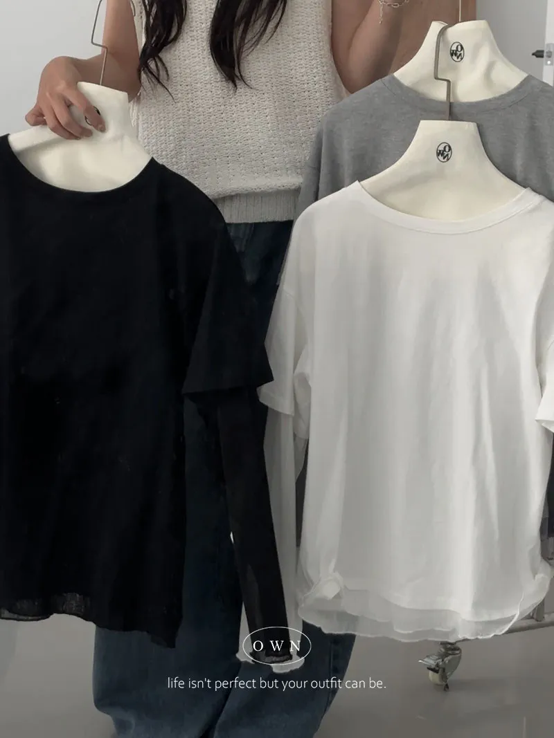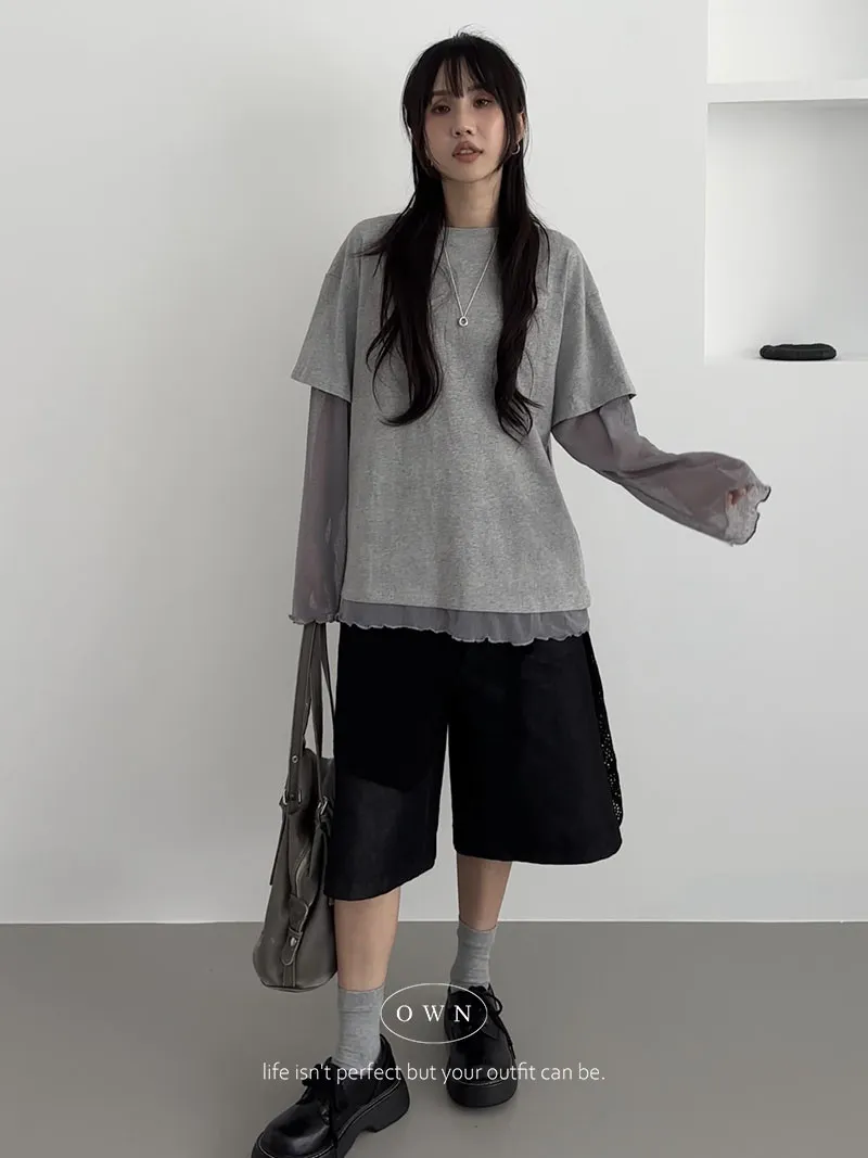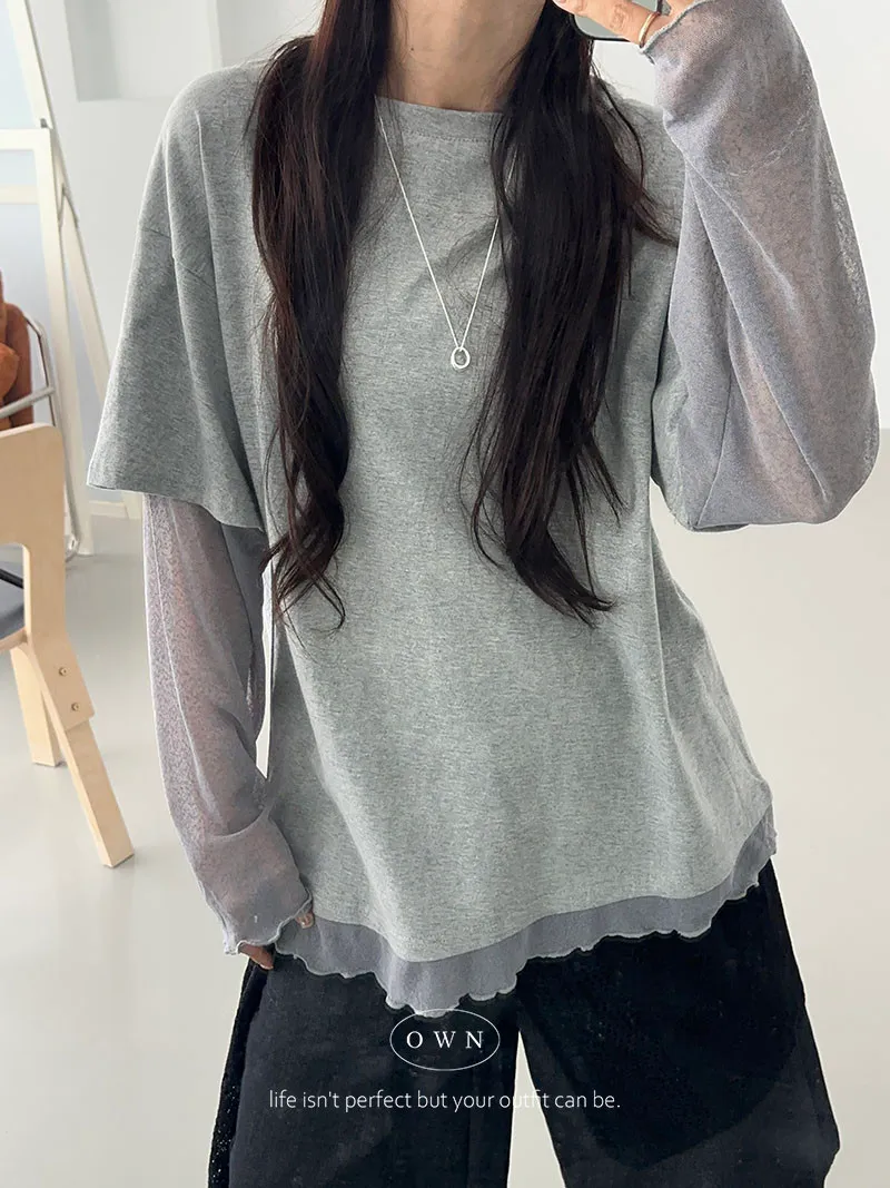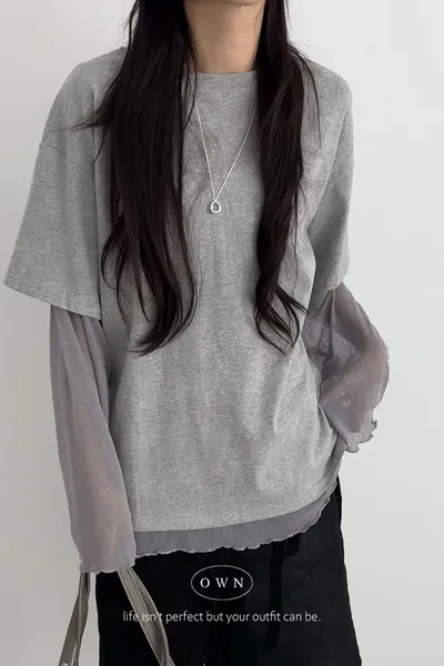 直接搭好的層次慵懶感 假兩件紗袖上衣 3colors