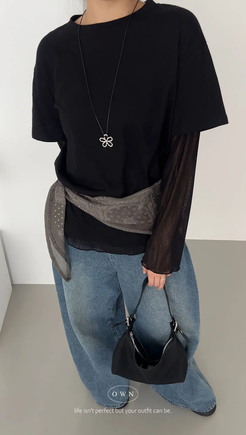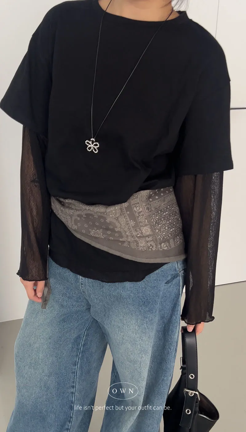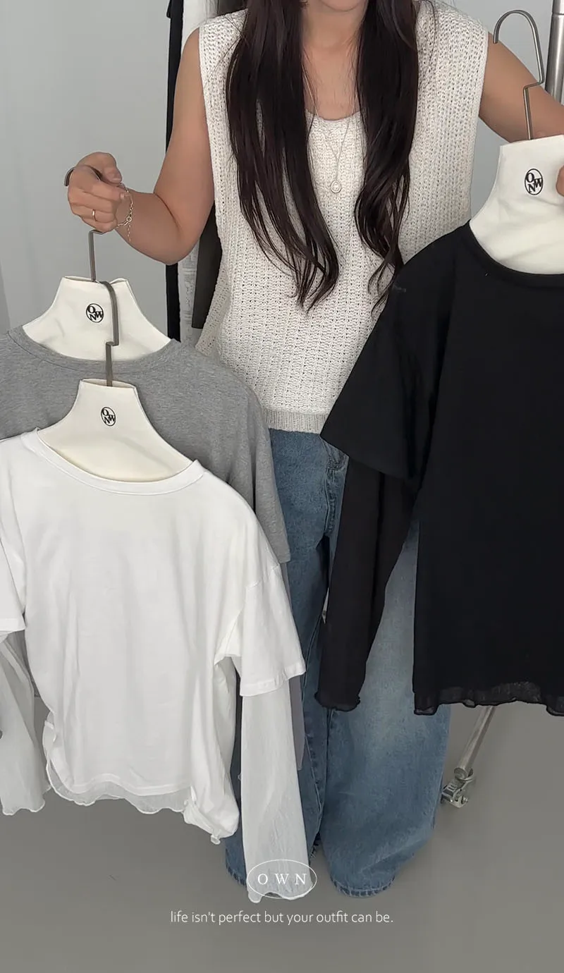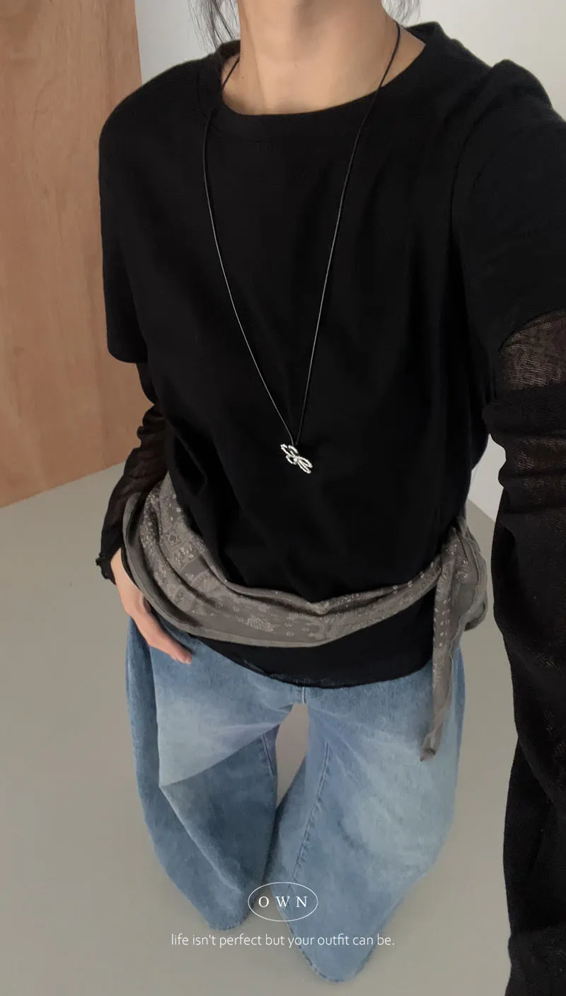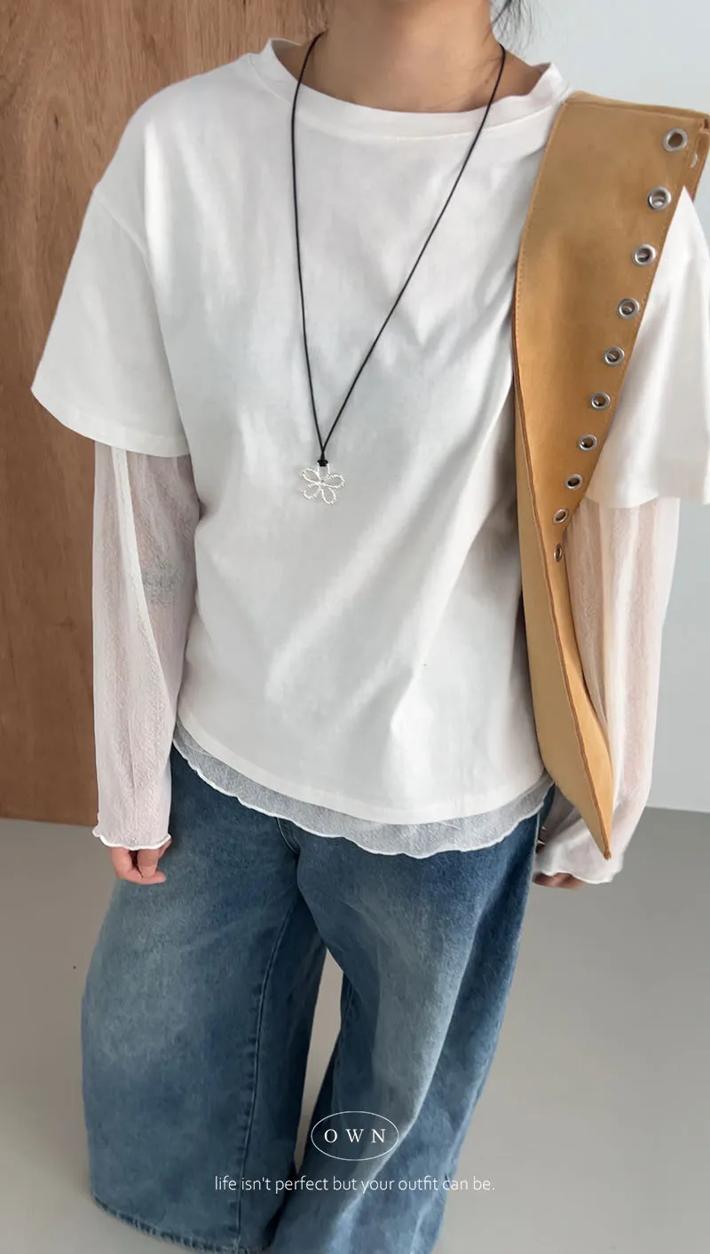 直接搭好的層次慵懶感 假兩件紗袖上衣 3colors