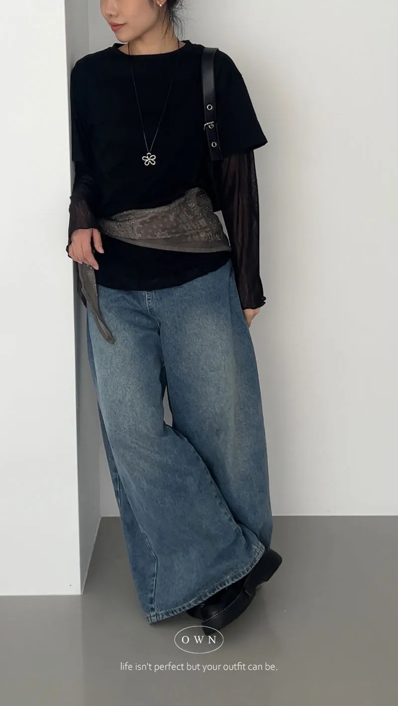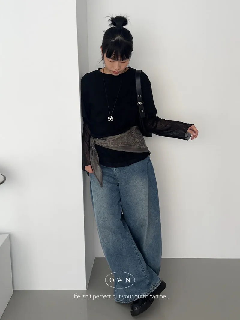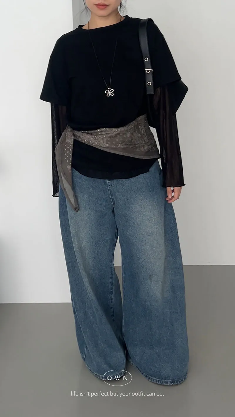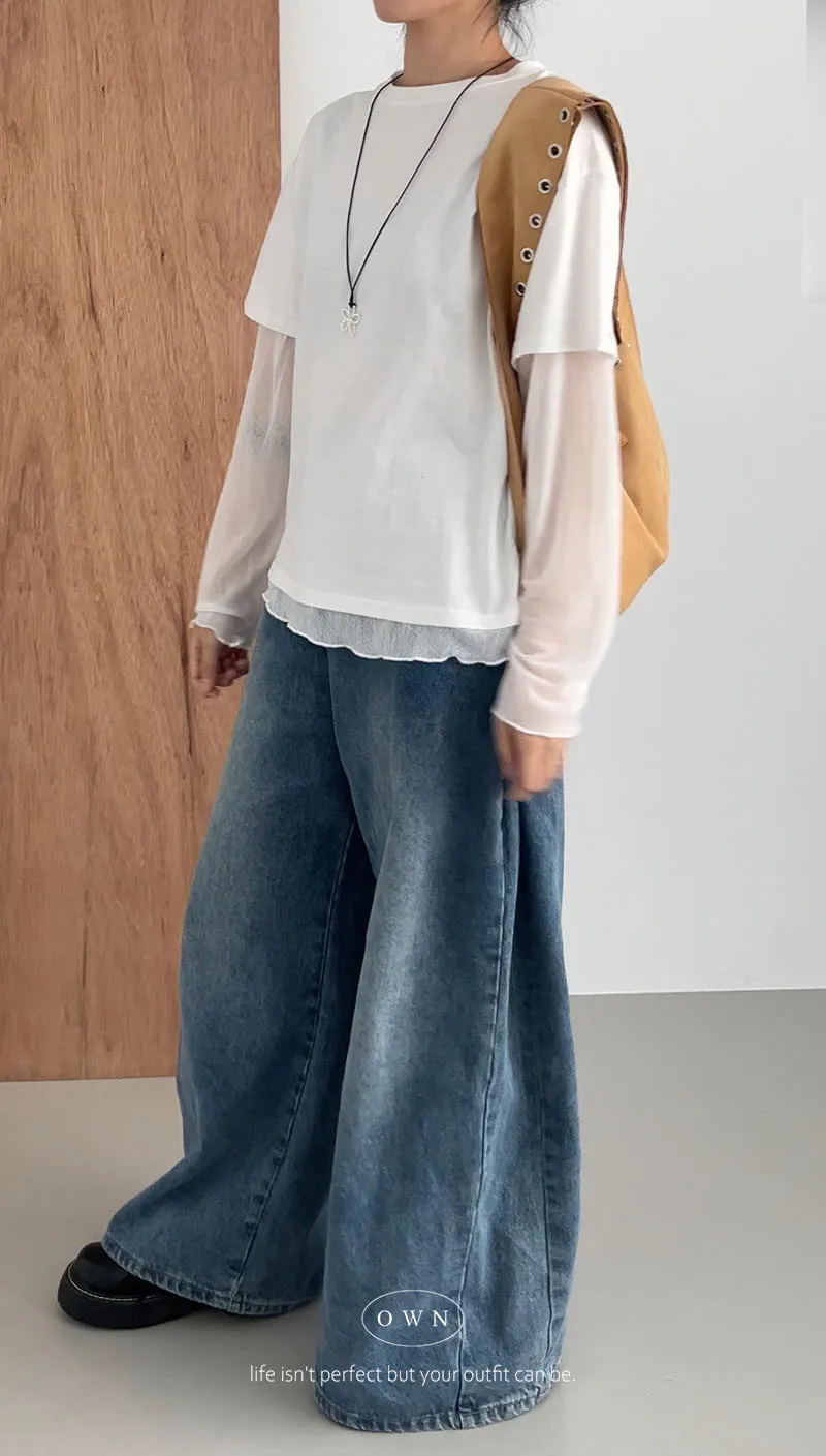 直接搭好的層次慵懶感 假兩件紗袖上衣 3colors