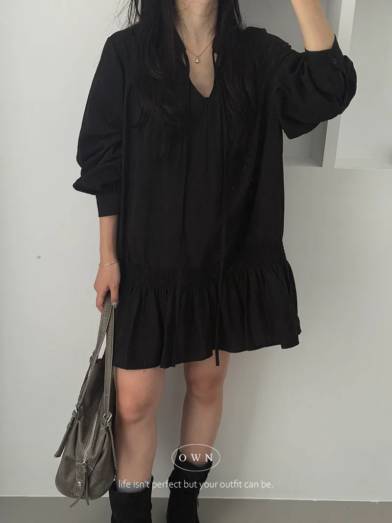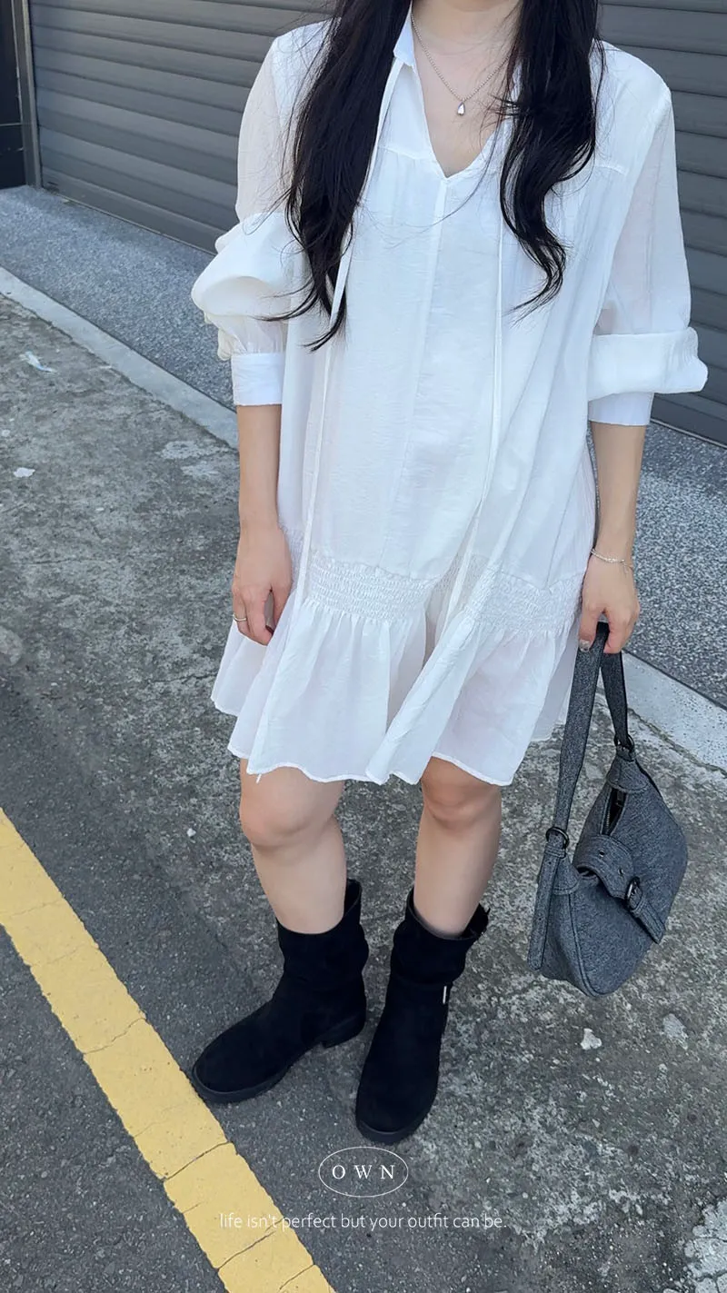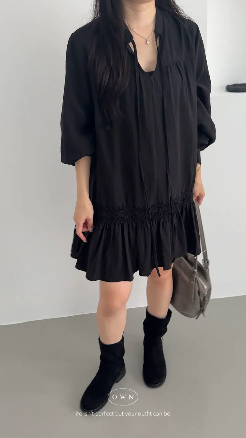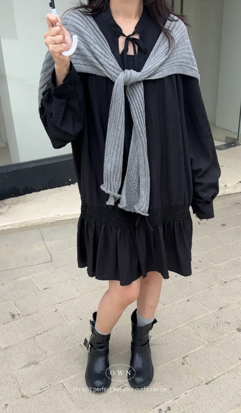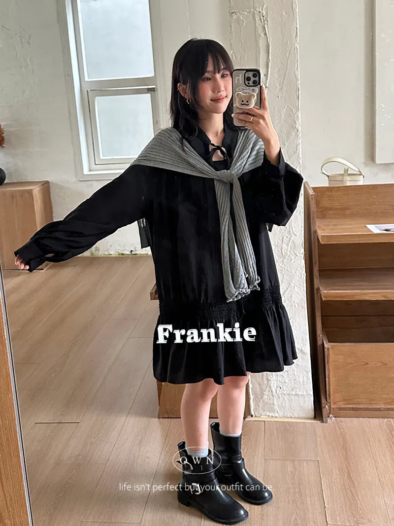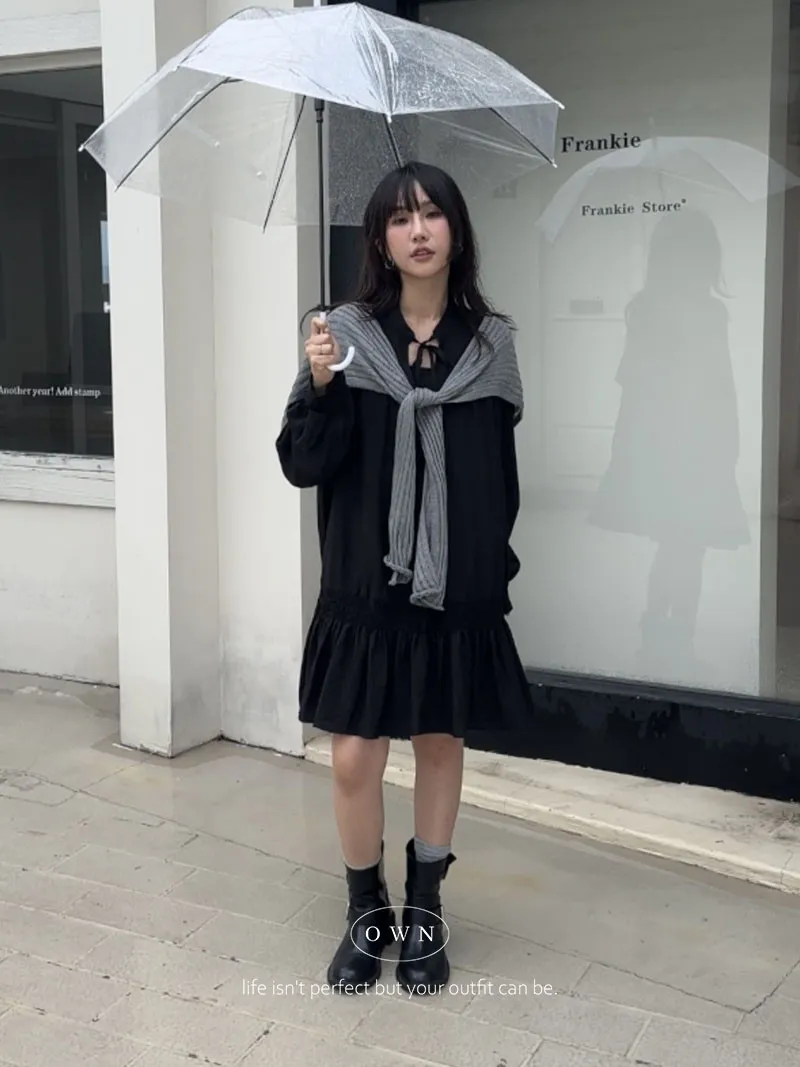 秋日氛圍感 綁帶小立領澎袖洋裝 2colors
