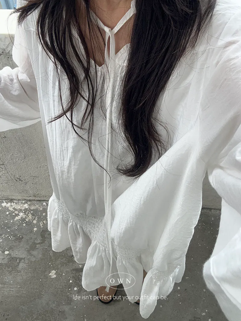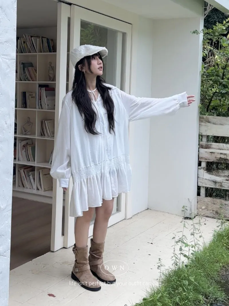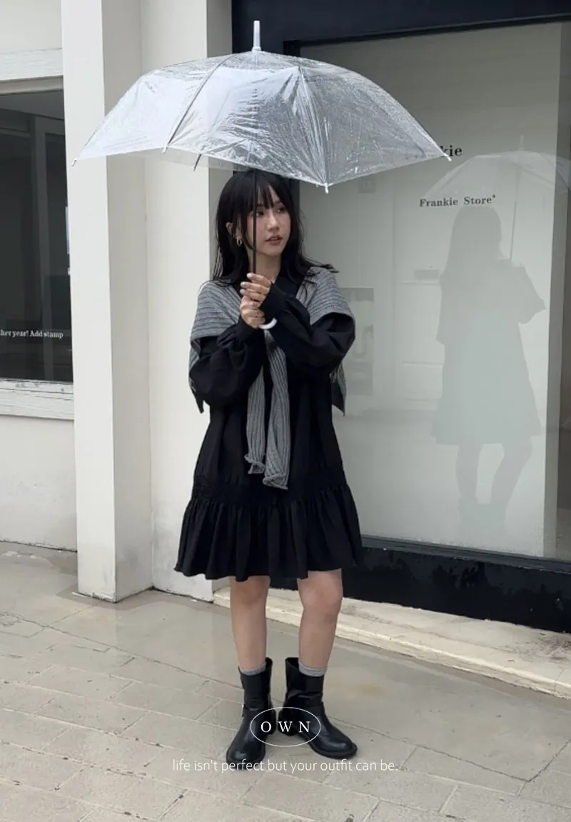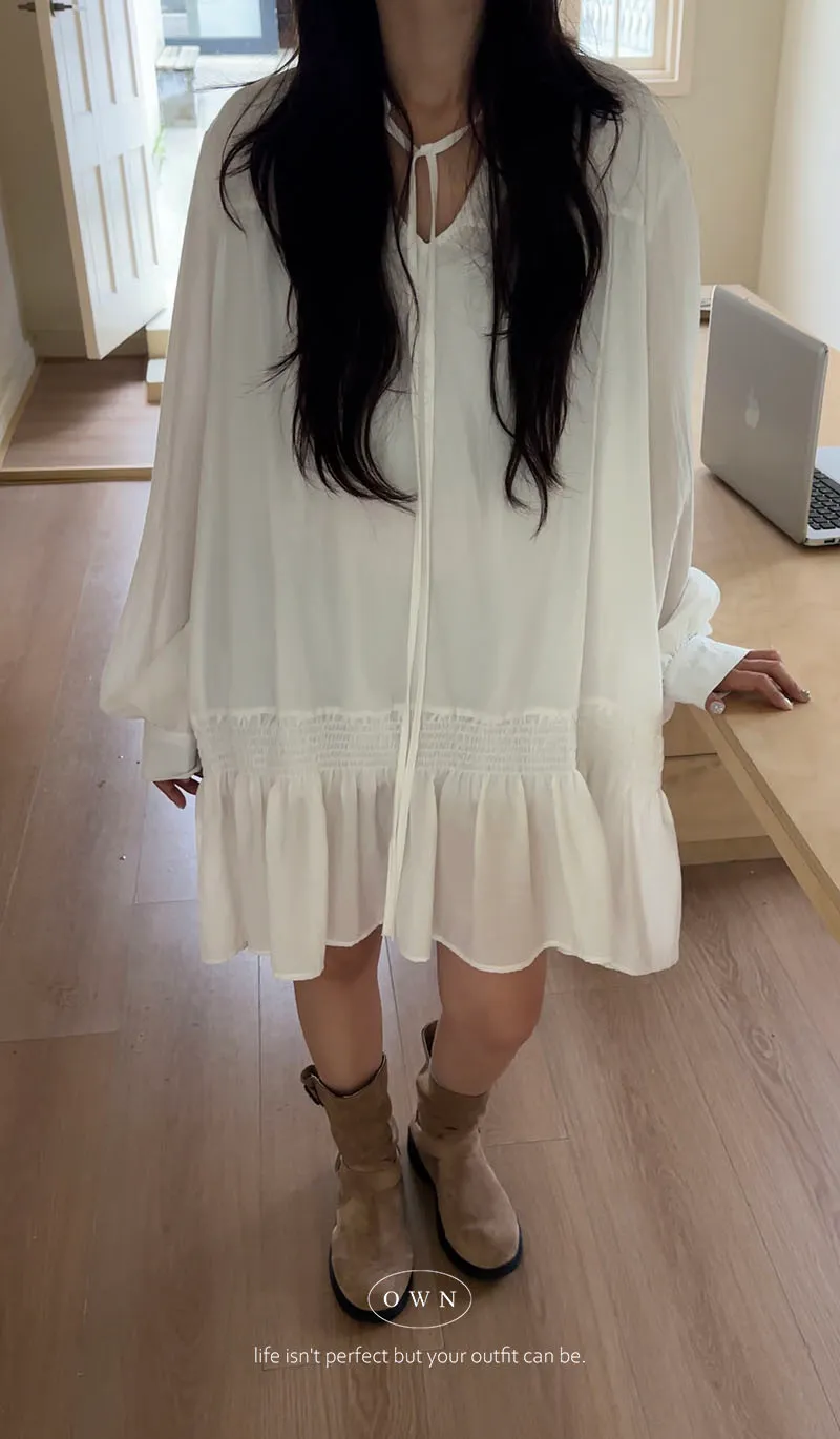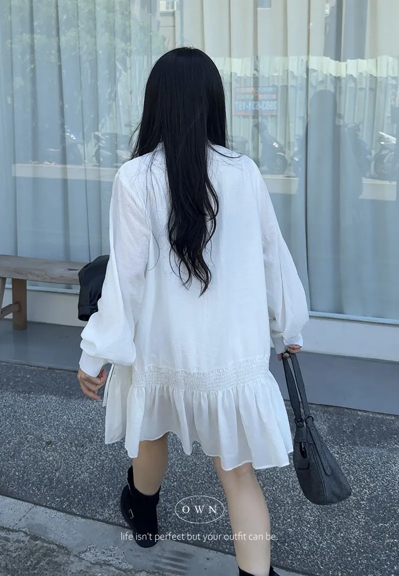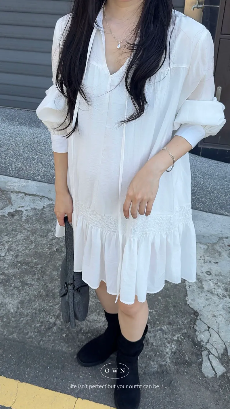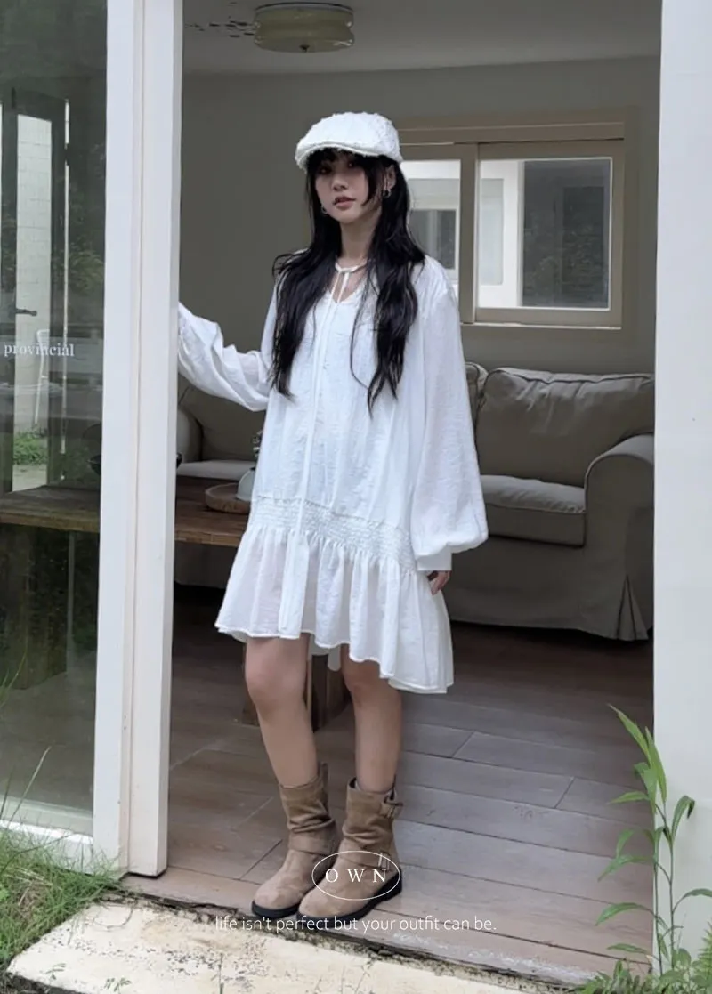 秋日氛圍感 綁帶小立領澎袖洋裝 2colors