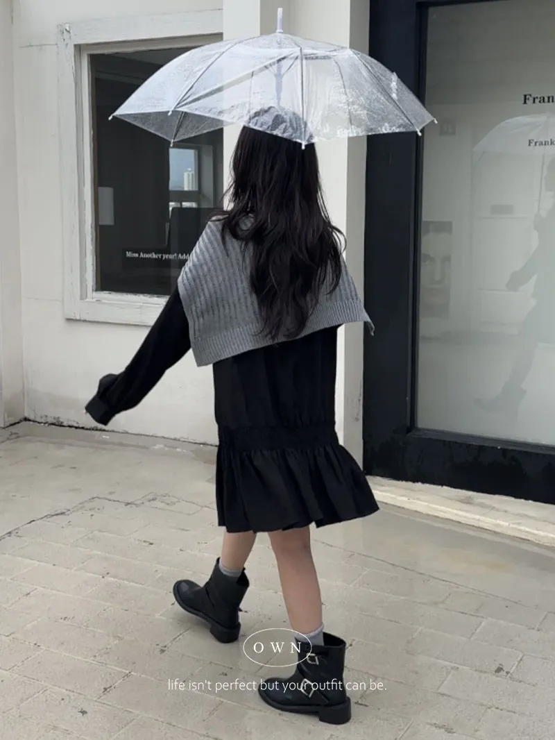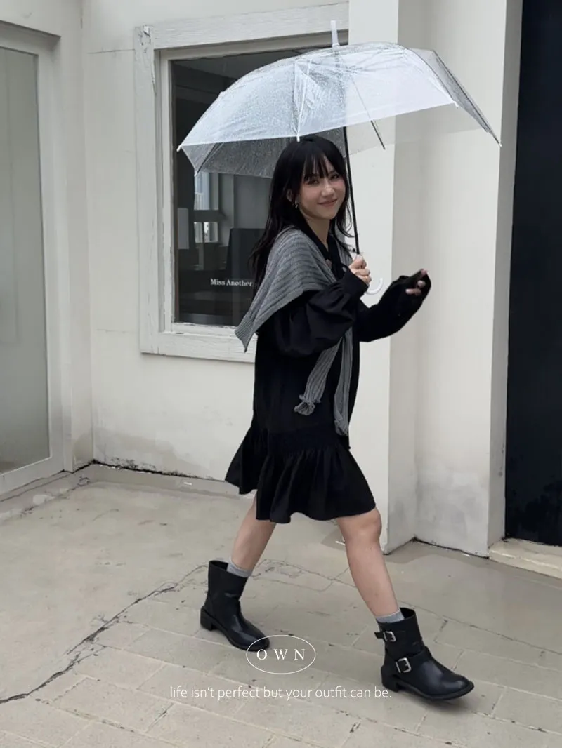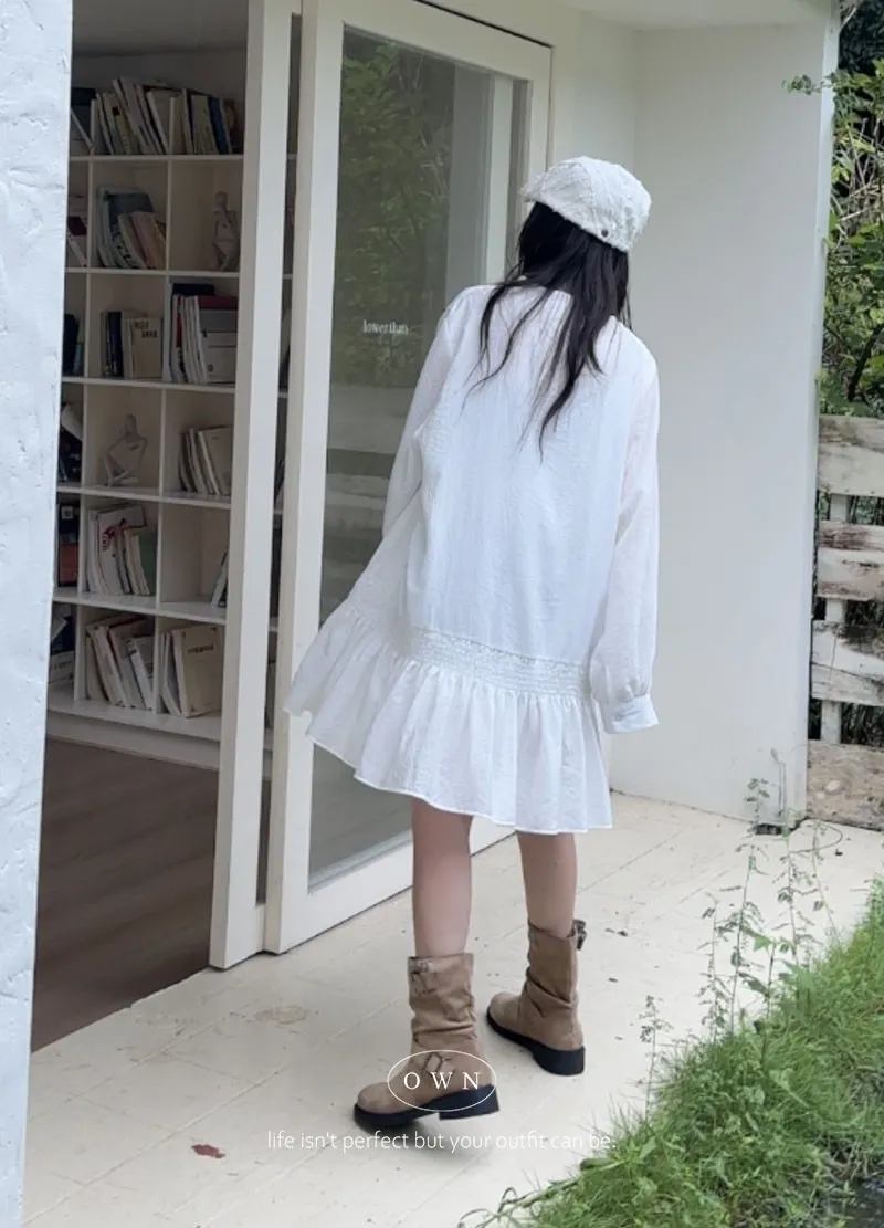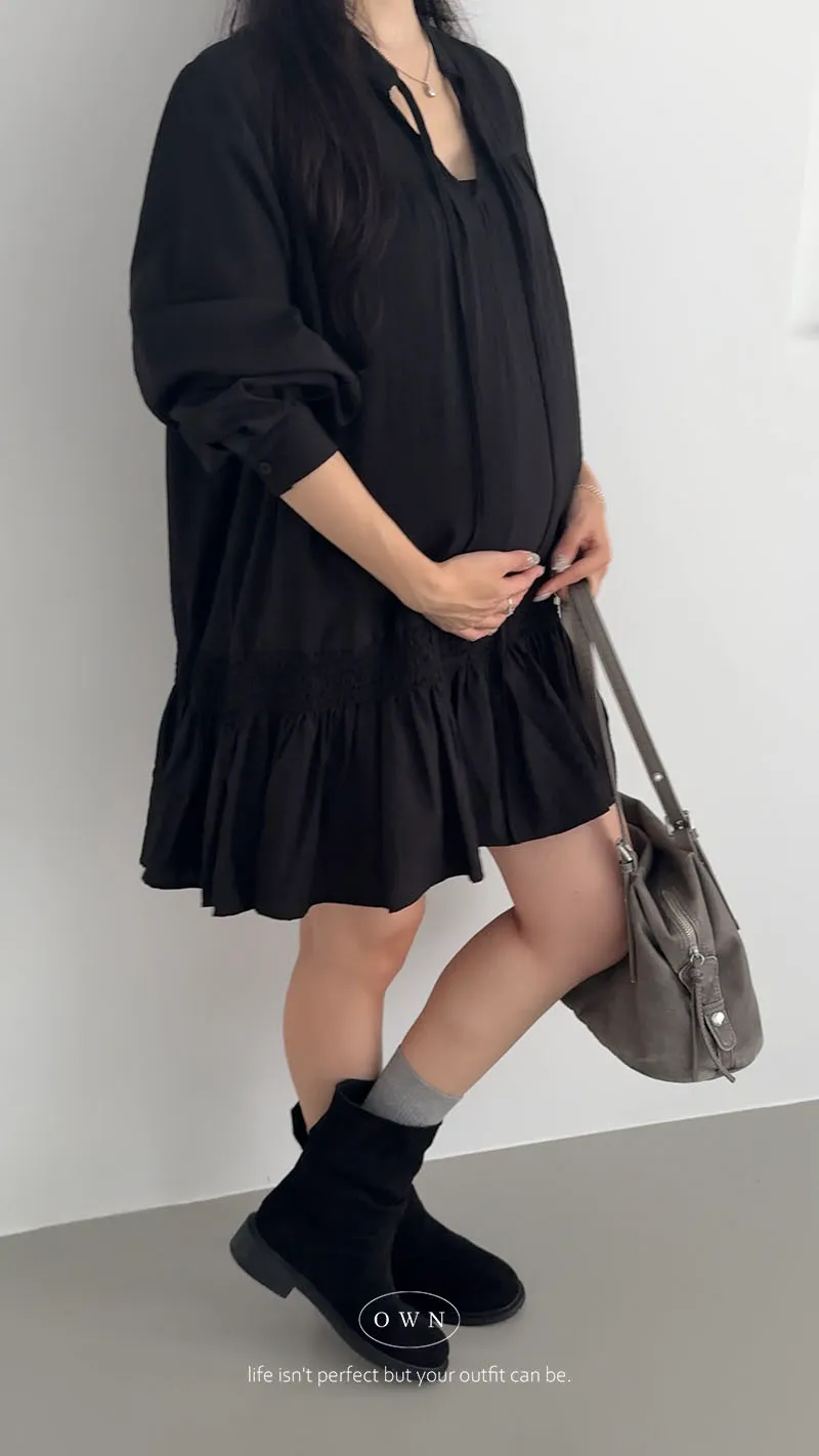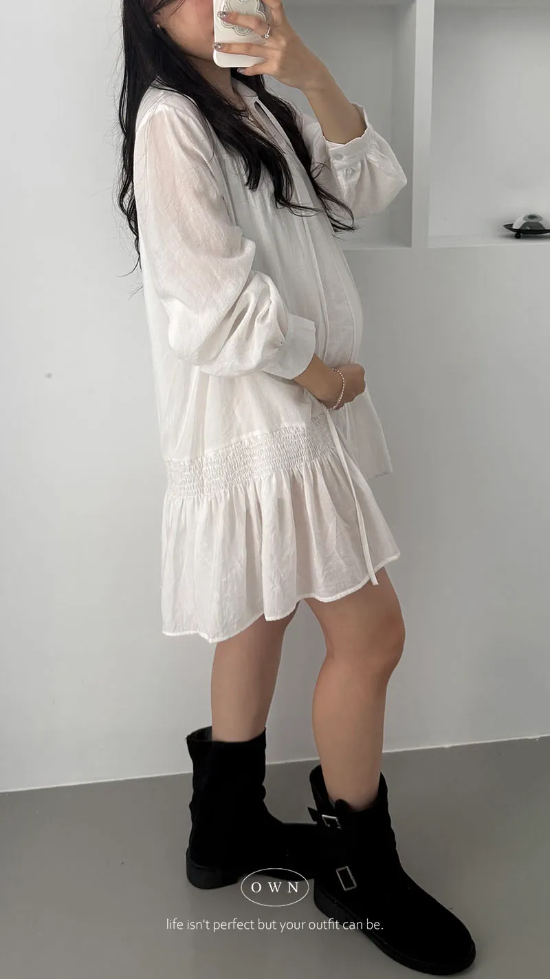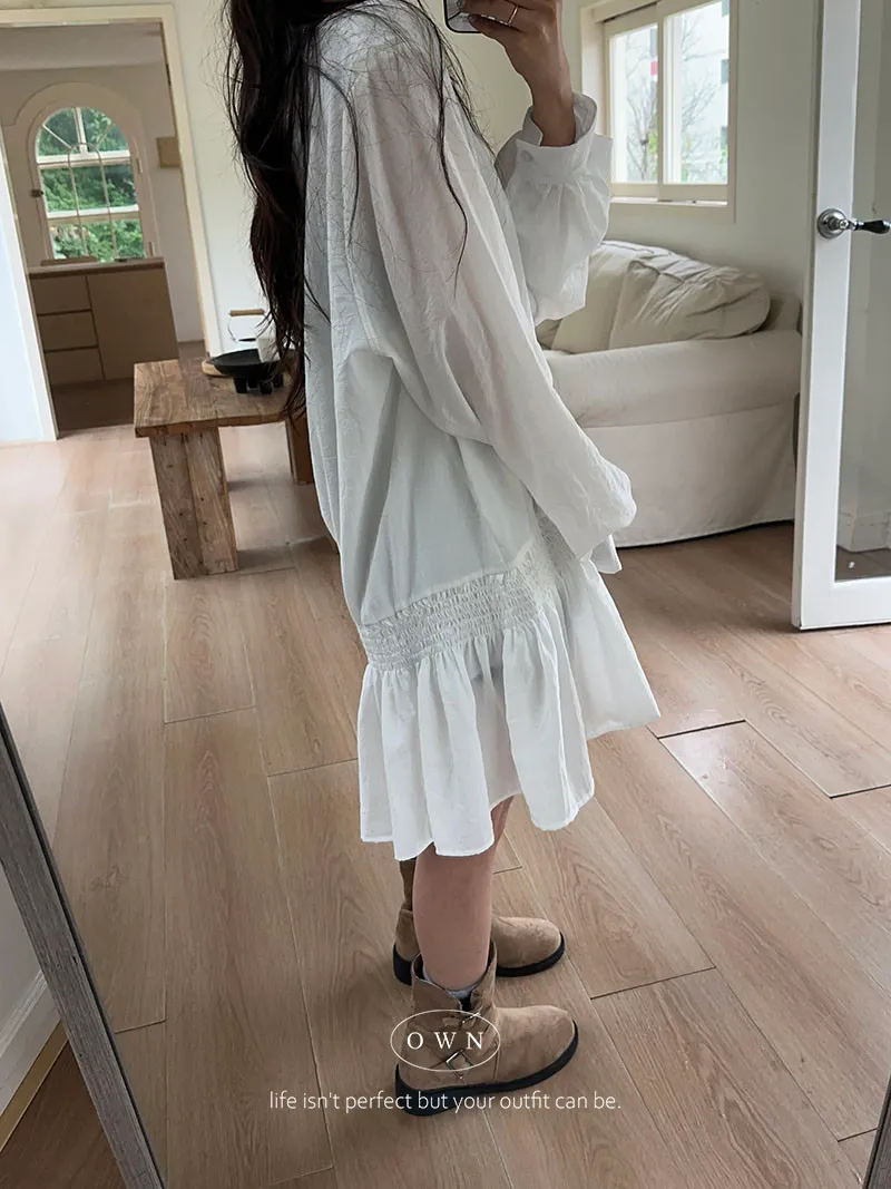 秋日氛圍感 綁帶小立領澎袖洋裝 2colors